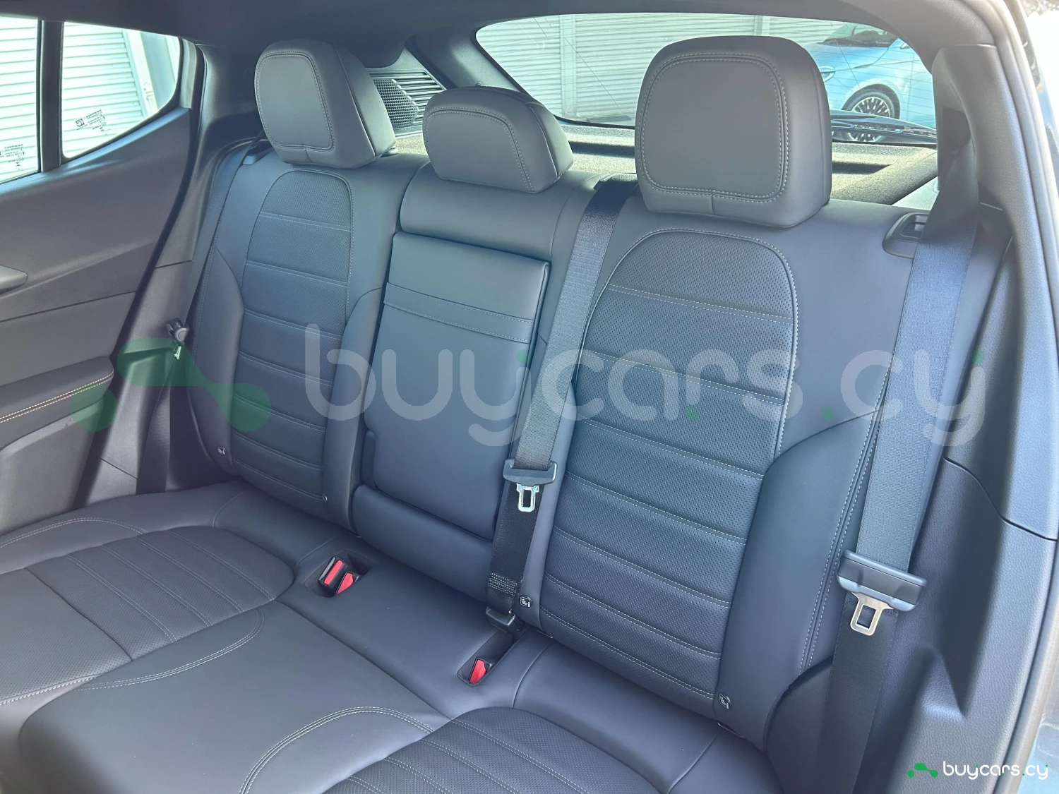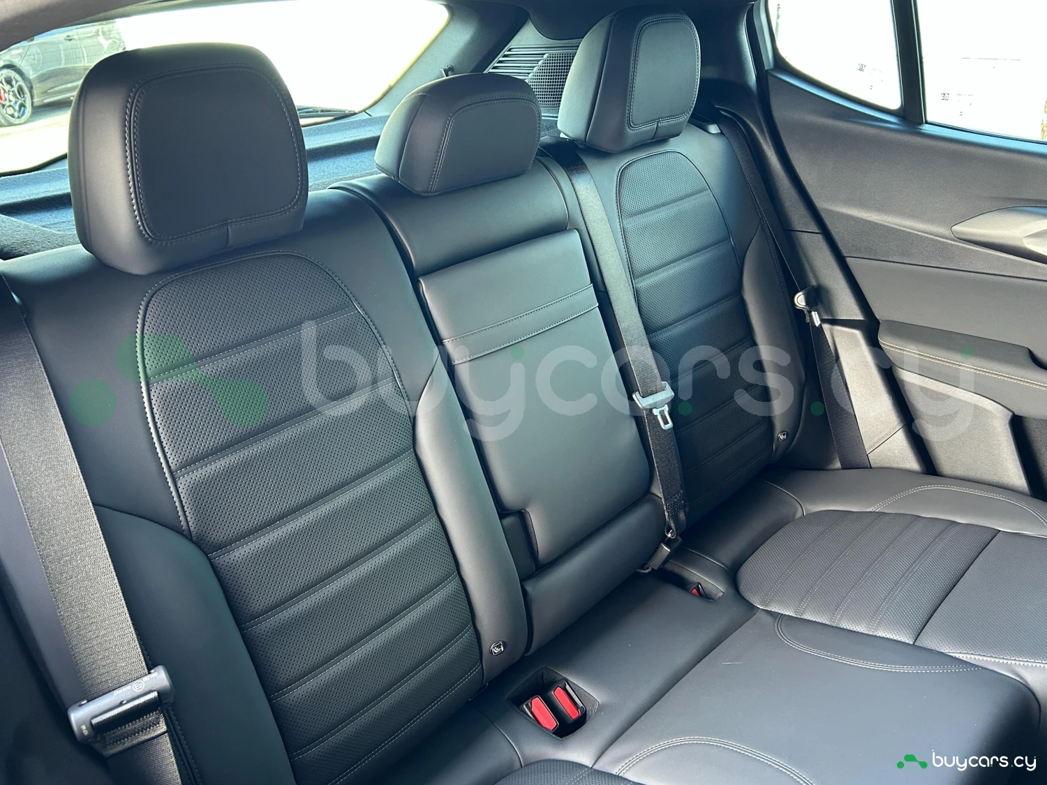 The cabin accommodates five passengers with natural leather seats, seat heating, paddle shift lever, and dual-zone automatic climate control. Italian craftsmanship emphasizes comfort and exclusivity.