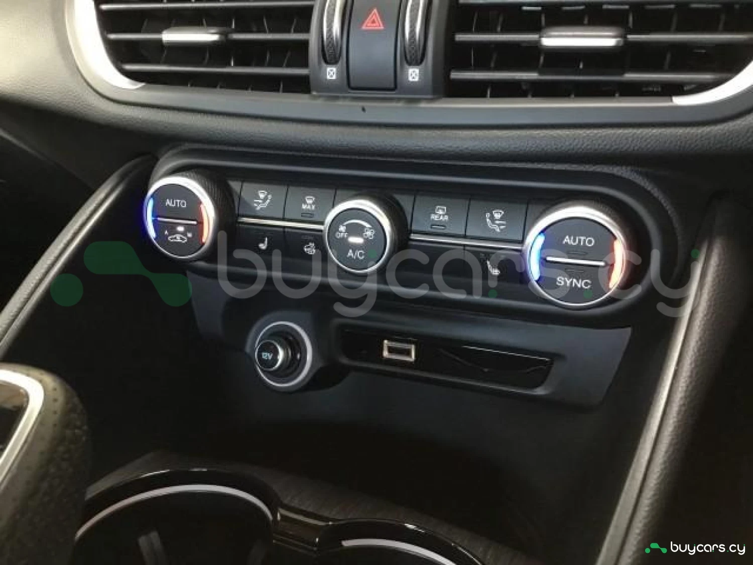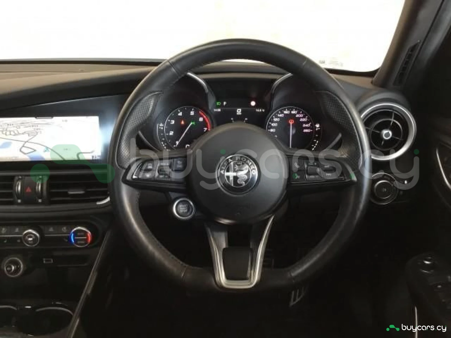 Inside, the Giulia TI combines luxury and sporty style. The cabin features leather seats in brown, with heating and power adjustment. The multimedia system includes an 8.8-inch screen, supporting Apple CarPlay and Android Auto, as well as a navigation system and TV. Additional conveniences include climate control, wireless charging, and a rearview camera.