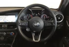The Giulia comes with advanced technologies and driver assistance systems, including adaptive cruise control, lane departure warning, blind-spot monitoring, and emergency braking system. The Alfa DNA system allows drivers to select driving modes: Dynamic, Normal, and Advanced Efficiency, optimizing vehicle performance based on driving conditions. Additional safety features include front and rear parking sensors and a 360-degree camera for added convenience and security.