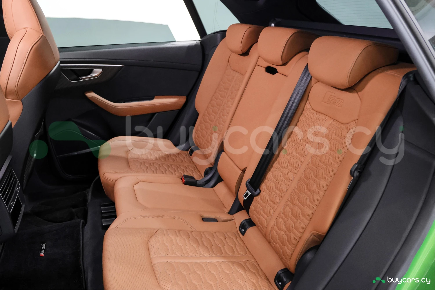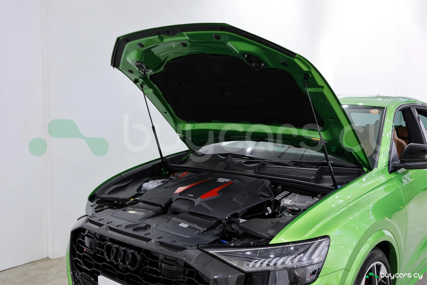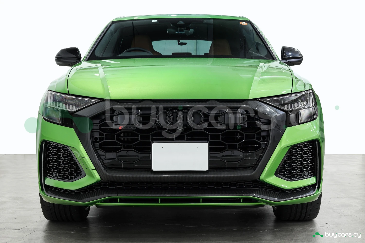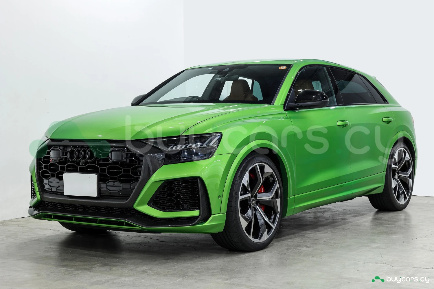 Finished in striking Java Green Metallic, the RS Q8 stands out with its aggressive and sporty design. Adaptive headlights and aluminum wheels complement the bold exterior styling.