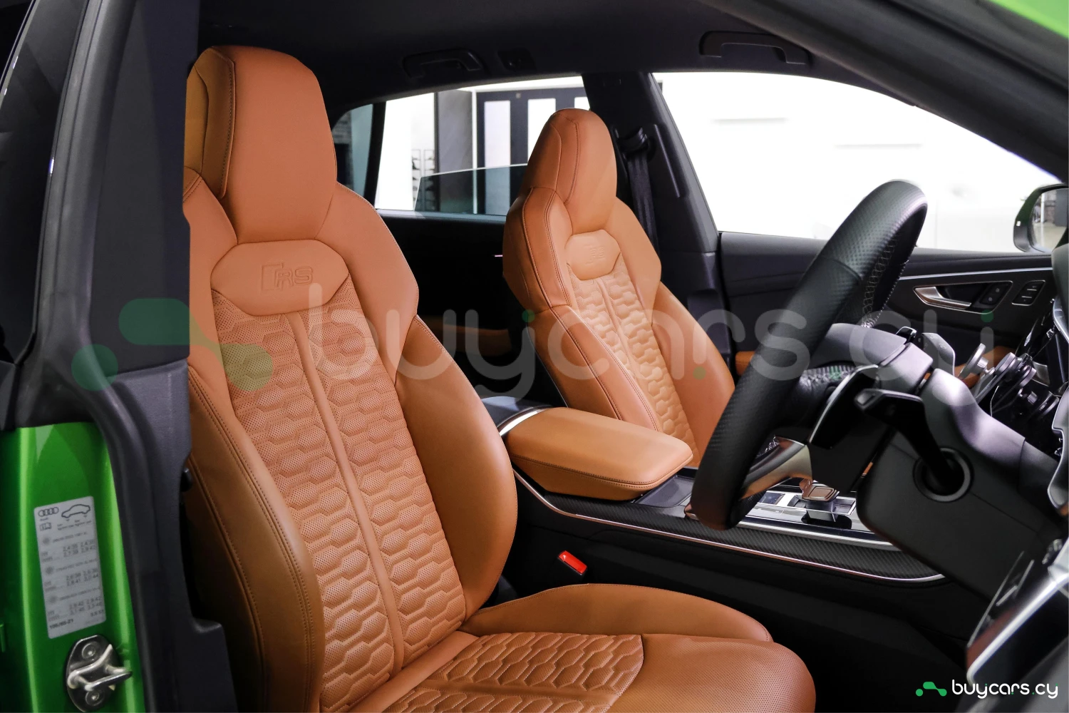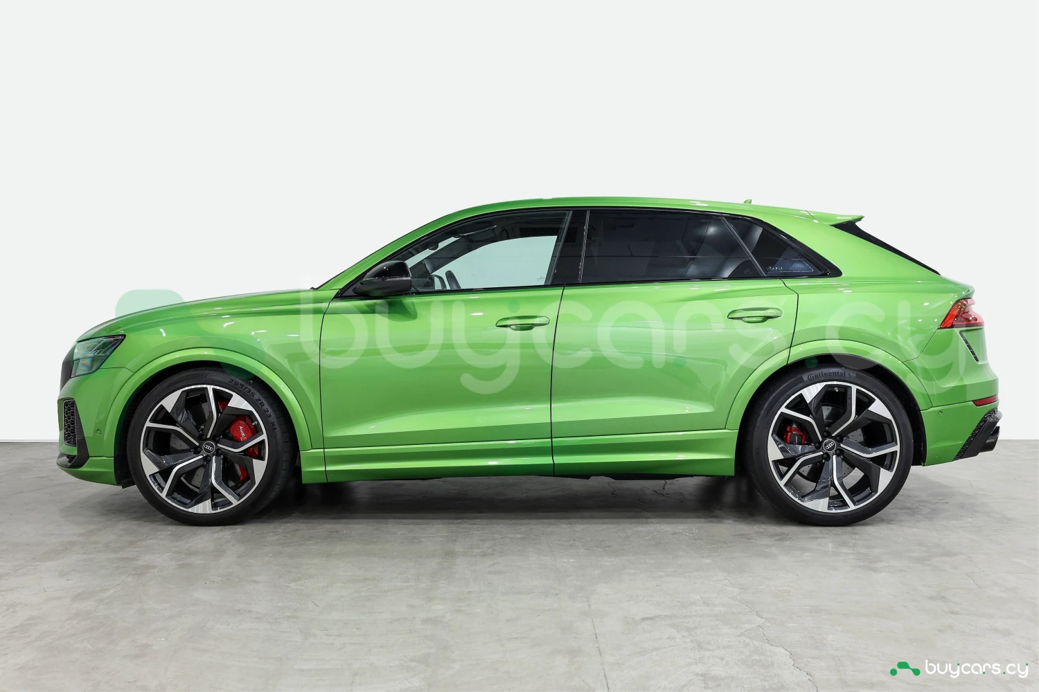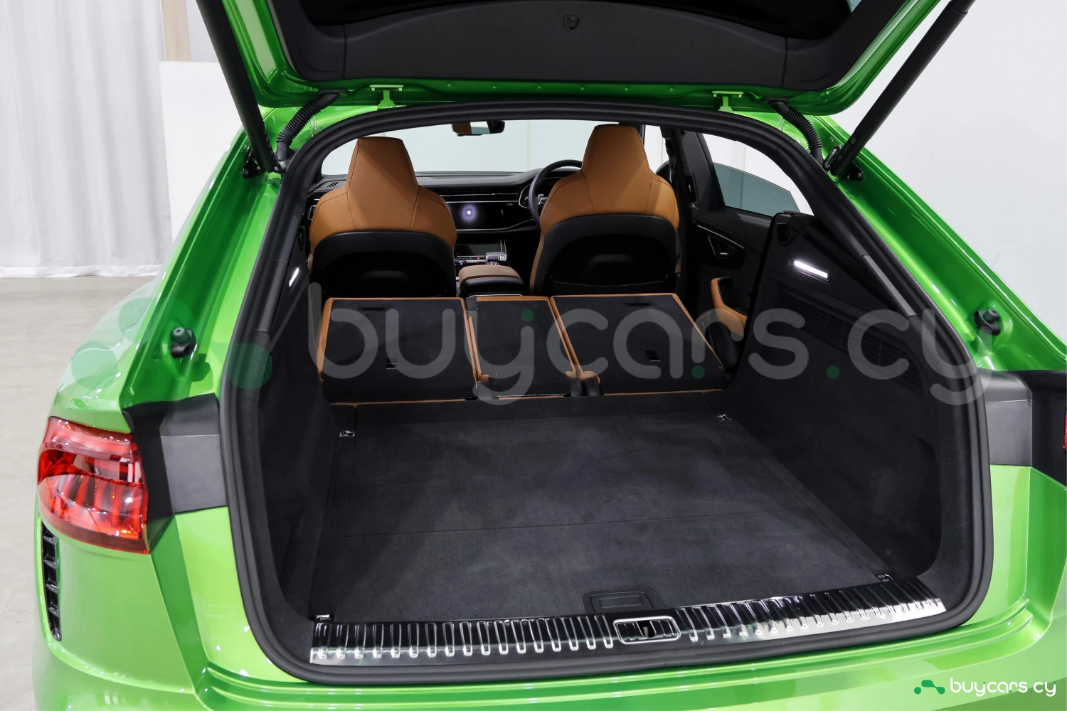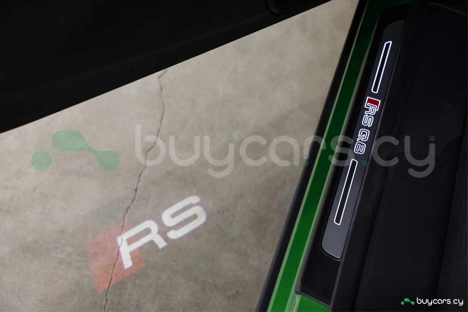 Finished in striking Java Green Metallic, the RS Q8 stands out with its aggressive and sporty design. Adaptive headlights and aluminum wheels complement the bold exterior styling.