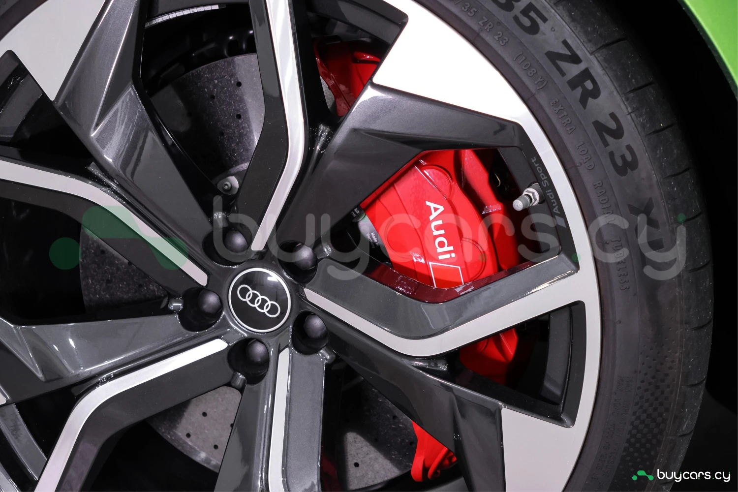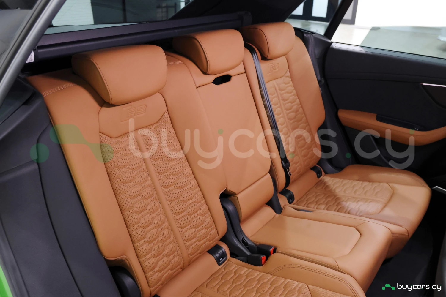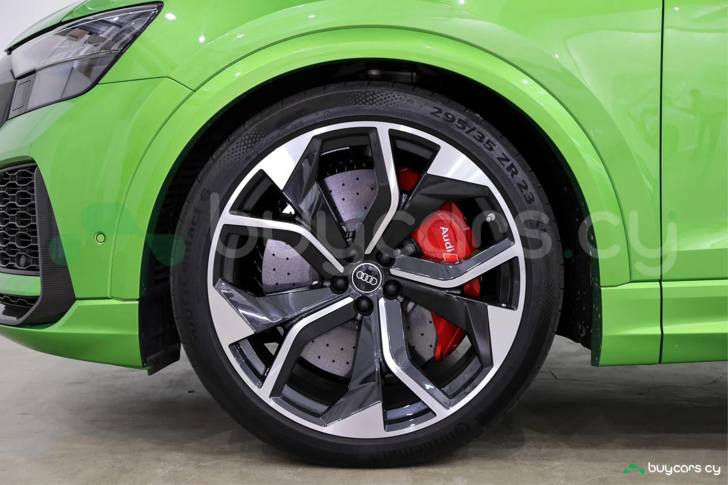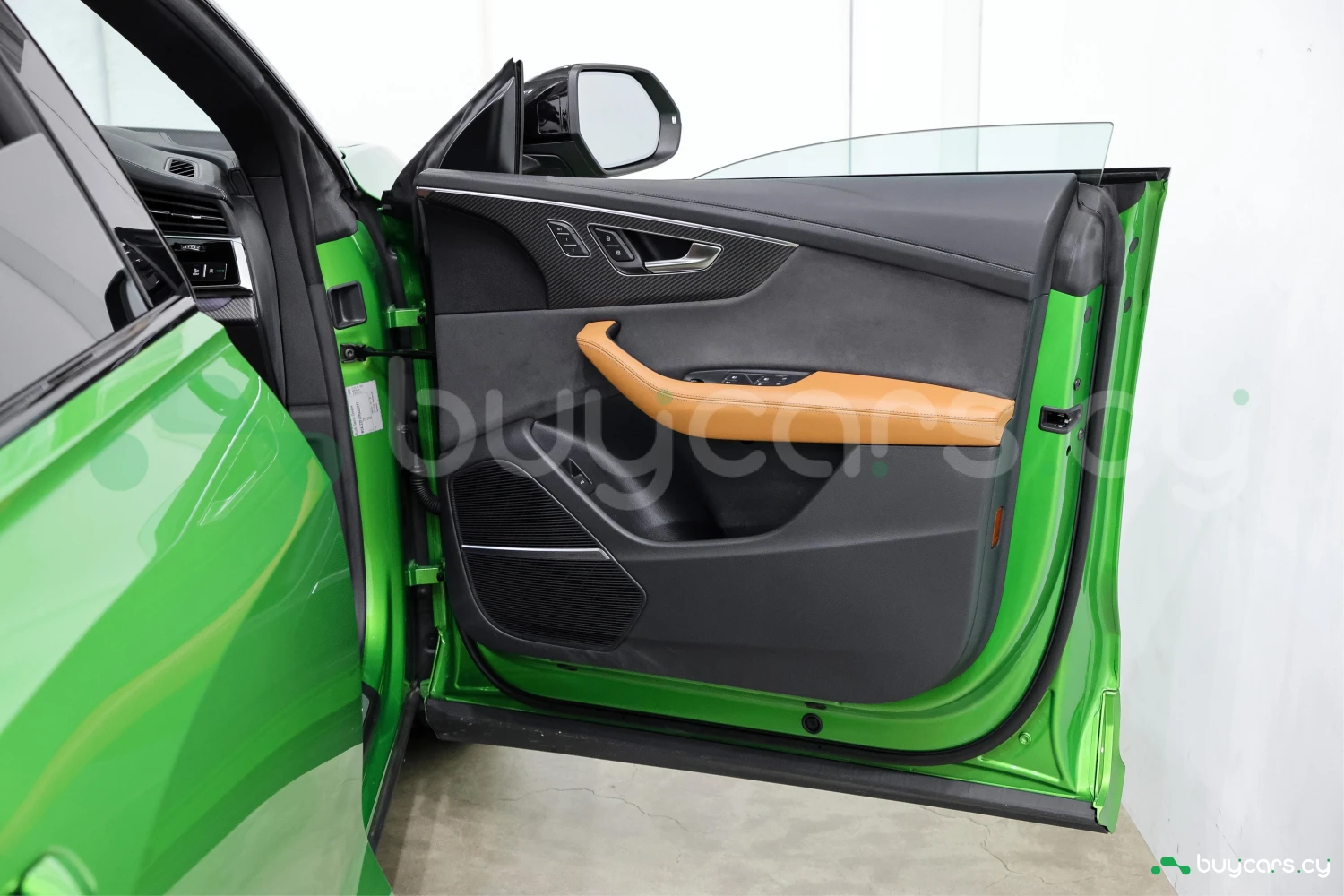 Finished in striking Java Green Metallic, the RS Q8 stands out with its aggressive and sporty design. Adaptive headlights and aluminum wheels complement the bold exterior styling.