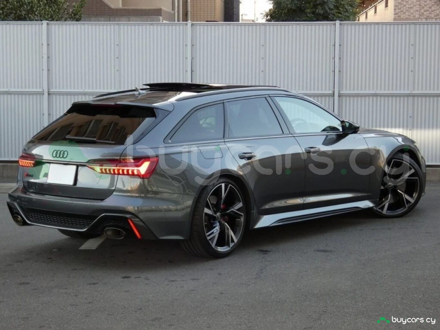 The Audi RS6 Avant 4.0 TFSI Quattro Tiptronic 2023 is a station wagon finished in Daytona Grey Pearl Effect with a hybrid engine. It combines high performance with everyday practicality.