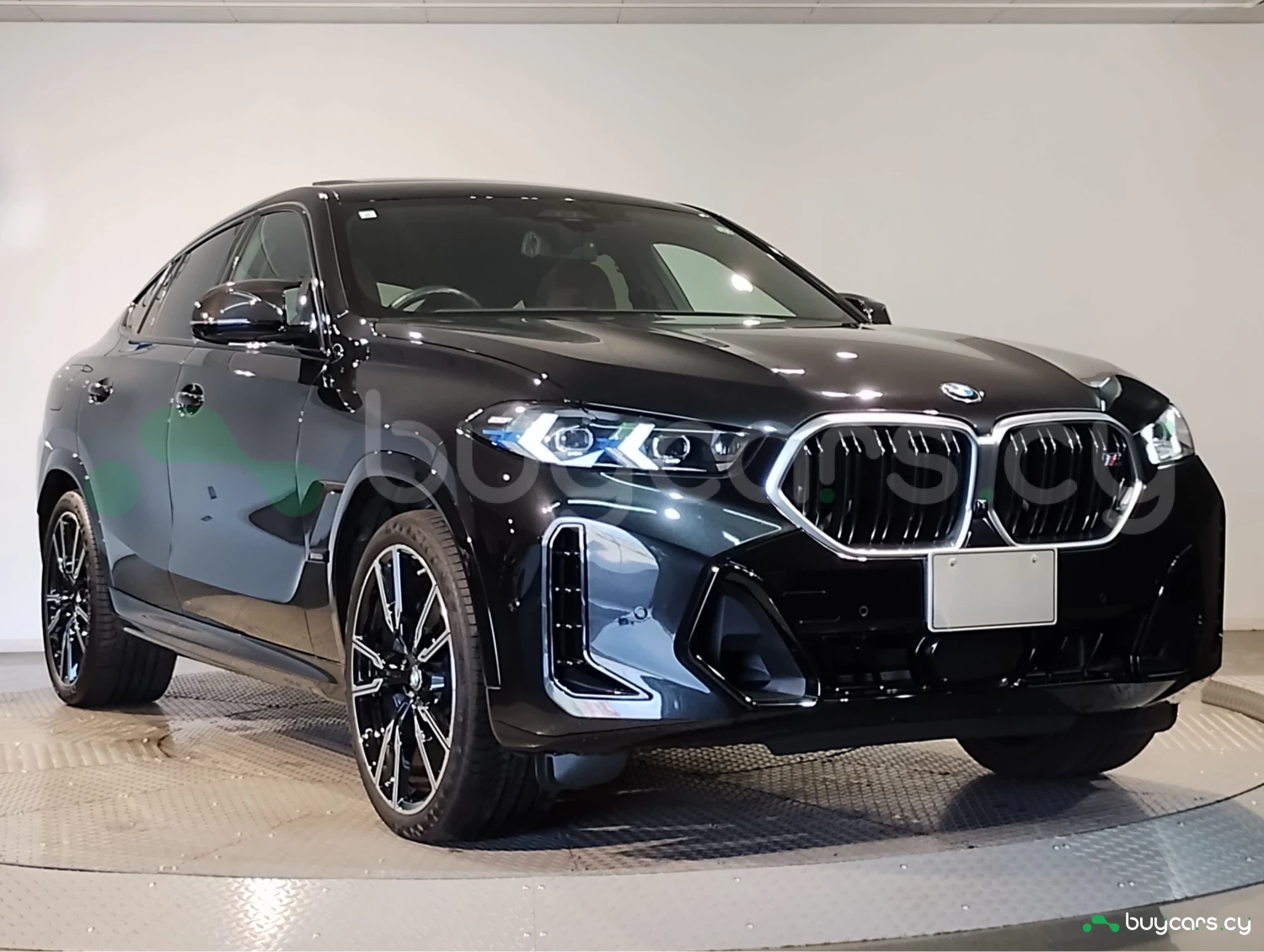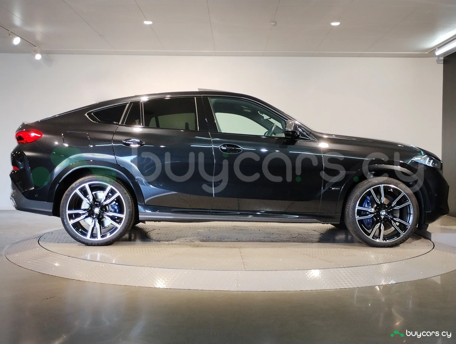 The Black Sapphire Metallic finish highlights the coupe-SUV silhouette. M Carbon Fiber mirrors and trim, aerodynamic body kit, and stylish aluminum wheels reinforce the aggressive and premium character of the BMW X6 M60i.