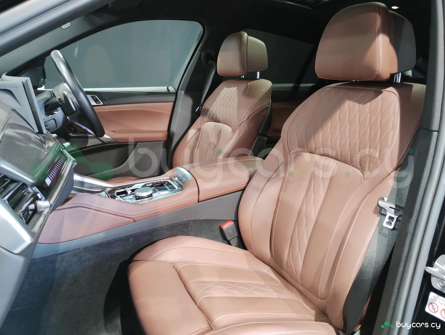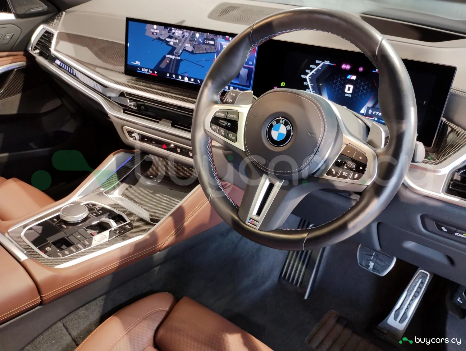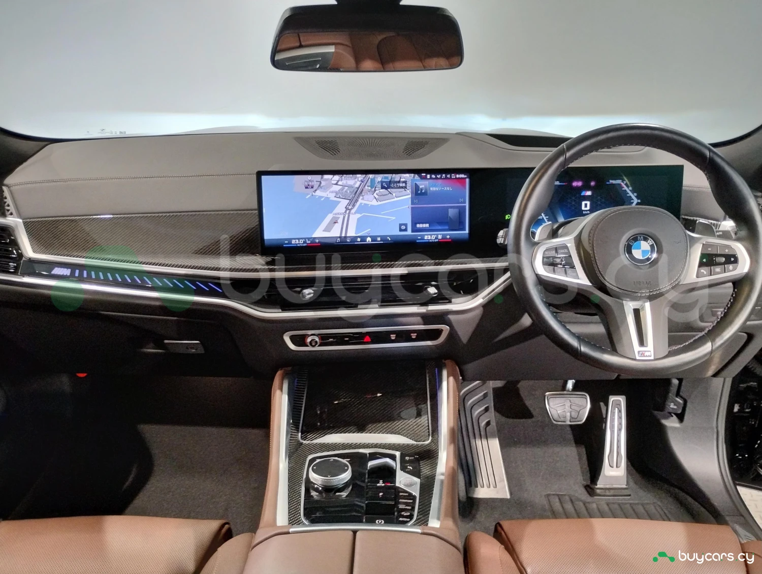 Luxury Sports SUV / Cross-country, 4WD (xDrive), 4.4L (4400cc) V8 Hybrid gasoline engine, 8-speed automatic transmission (8AT with manual mode), Right-hand drive, 5 seats, 5 doors, Black Sapphire Metallic, M Sport Package, M Carbon Fiber mirrors, M Carbon Fiber interior trim, Full aero package, Adaptive LED headlights, Adaptive cruise control (ACC), Lane Keep Assist, Collision mitigation braking, Blind Spot Monitor / Rear Traffic Alert, Parking Assist, All-around (360°) camera, Front/Rear cameras, Obstacle sensors, ABS, Power steering, Anti-skid system, Hill Descent Control, Automatic high beam, Glass sunroof, Genuine coffee brown leather seats, Electric seats, Heated seats, Dual-zone climate control, Head-Up Display, HDD navigation system, Display Audio (Apple CarPlay / Android Auto), ETC, Aluminum wheels (2022 design), Smart key & keyless entry, Power windows
