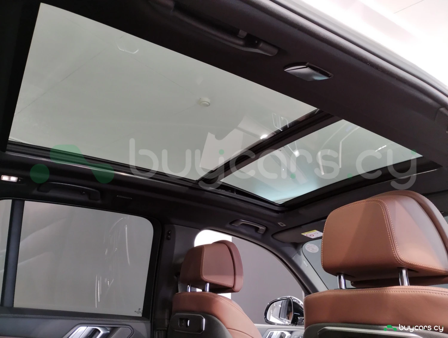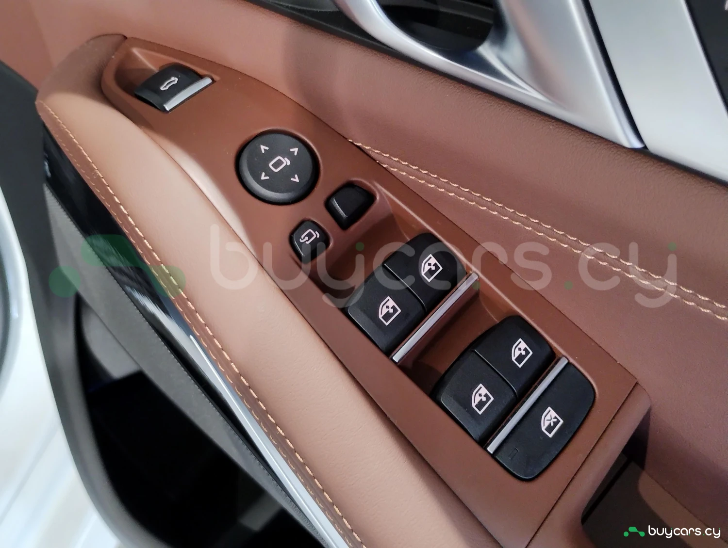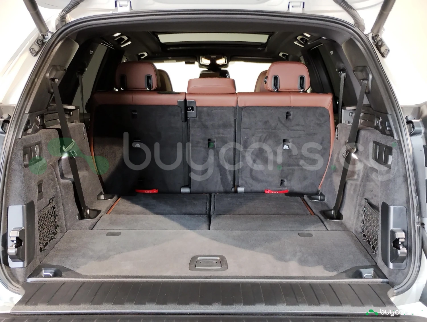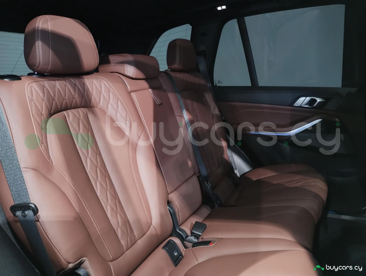 The interior is finished with genuine leather and offers three-row seating for up to seven passengers.