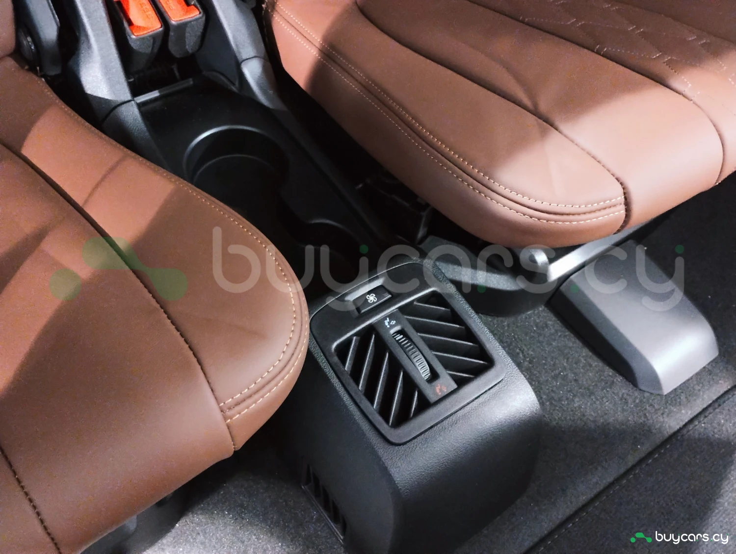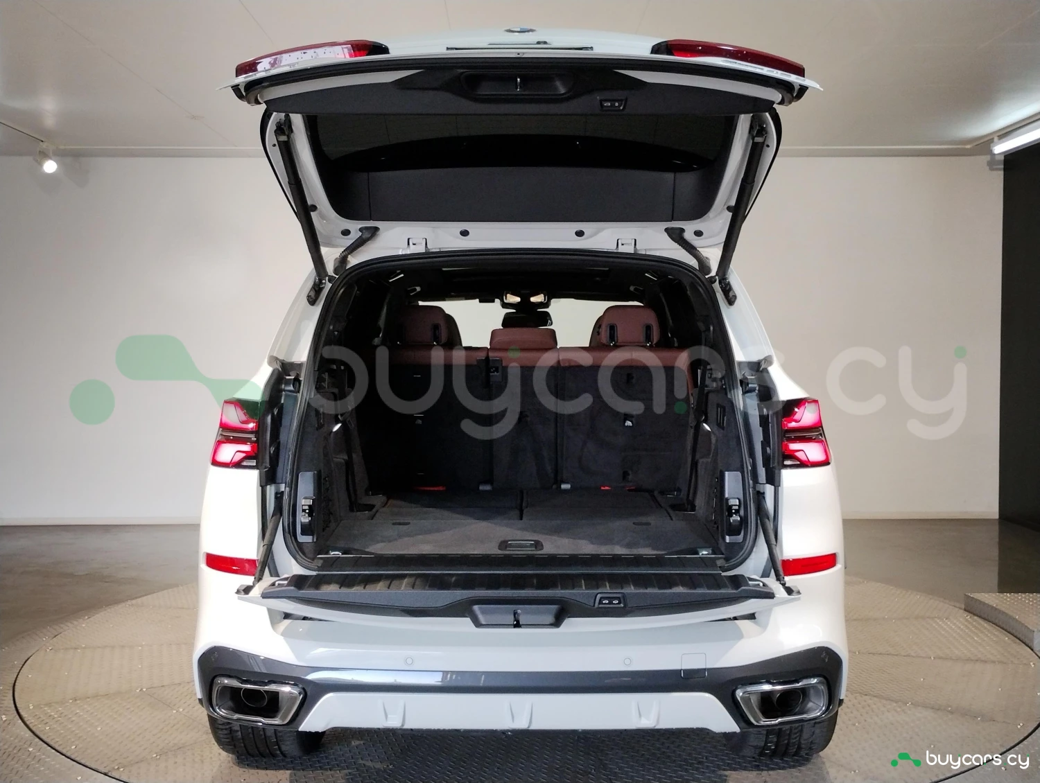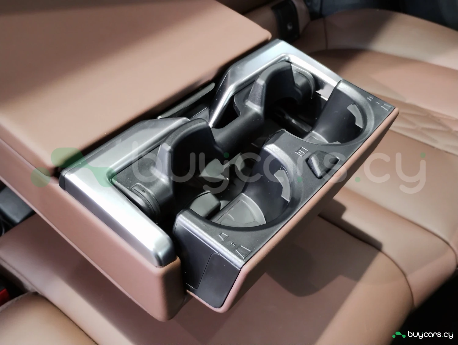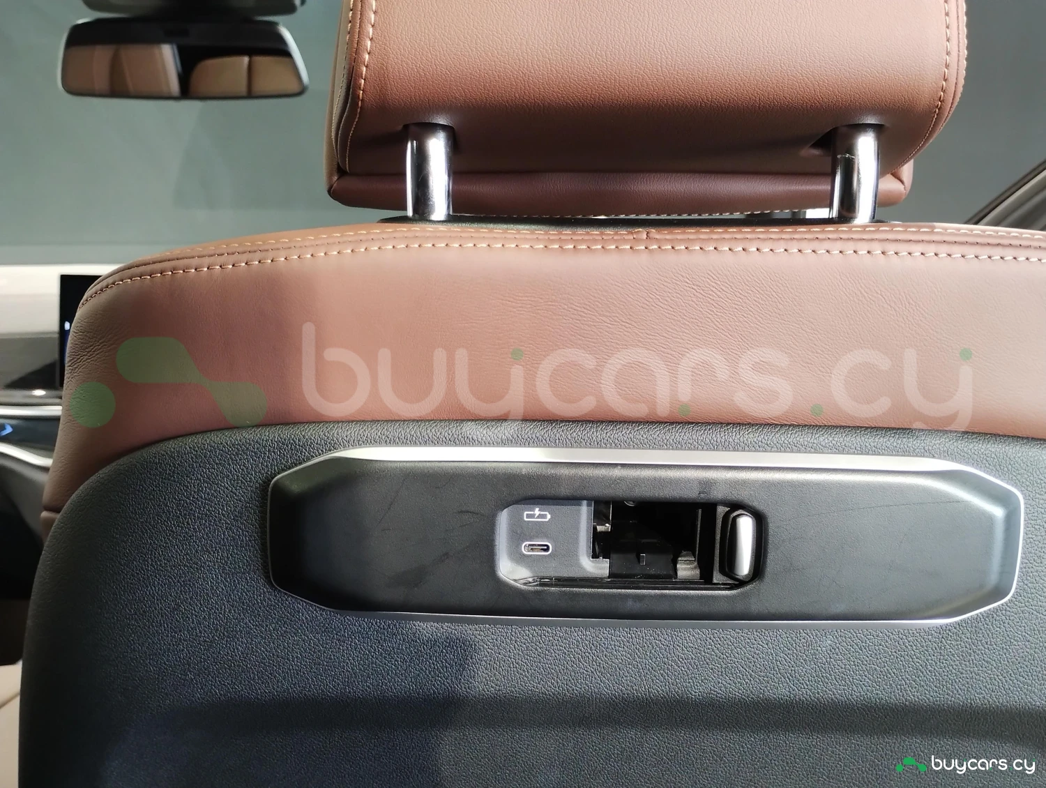 The interior is finished with genuine leather and offers three-row seating for up to seven passengers.