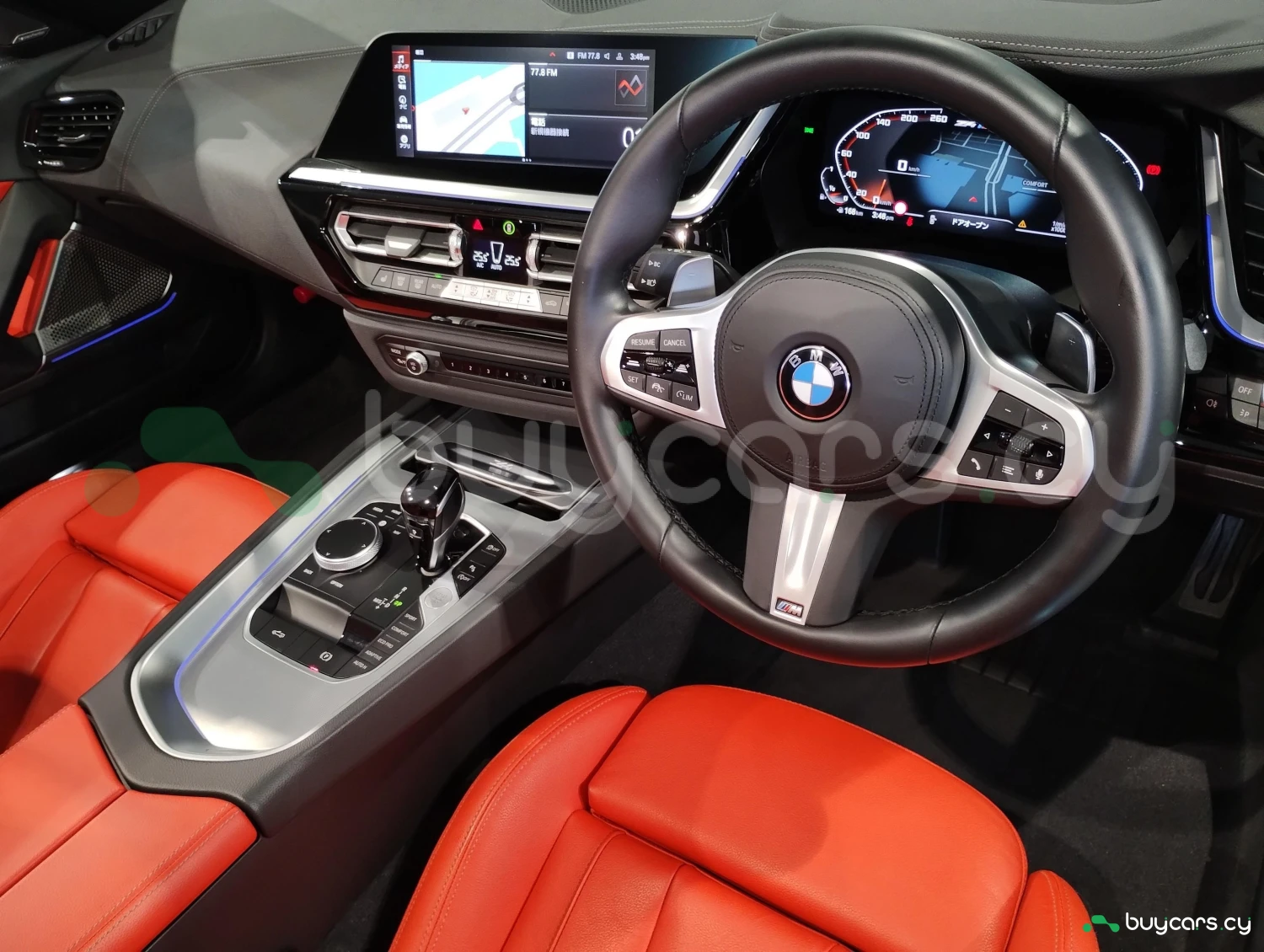 2-door roadster (convertible), 2 seats, 3.0L turbocharged gasoline engine (3000cc), 8-speed automatic transmission with manual mode, rear-wheel drive (2WD), right-hand drive, Black Sapphire Metallic, Magma Red leather interior, M40i Select Package, Adaptive LED headlights, Active Cruise Control, Lane Keep Assist, Collision Mitigation Braking, Parking Assist, Reverse Camera, Blind Spot Monitoring, Obstacle Sensors, Airbags (Driver/Passenger/Side), Anti-skid stability control, Automatic High Beam, Head-Up Display (HUD), Harman Kardon premium sound system, Genuine HDD Navigation system, Full-Segment TV, Bluetooth connectivity, Apple CarPlay compatibility, ETC, Dual-zone automatic climate control, Smart Key and Keyless Entry, Power-adjustable seats, Heated seats, Ambient interior lighting, Optional 19-inch aluminum alloy wheels.