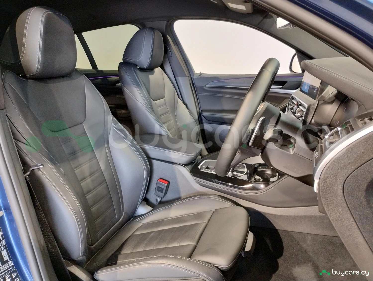 The exterior showcases 20-inch M Sport aluminum wheels, adaptive LED headlights, and the muscular proportions that define the X4’s coupe-like silhouette. The Phytonic Blue finish adds a premium touch, highlighting both elegance and athleticism.