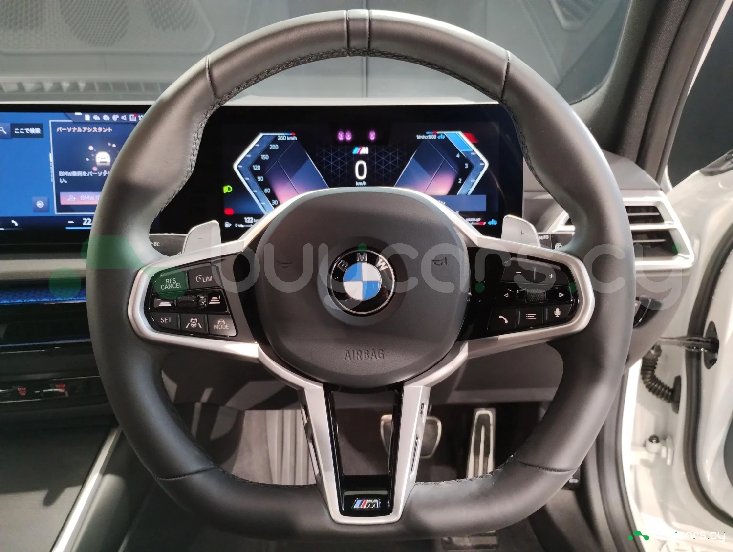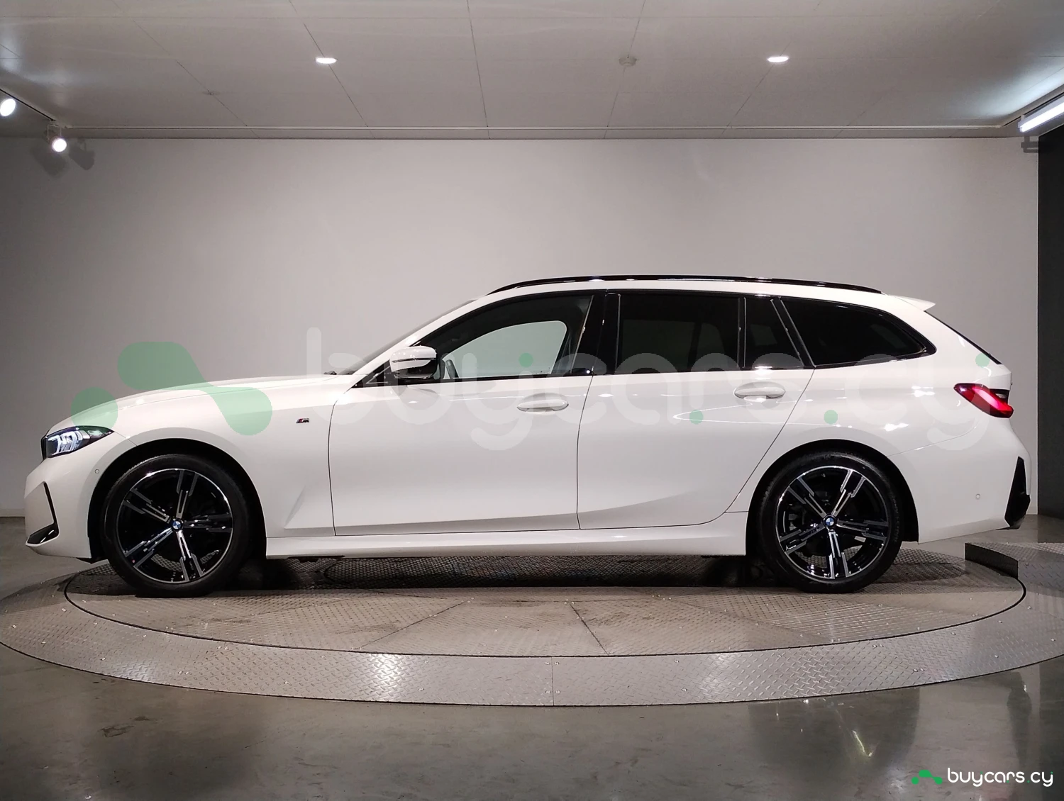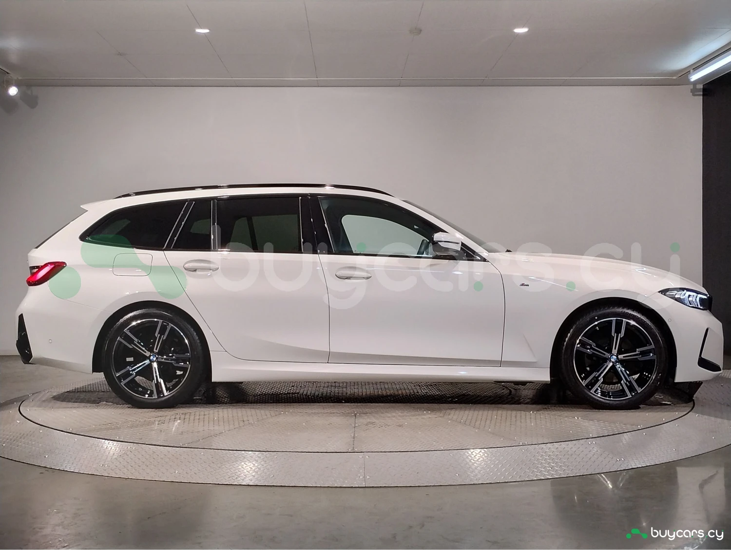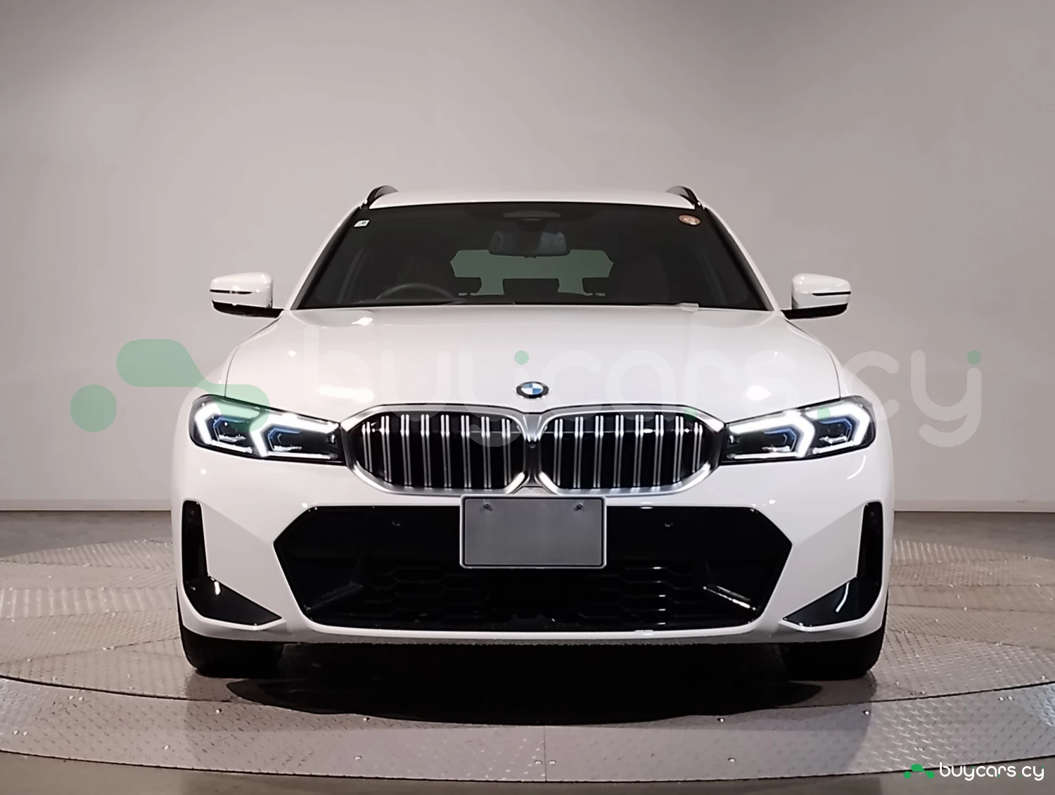 The exterior is finished in Alpine White, complemented by M Sport styling elements. Functional features such as automatic high beam and acoustic glass highlight the modern design of this station wagon.