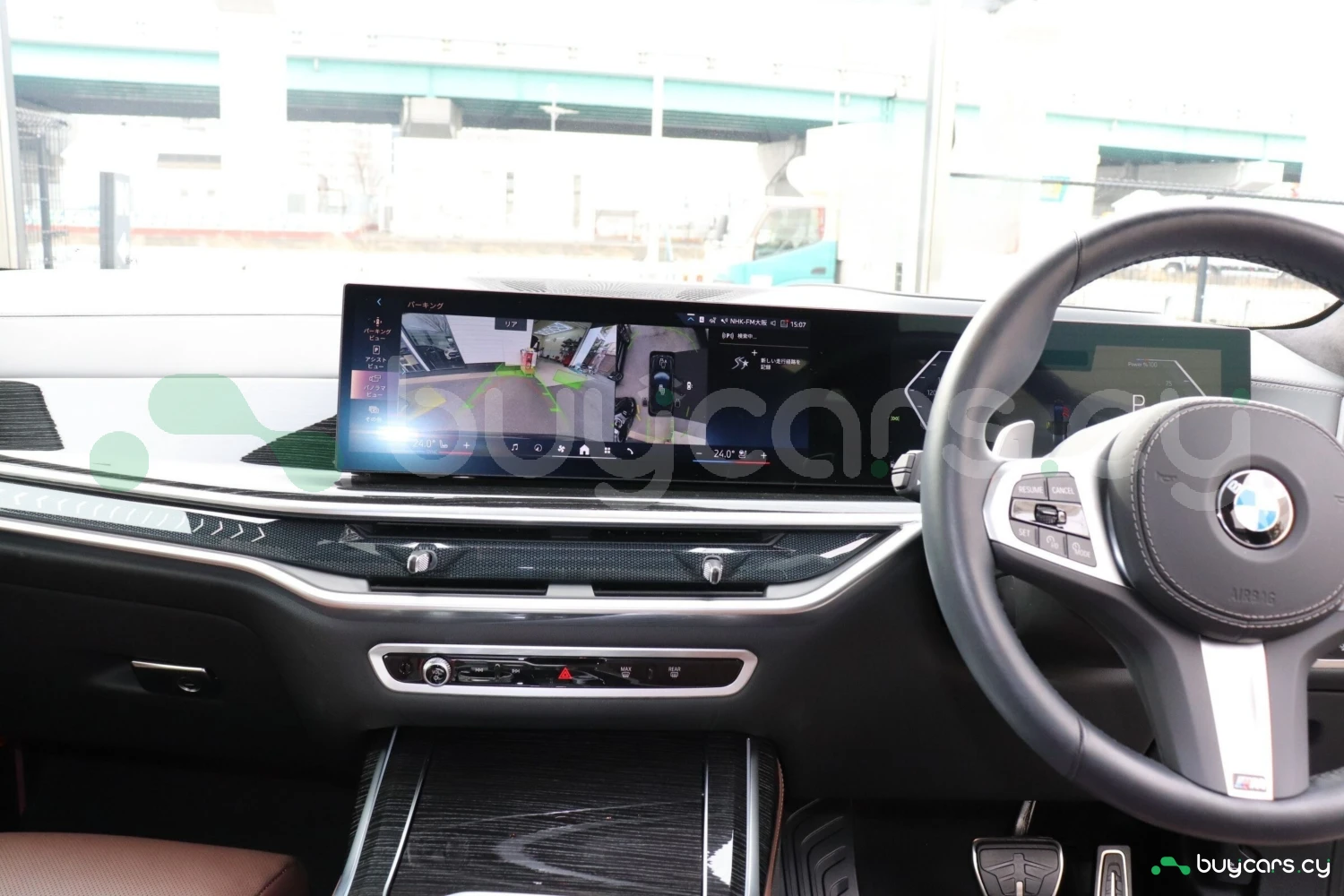 SUV / Cross-country, 4WD (xDrive), 3.0L Diesel Turbo (3000cc) with hybrid system, 8-speed automatic transmission (AT with manual mode), Right-hand drive, 7 seats (3-row), 5 doors, Black Sapphire Metallic, M Sport Package, M Sport Package Pro, Sky Lounge panoramic sunroof, Air suspension, Adaptive cruise control, Lane Keep Assist, Collision mitigation braking, Blind Spot Monitor, Parking Assist, All-around (360°) camera, Front/Side/Rear cameras, Obstacle sensors, ABS, Power steering, Anti-skid system, Hill Descent Control, Idling stop, Anti-theft system, Adaptive LED headlights, Roof rails, Aluminum wheels, Electric seats, Heated seats, Seat air conditioning, Front massage seats, Genuine brown leather interior, Head-Up Display (HUD), Harman Kardon premium sound system, Navigation system (HDD), Full-segment TV, Display Audio (Apple CarPlay / Android Auto), ETC, Keyless entry & smart key, Power windows