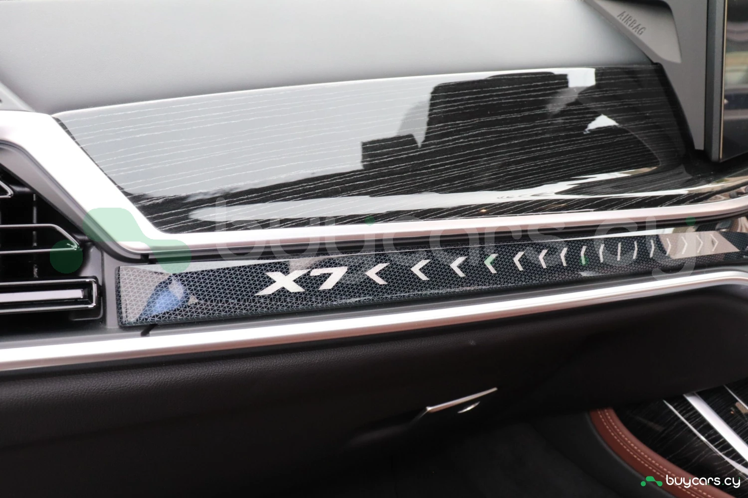 The Black Sapphire Metallic finish highlights the bold design of the BMW X7. Adaptive LED headlights, sporty M aerodynamics, large alloy wheels, and elegant proportions create a powerful and prestigious road presence.