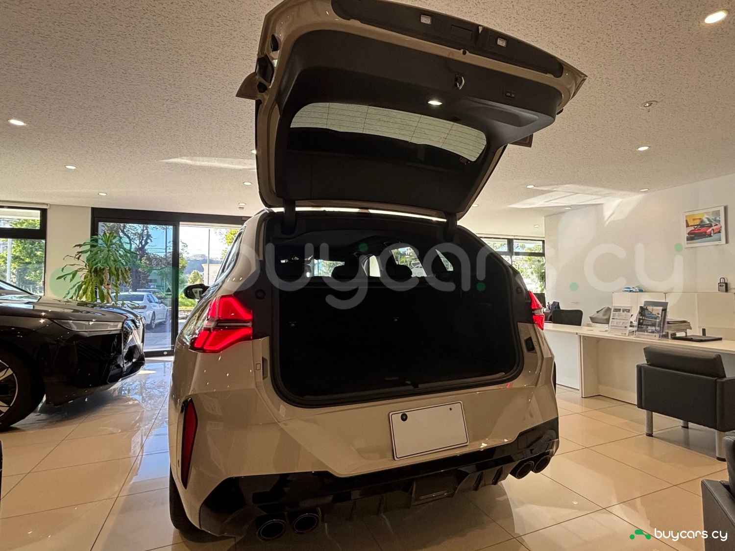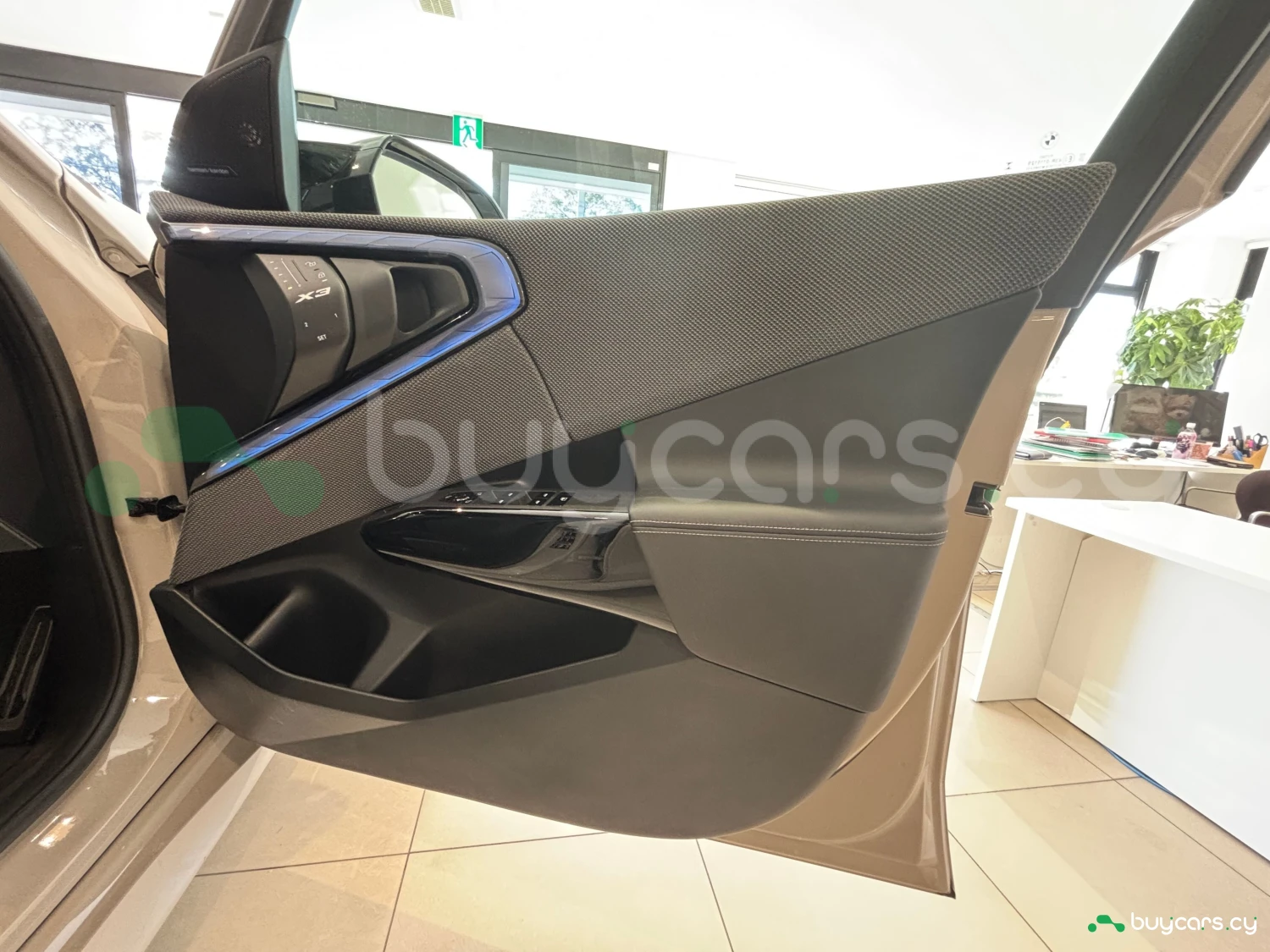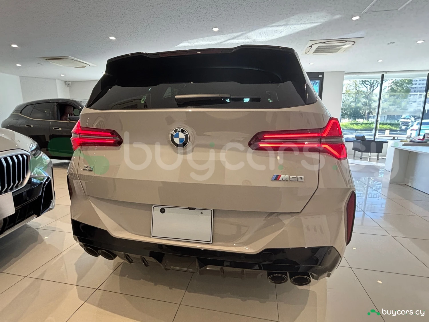 The bold design of the BMW X3 M50 is enhanced by its Dune Gray Metallic finish, sporty aluminum wheels, roof rails, and panoramic sunroof. The aggressive front fascia and signature BMW styling elements emphasize its dynamic character and premium SUV presence.