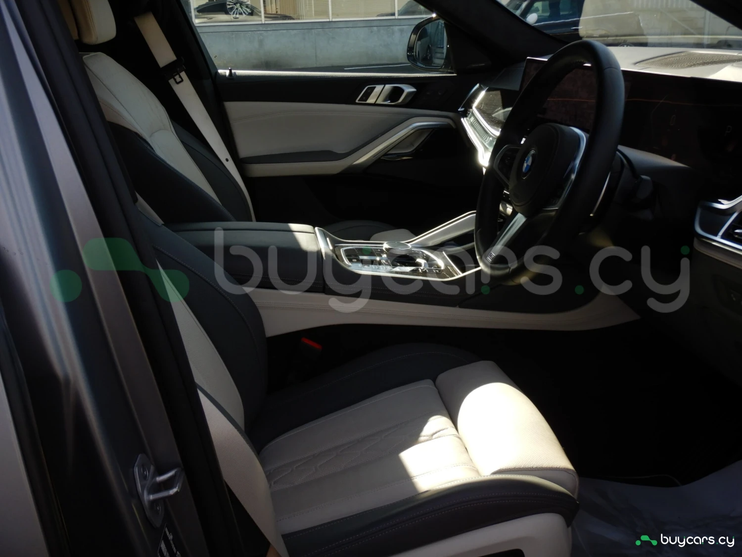 The SUV body is finished in Frozen Pure Gray Metallic, giving the vehicle a distinctive and modern appearance suitable for a BMW X6 for sale.