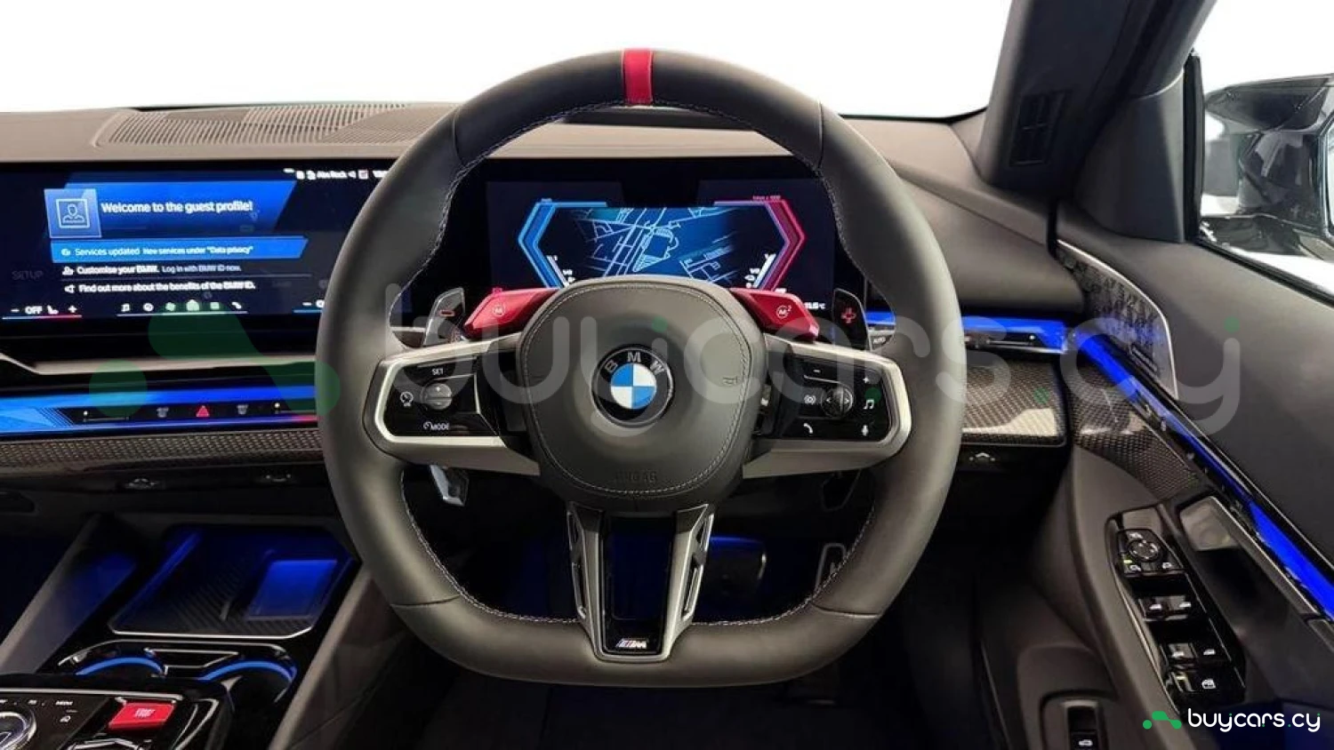 Inside, the M5 CS features a motorsport-inspired yet luxurious cabin. Highlights include carbon fiber trim, exclusive M bucket seats front and rear, a fully digital instrument cluster, and BMW’s latest infotainment system with navigation, hybrid monitoring, and Apple CarPlay integration. A panoramic display keeps the driver informed with performance and range data.