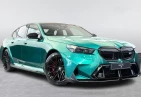 The 2025 BMW M5 CS Plug-In Hybrid, finished in the eye-catching Isle of Man Green, is a high-performance sports saloon with an electrified powertrain. Representing the pinnacle of BMW’s M engineering, this model combines an aggressive motorsport-inspired design, aerodynamic refinements, and everyday practicality. Distinctive styling elements include 20"/21" 951 M black forged wheels, Dark Silver M accents, and high-gloss red M brake calipers, which visually underline its track-ready character.