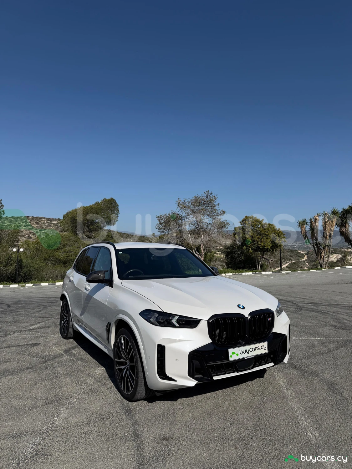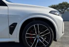 The exterior design of the BMW X5 M60i emphasizes its performance-oriented character. The aggressive front fascia, signature kidney grille, and sporty bumper design create a powerful visual identity. The white finish combined with black accents enhances its dynamic and premium appeal.