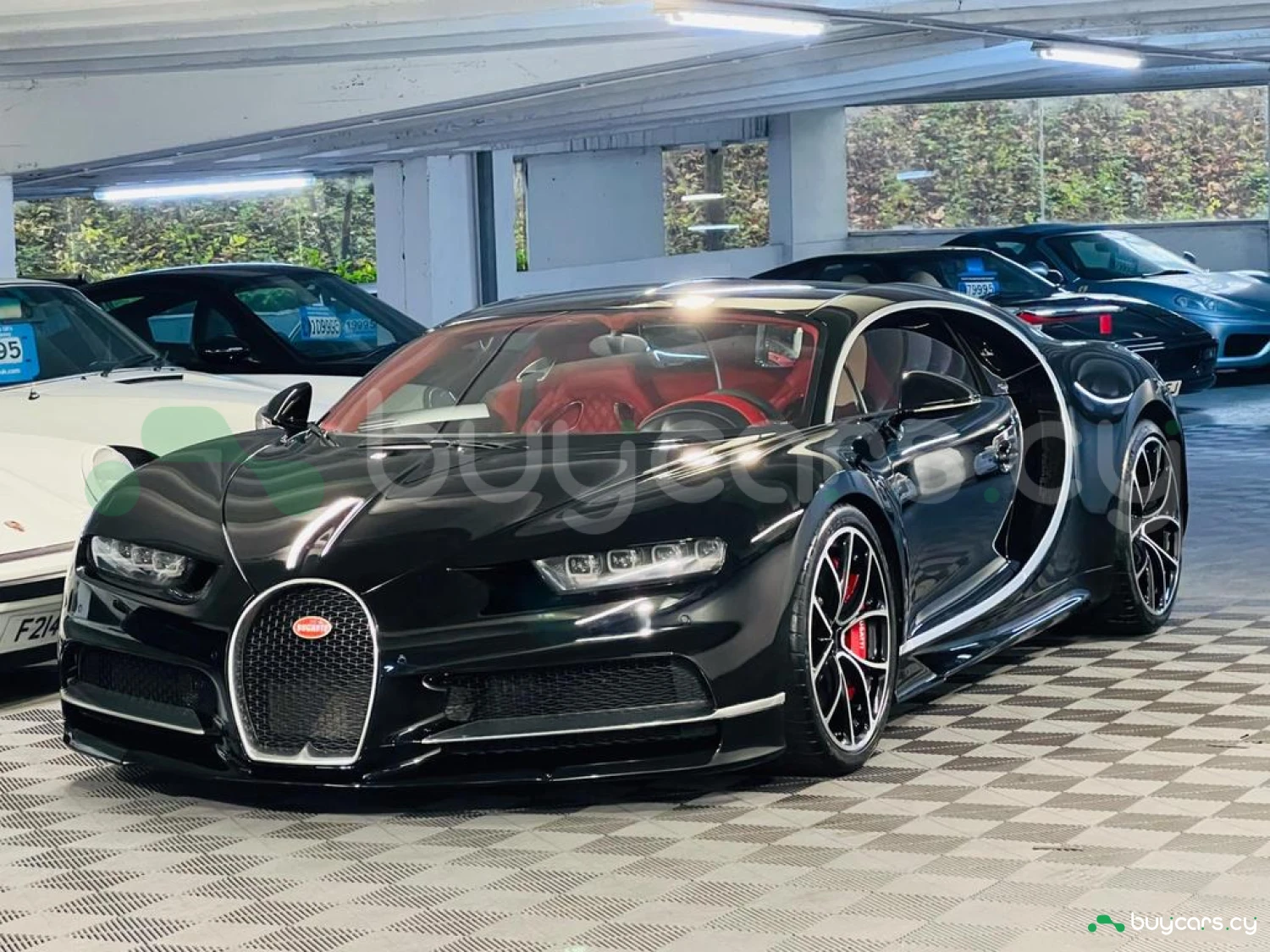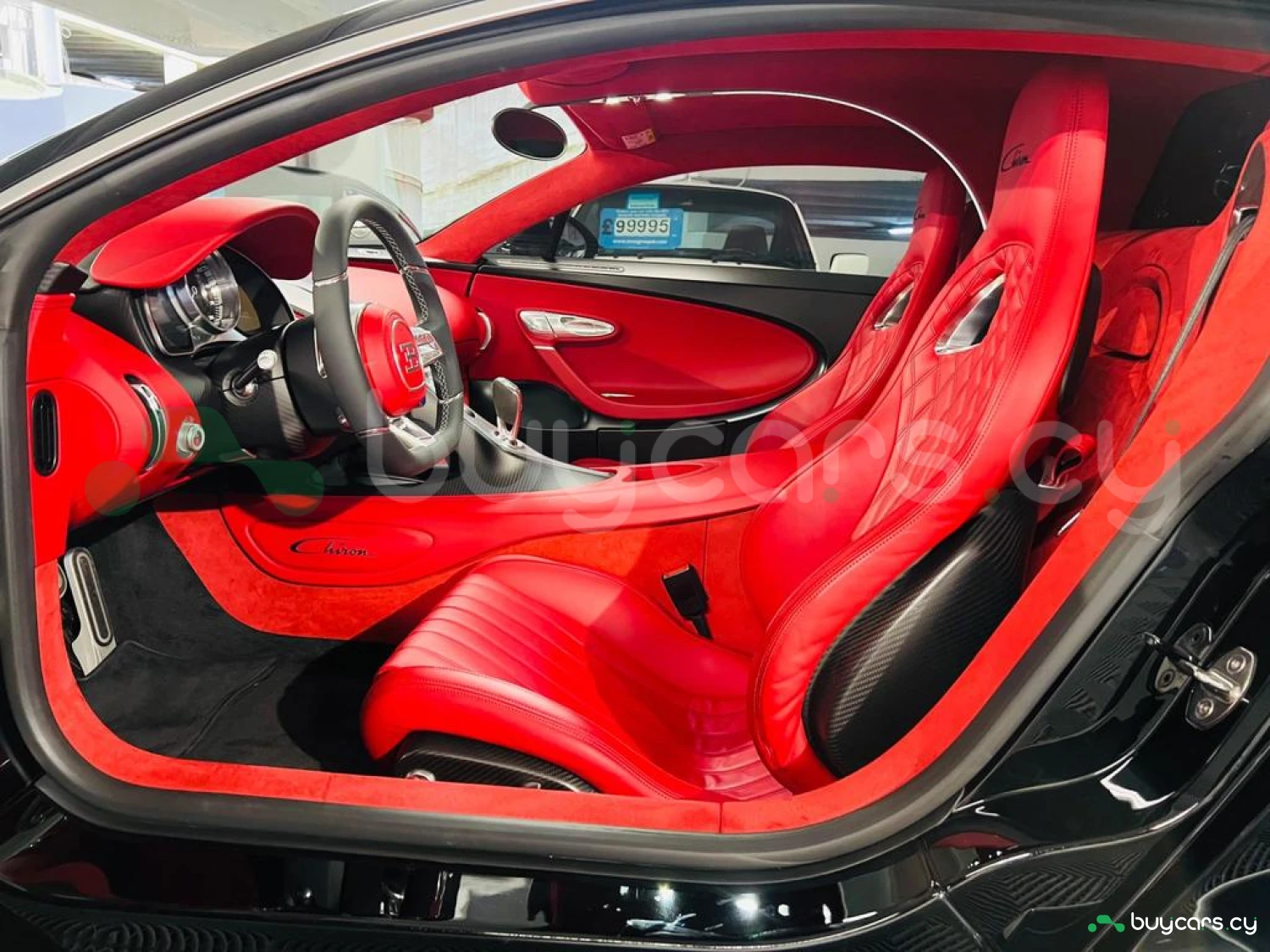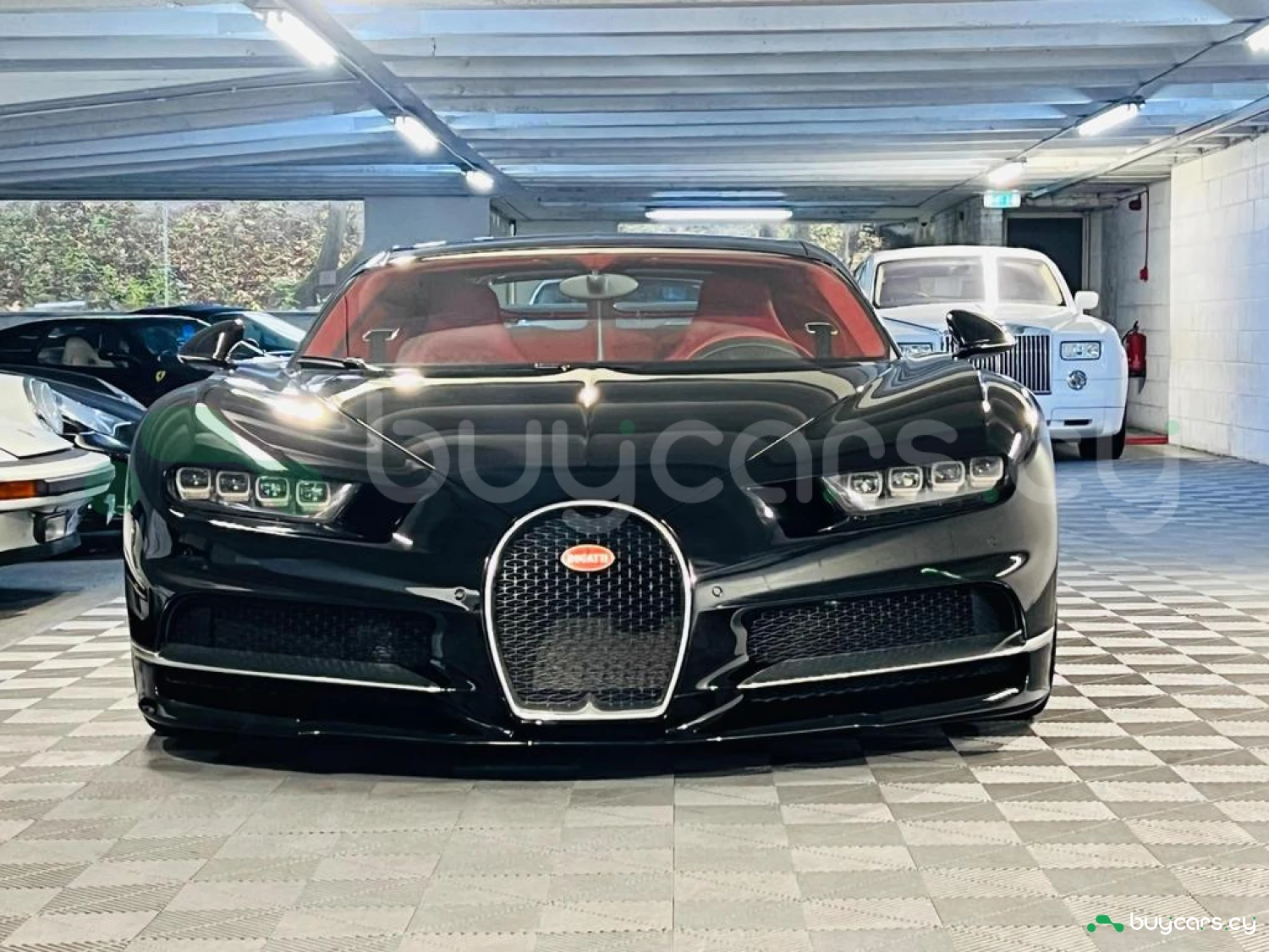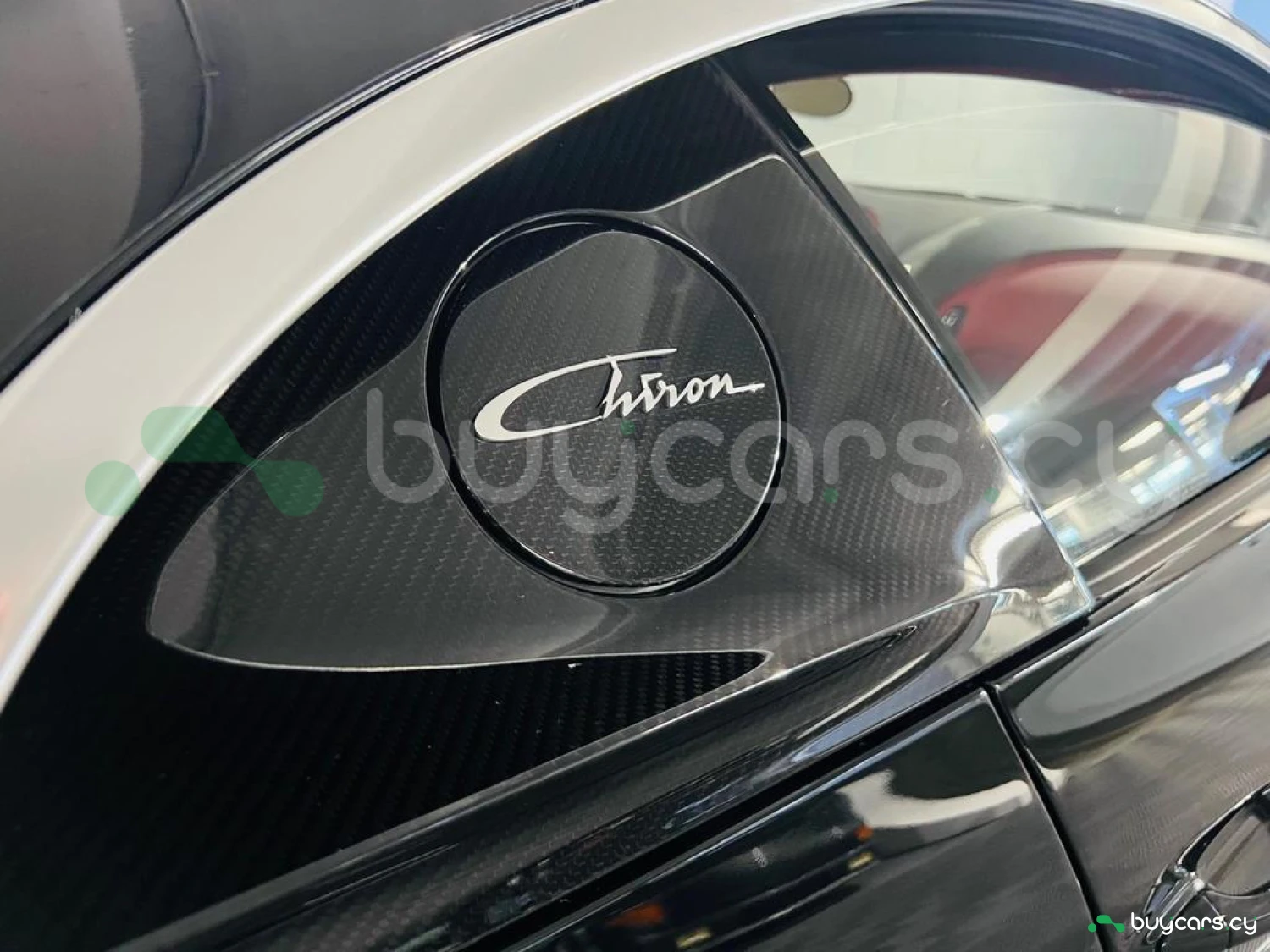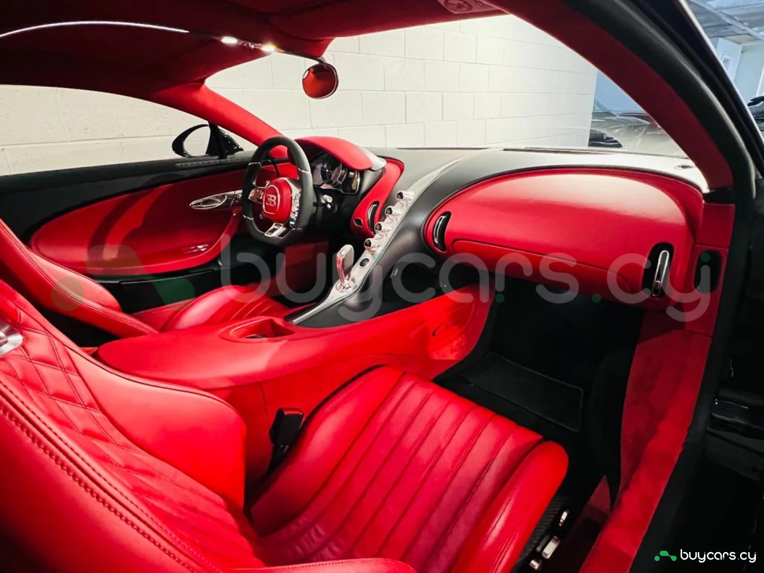 Performance & Handling: Iconic Bugatti engineering, powerful W16 engine (details not specified), diamond-cut alloy wheels, red brake calipers, two-tone rear wing.