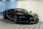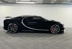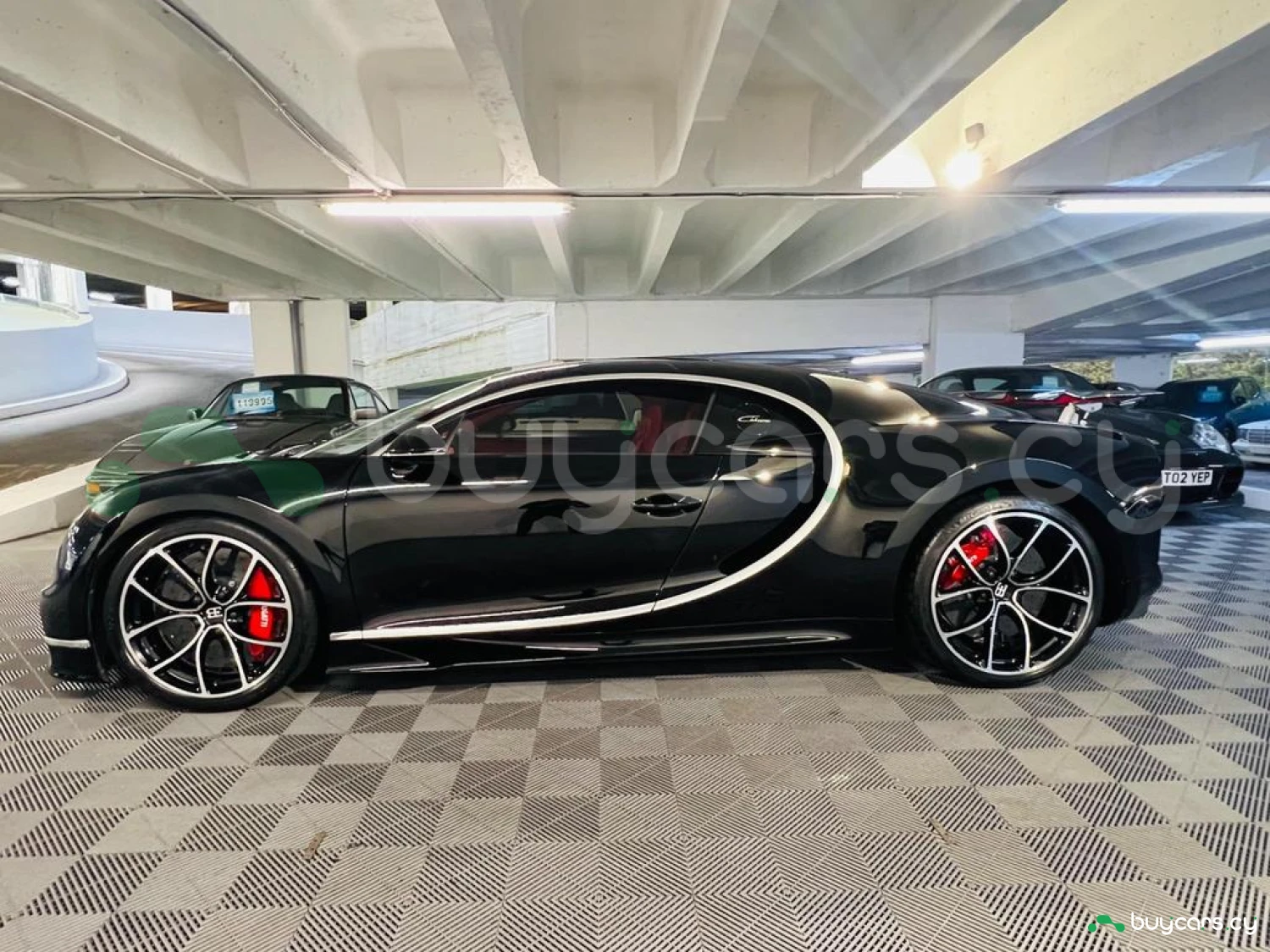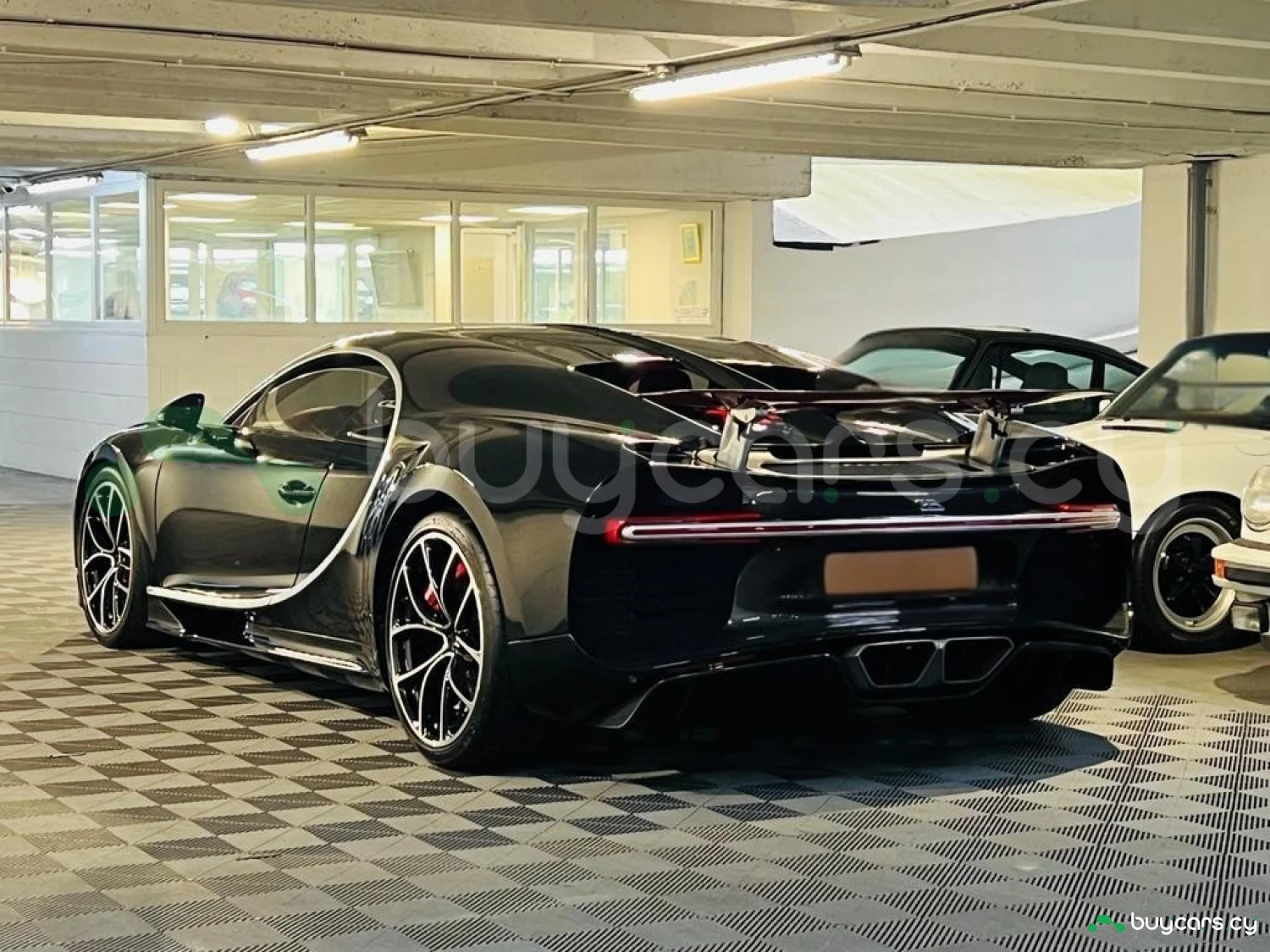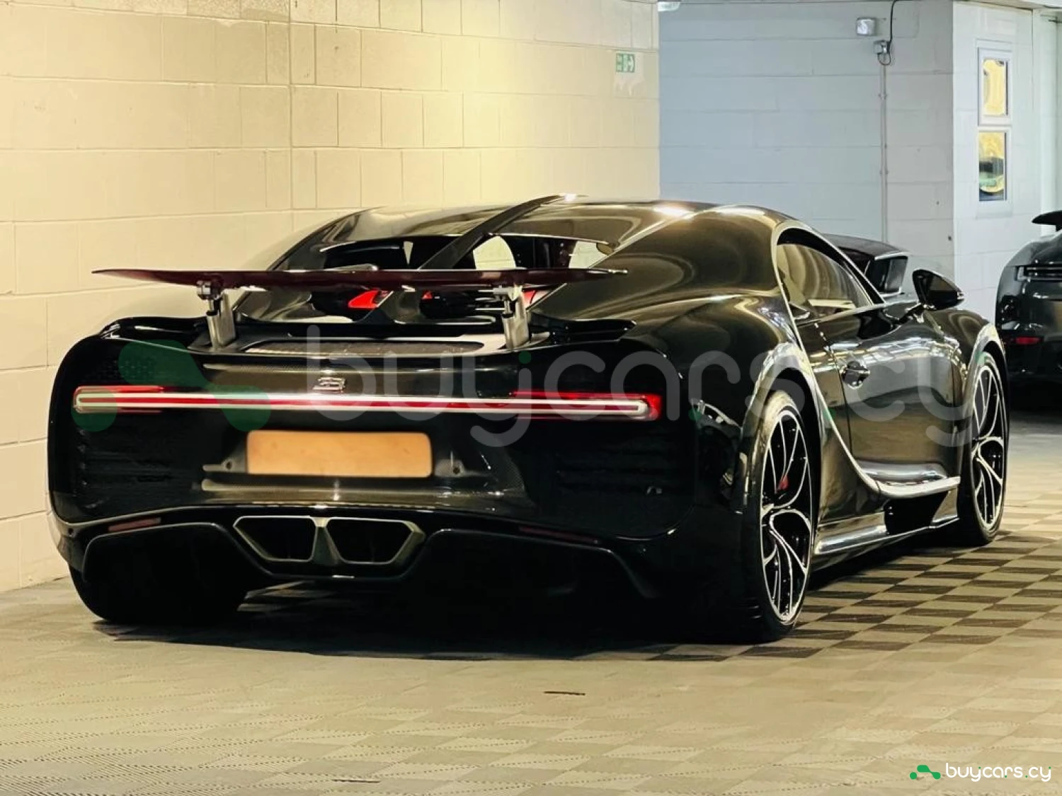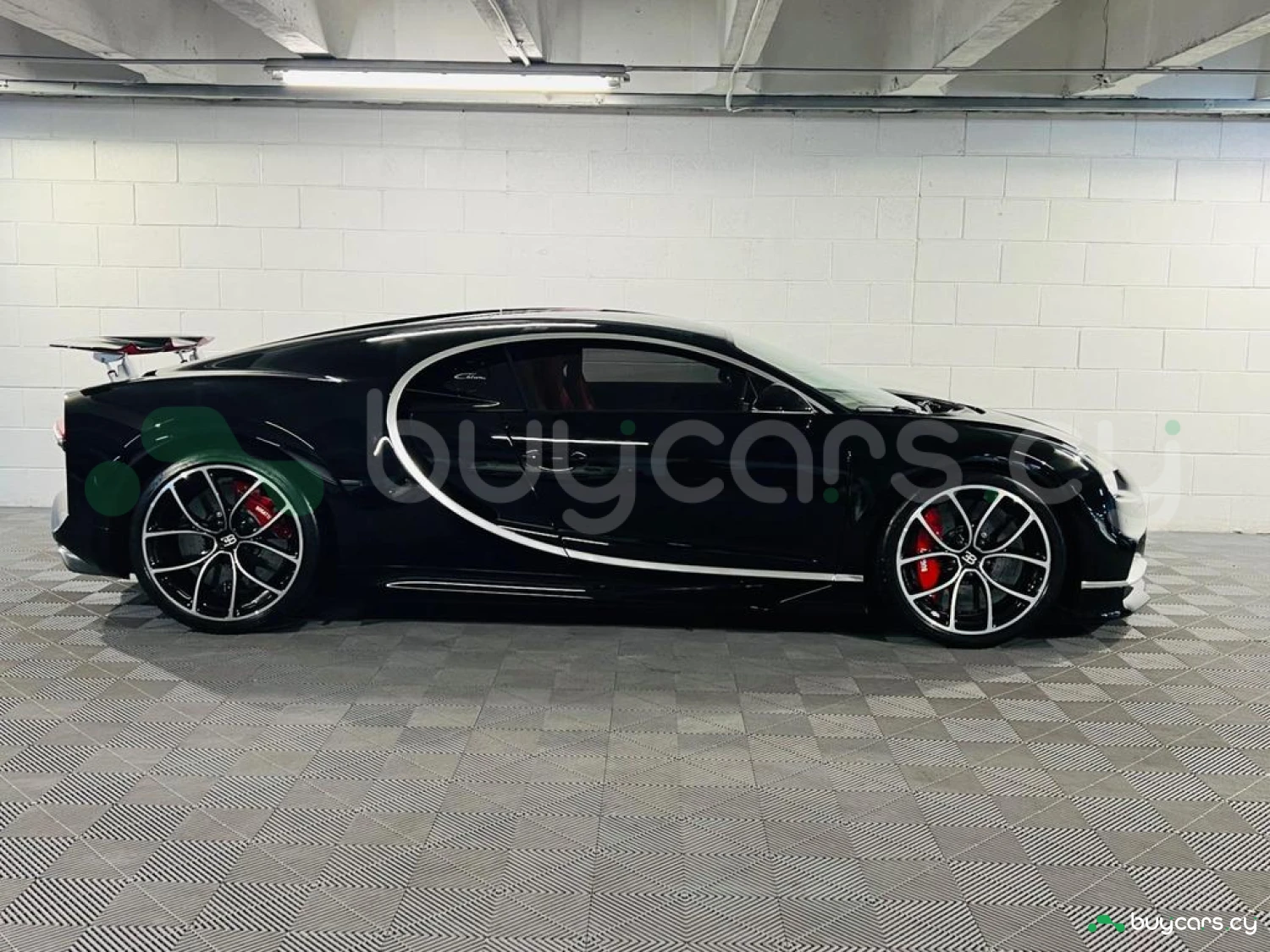 Performance & Handling: Iconic Bugatti engineering, powerful W16 engine (details not specified), diamond-cut alloy wheels, red brake calipers, two-tone rear wing.