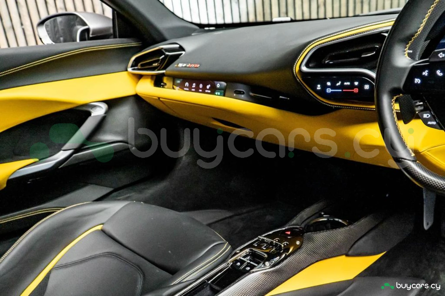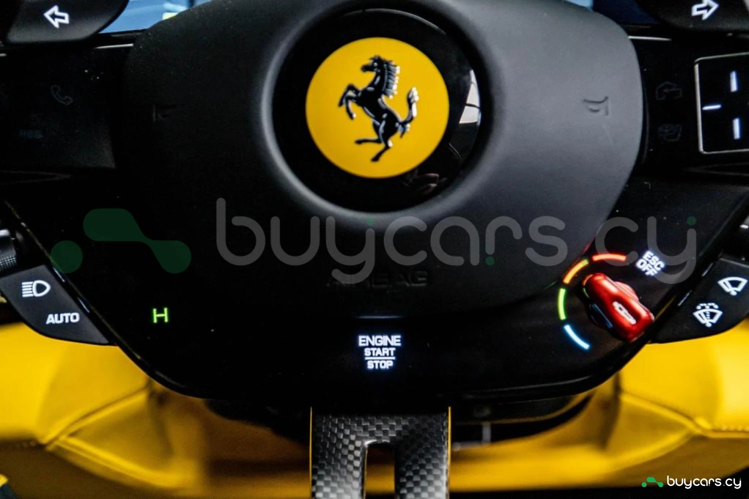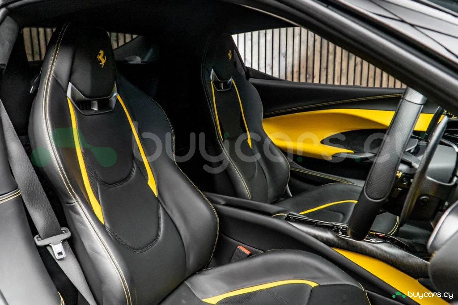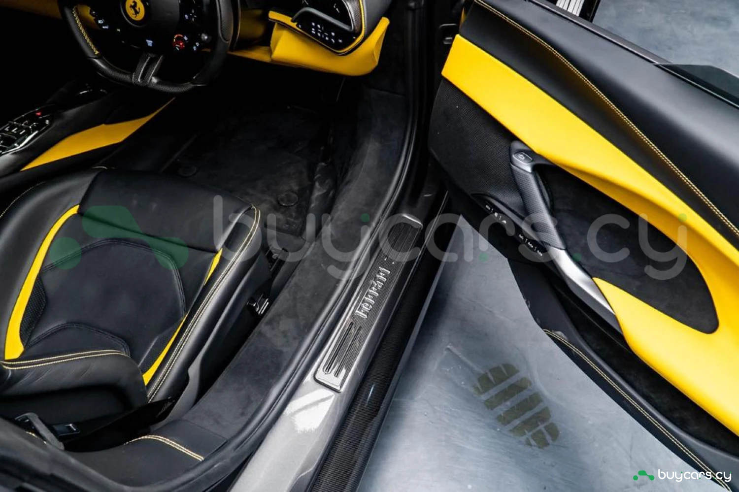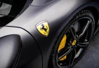Exterior & Wheels: Forged Wheels for lightweight durability, Carbon Fibre Engine Cover, Carbon Fibre Filter Box Cover, Carbon Fibre Underdoor Cover, Front Bumper Insert in Carbon Fibre, Rear Diffuser in Carbon Fibre, Titanium Wheel Bolts, Yellow Brake Calipers, Scuderia Ferrari Shields on Fenders, Full Satin PPF for ultimate paint protection.