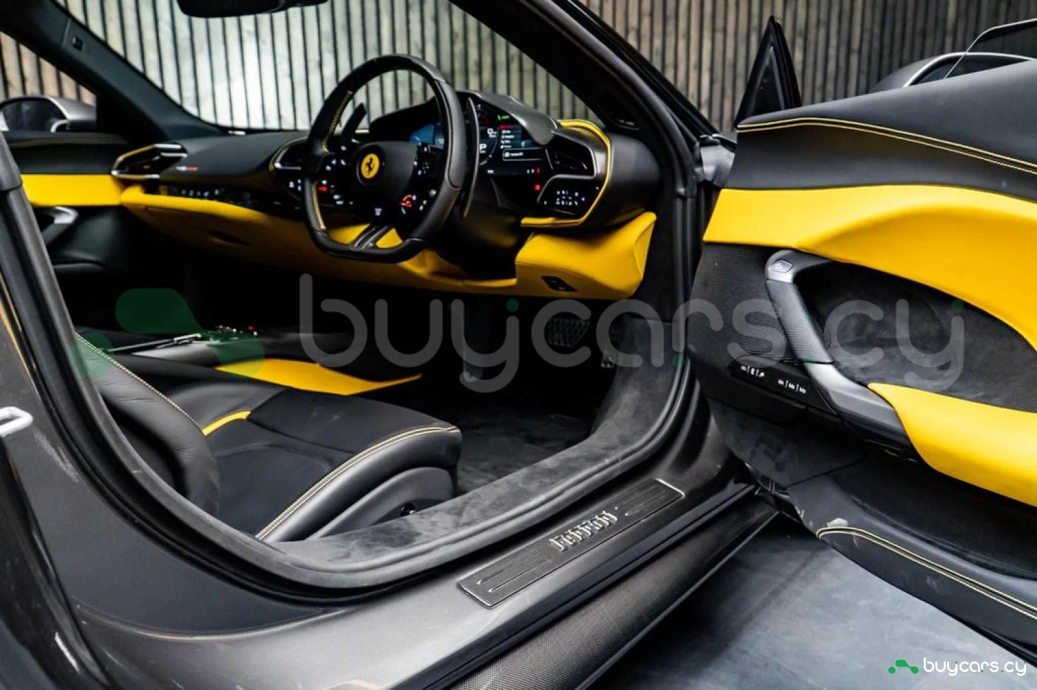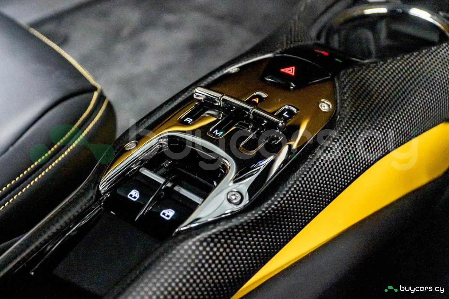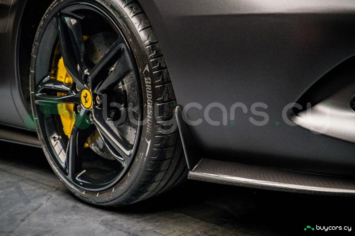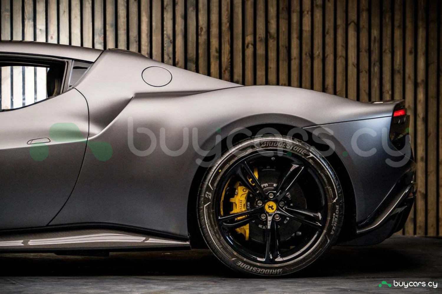 Exterior & Wheels: Forged Wheels for lightweight durability, Carbon Fibre Engine Cover, Carbon Fibre Filter Box Cover, Carbon Fibre Underdoor Cover, Front Bumper Insert in Carbon Fibre, Rear Diffuser in Carbon Fibre, Titanium Wheel Bolts, Yellow Brake Calipers, Scuderia Ferrari Shields on Fenders, Full Satin PPF for ultimate paint protection.