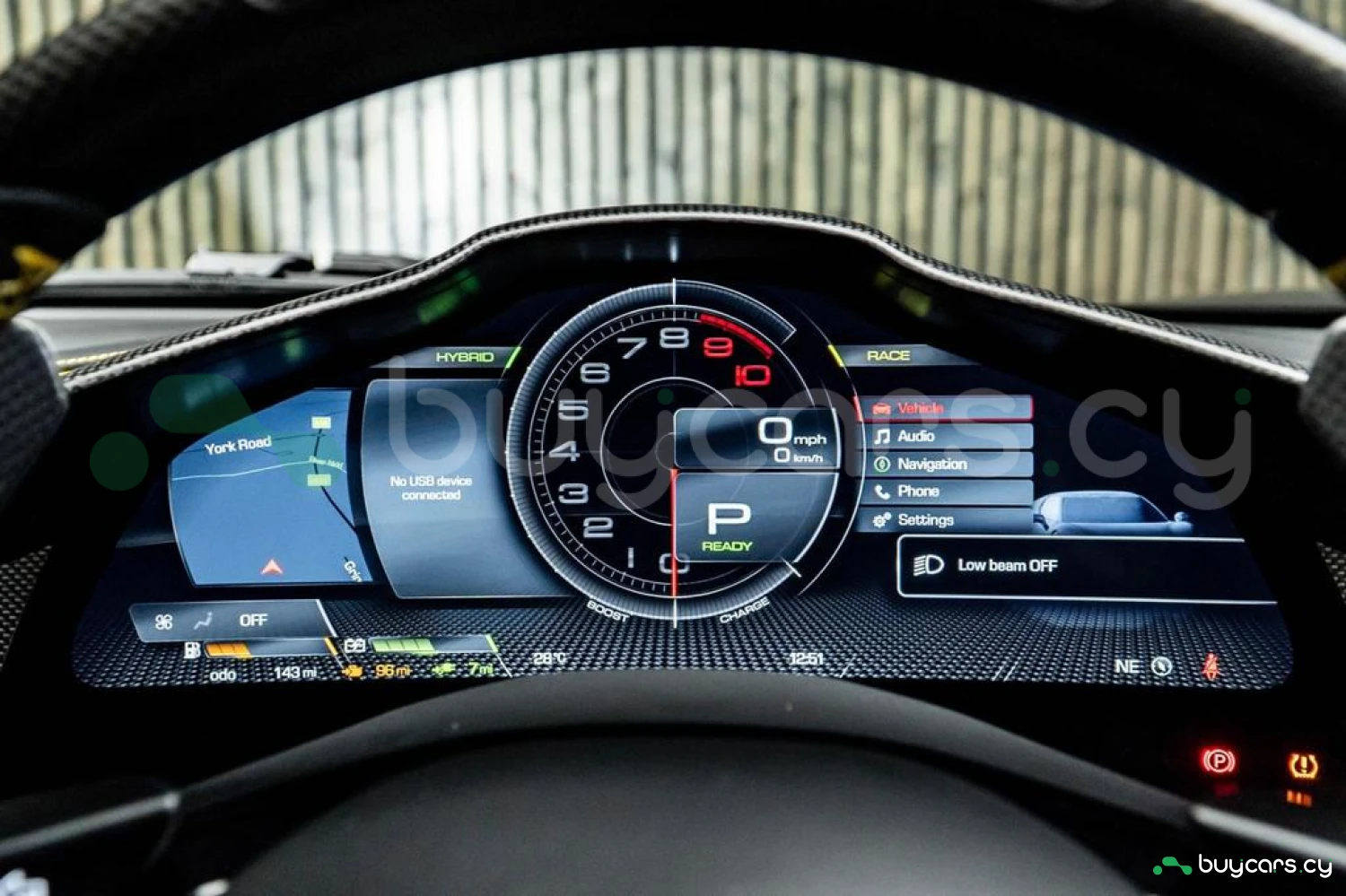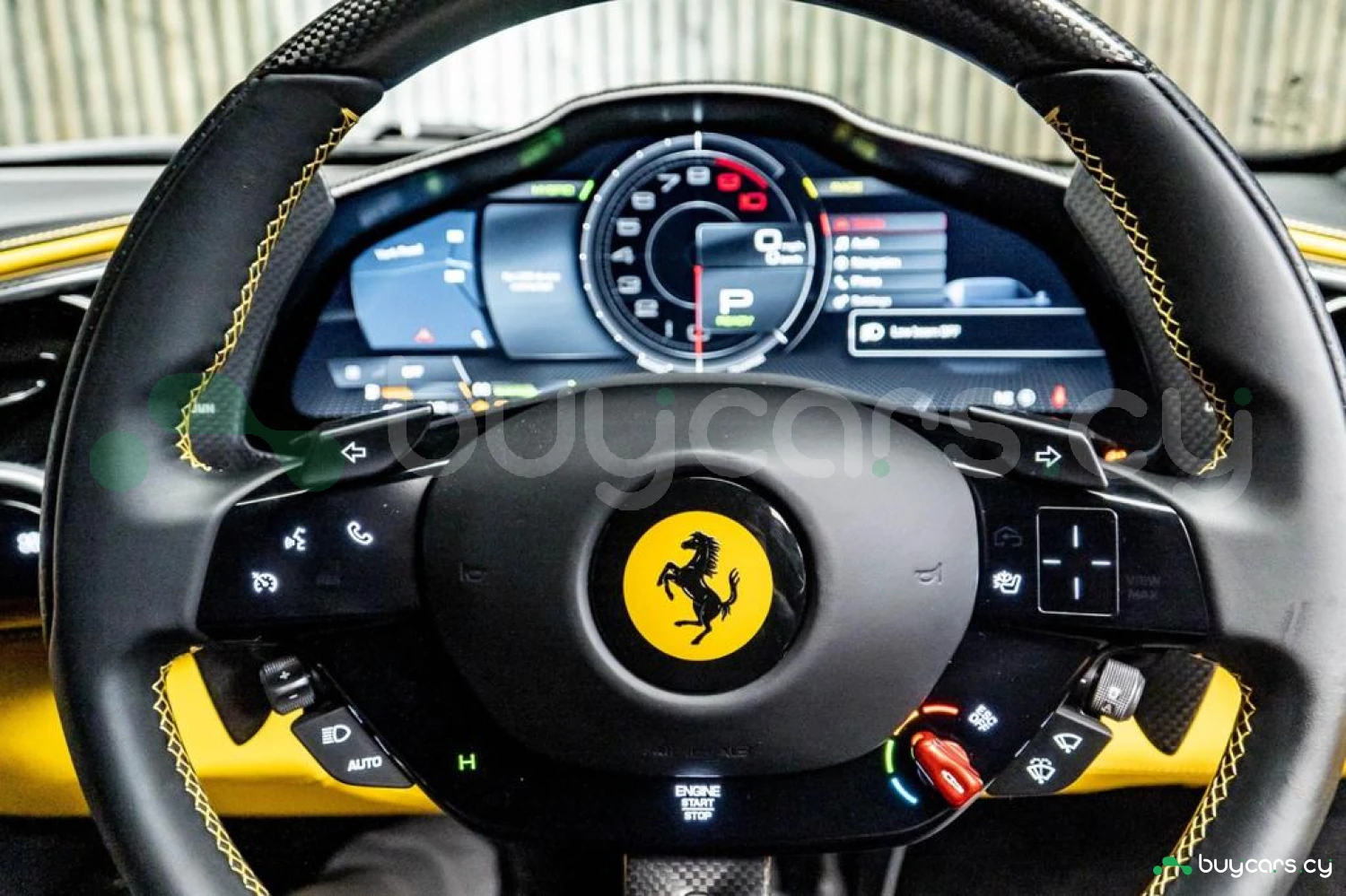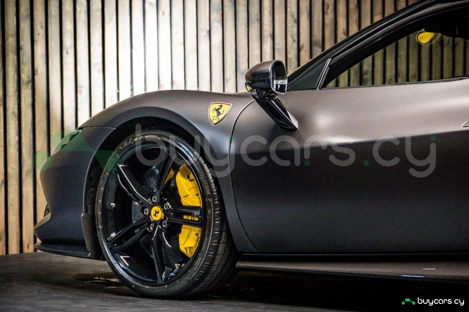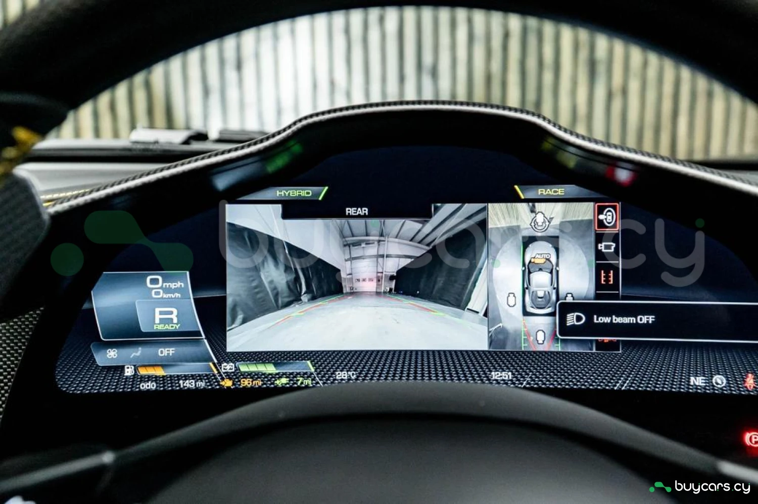 Exterior & Wheels: Forged Wheels for lightweight durability, Carbon Fibre Engine Cover, Carbon Fibre Filter Box Cover, Carbon Fibre Underdoor Cover, Front Bumper Insert in Carbon Fibre, Rear Diffuser in Carbon Fibre, Titanium Wheel Bolts, Yellow Brake Calipers, Scuderia Ferrari Shields on Fenders, Full Satin PPF for ultimate paint protection.
