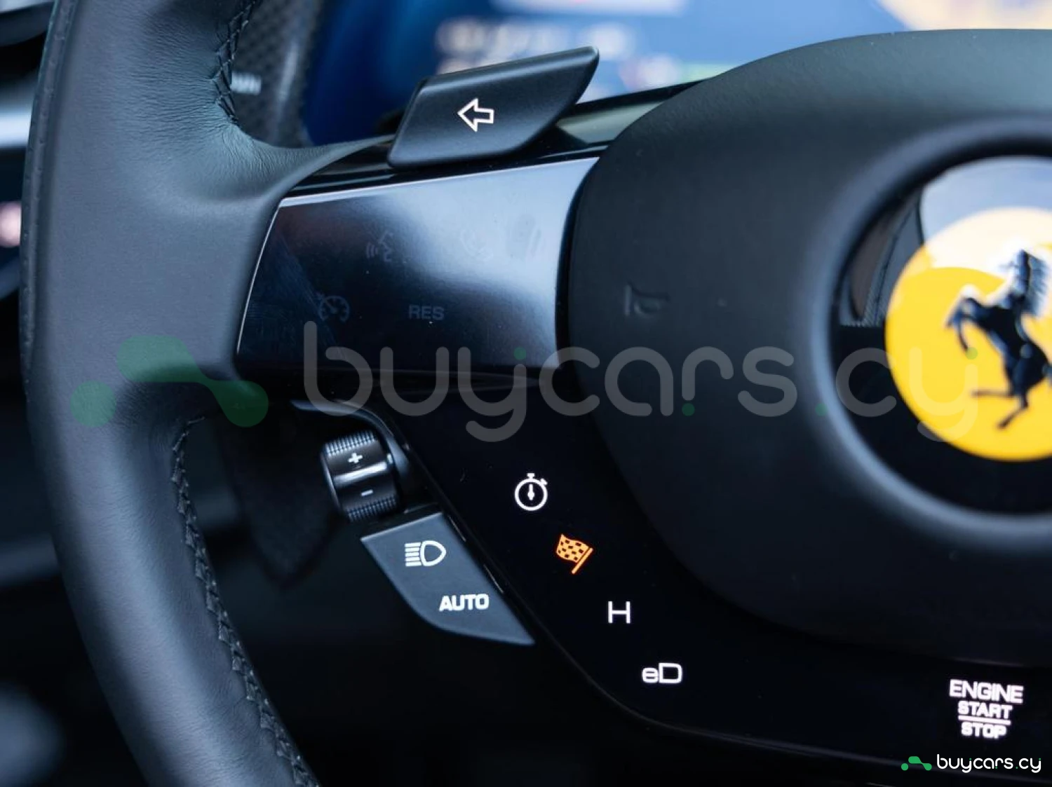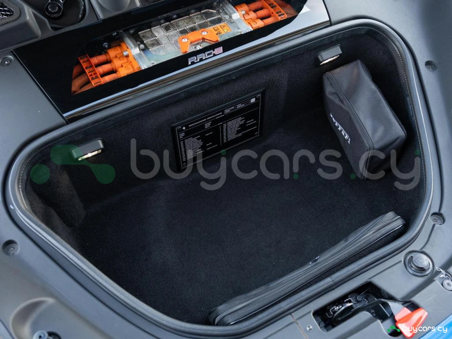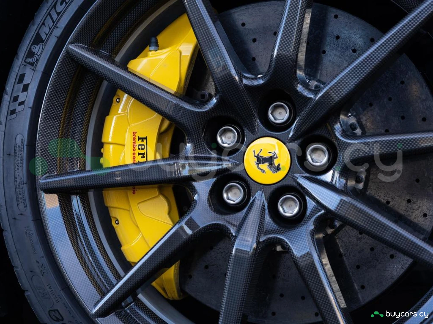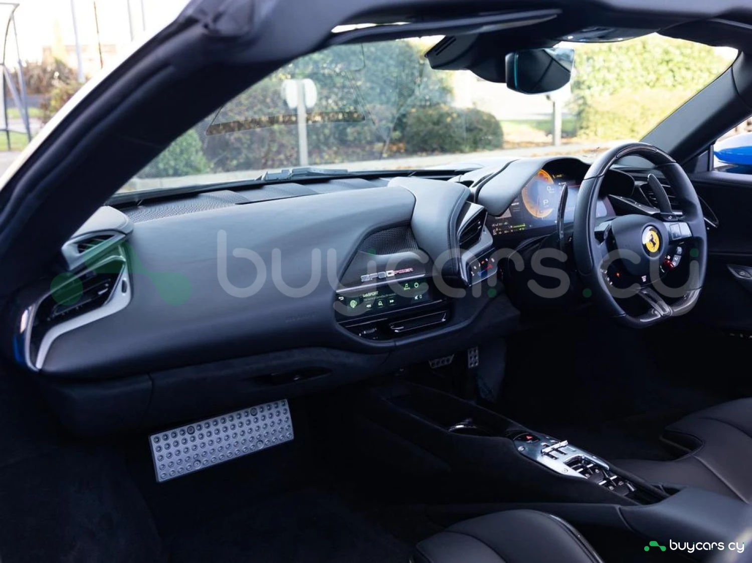 Interior & Comfort: XL Carbon Fibre Racing Seats with Lifter, Cavallino Stitched on Headrests in Giallo (Yellow), Carbon Fibre Driver Zone + LEDs, Carbon Fibre Dash Inserts, Carbon Fibre Door Sills, Black Leather Interior, Dual-Zone Climate Control, Engine Start Button on Steering Wheel, Keyless Start.