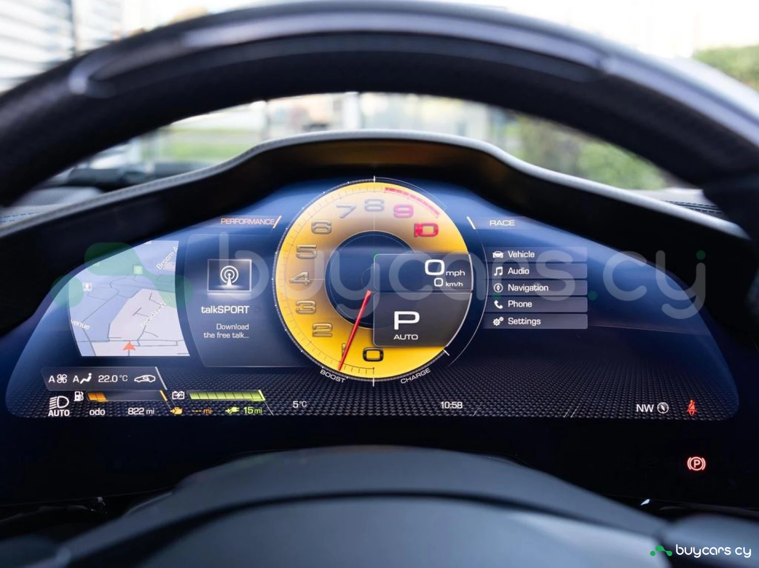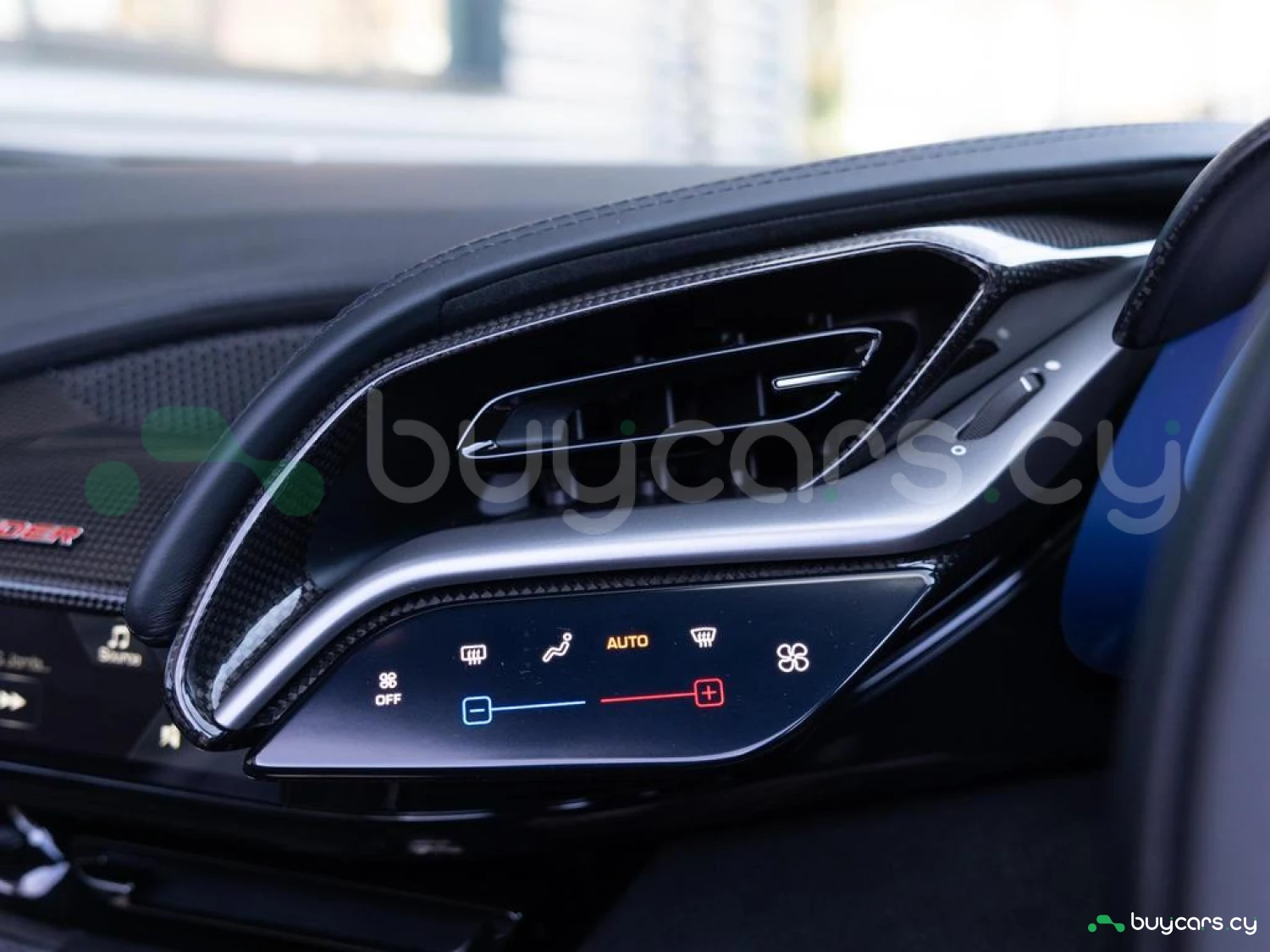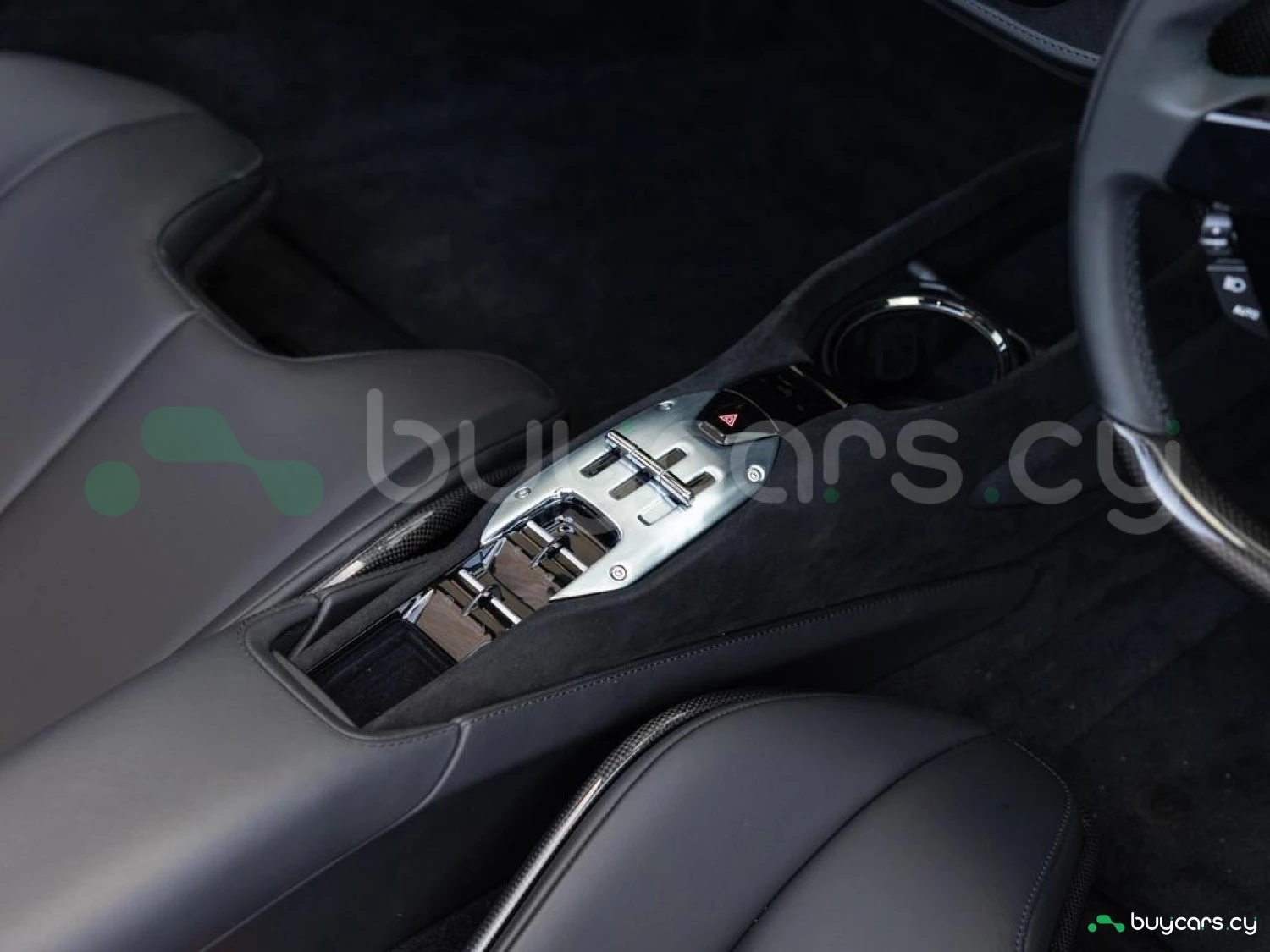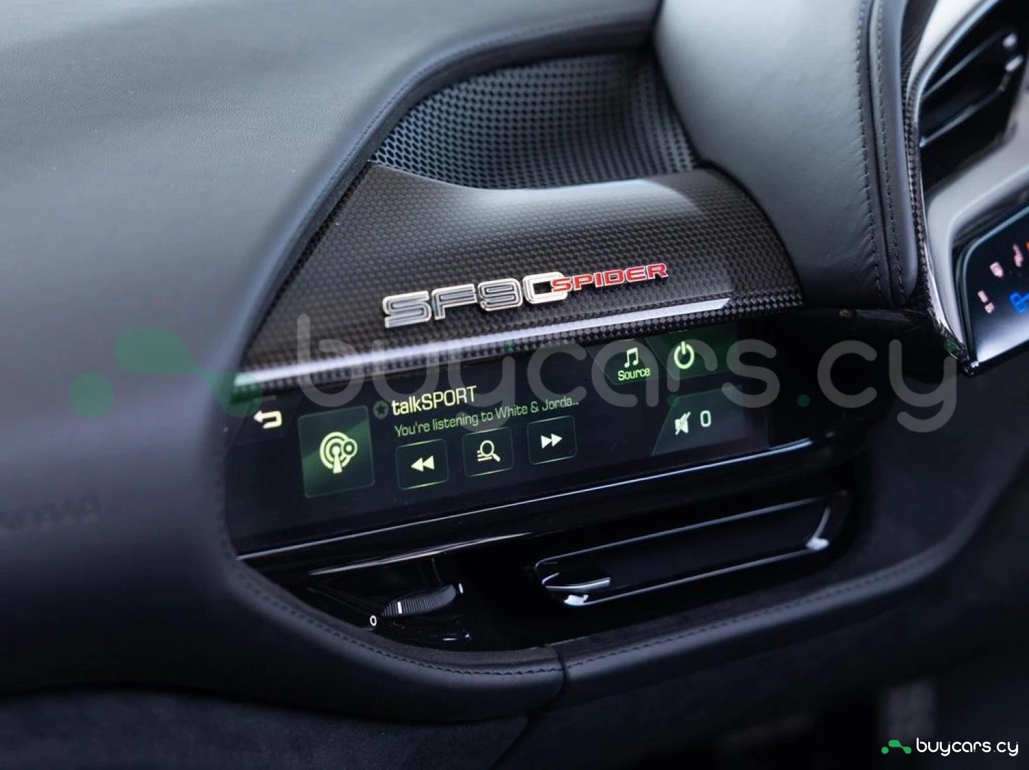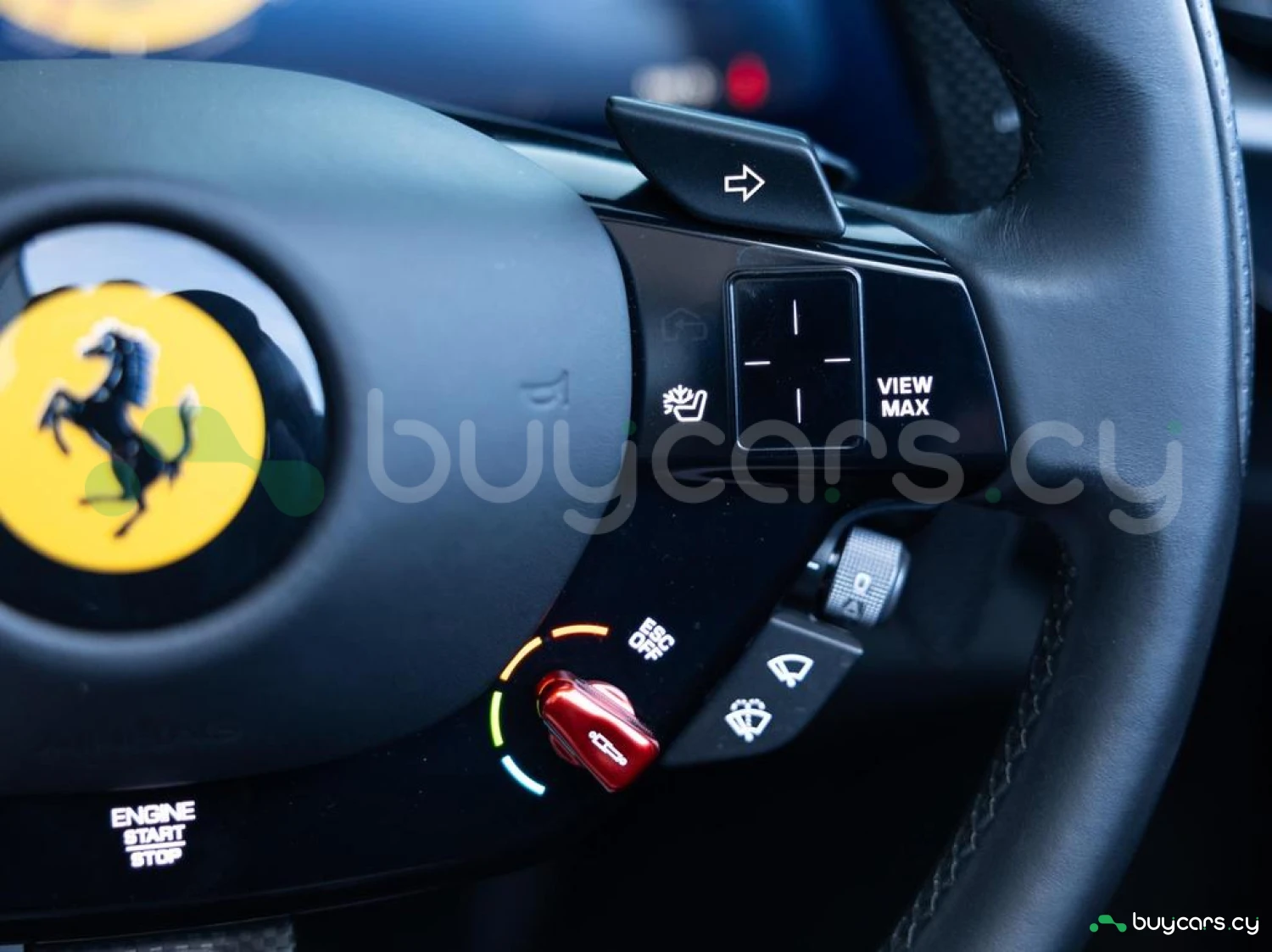 Interior & Comfort: XL Carbon Fibre Racing Seats with Lifter, Cavallino Stitched on Headrests in Giallo (Yellow), Carbon Fibre Driver Zone + LEDs, Carbon Fibre Dash Inserts, Carbon Fibre Door Sills, Black Leather Interior, Dual-Zone Climate Control, Engine Start Button on Steering Wheel, Keyless Start.