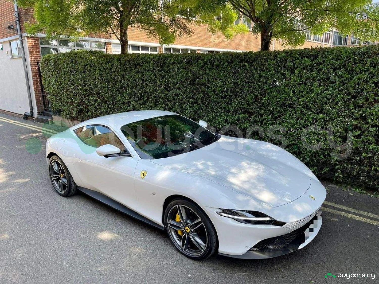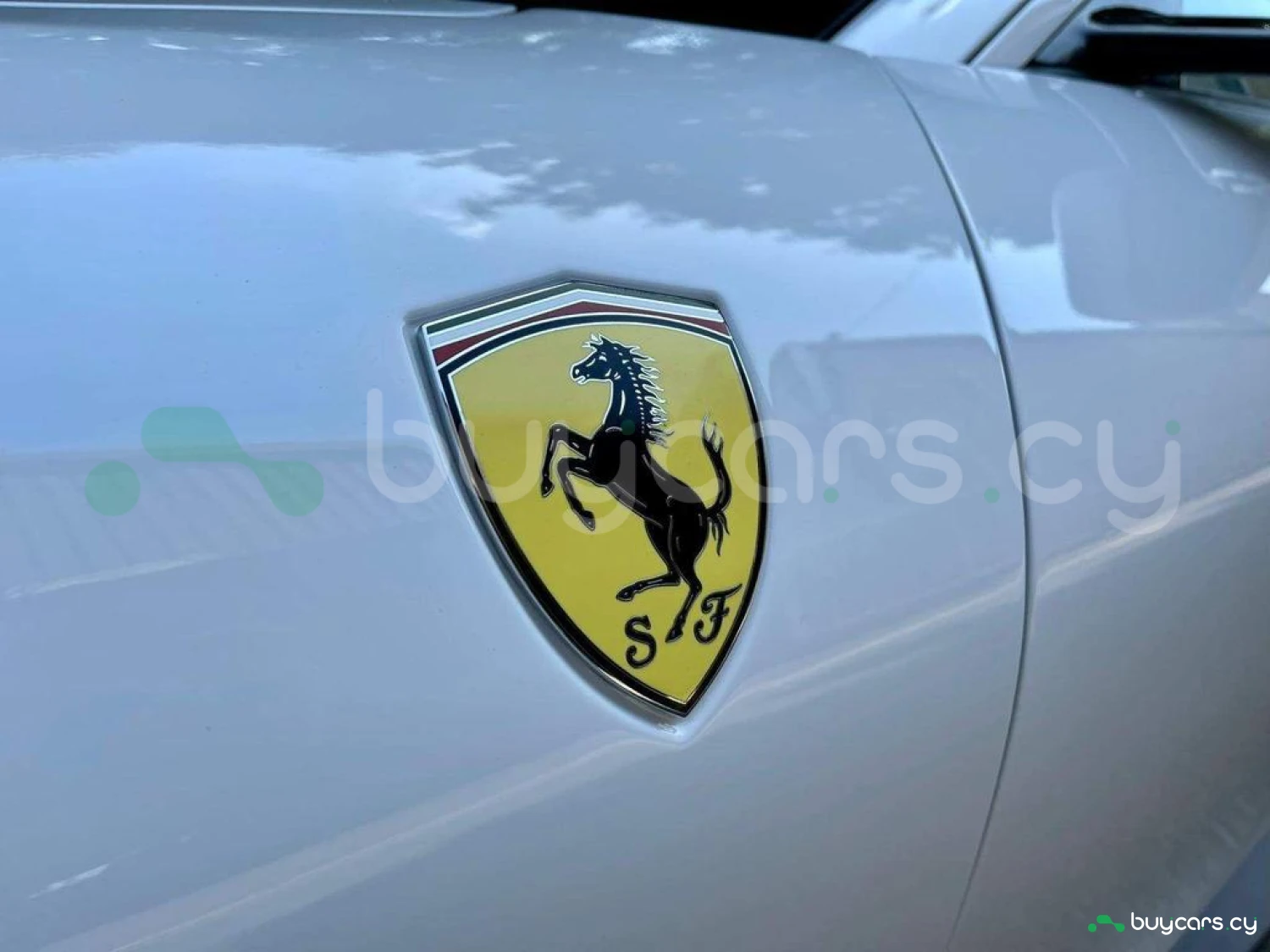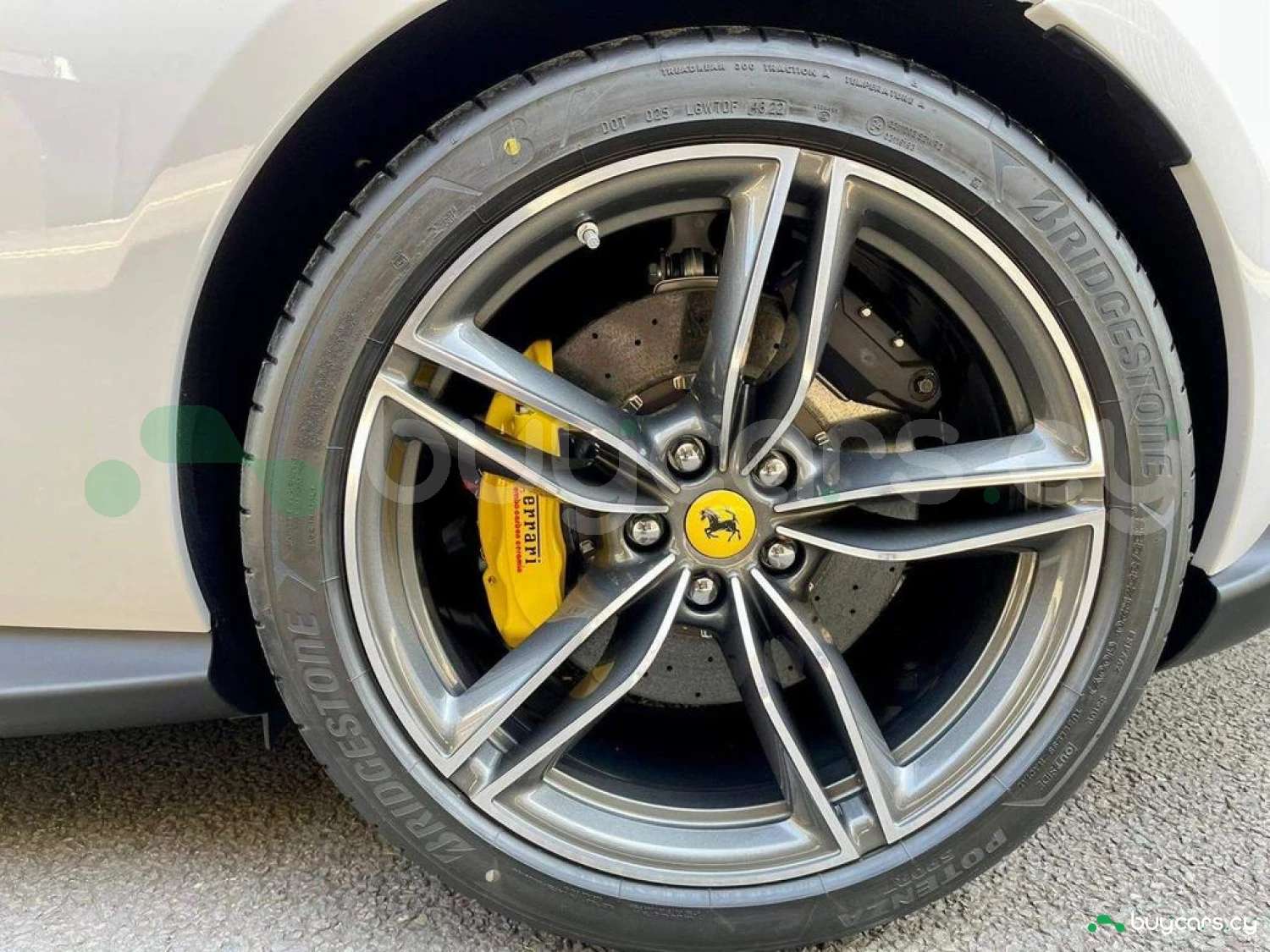 Exterior & Wheels: Bianco Cervino Pearlescent Paint, 20-inch Forged Diamond Alloy Wheels, Black Ceramic Exhaust Pipes, Giallo Modena Brake Calipers, Scuderia Ferrari Shields on Fenders, Active Matrix LED Headlights, Full LED Headlights, Electrochromic Heated Side Mirrors with Automatic Closure, Exterior Sill Kick in Carbon Fibre, Pirelli Tyres, Car Protection Cover.