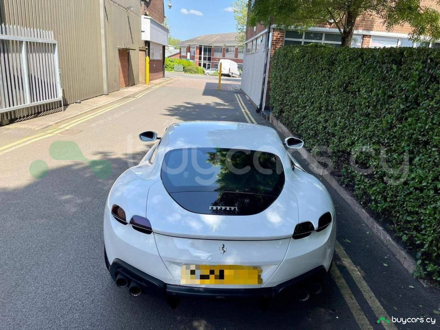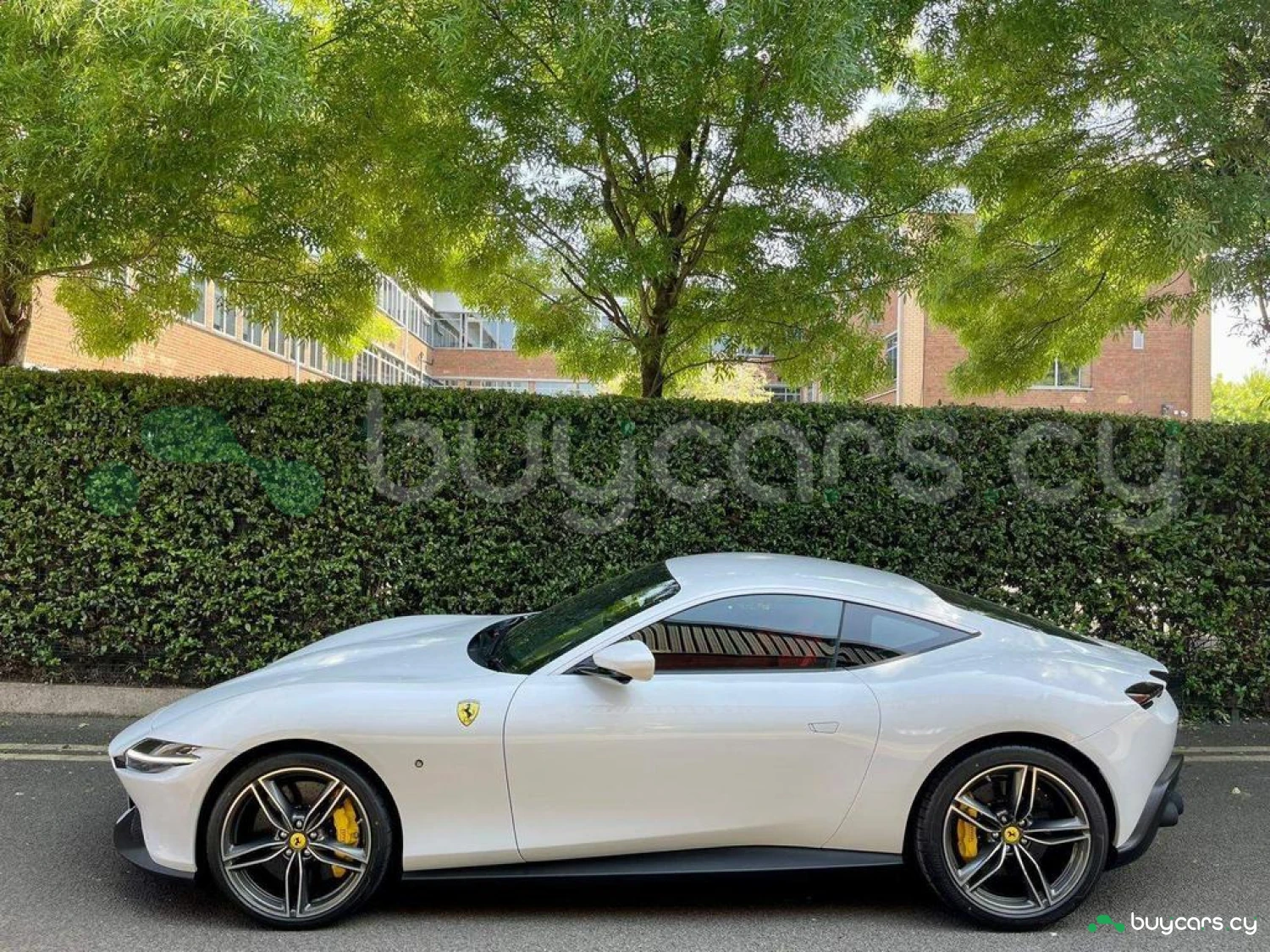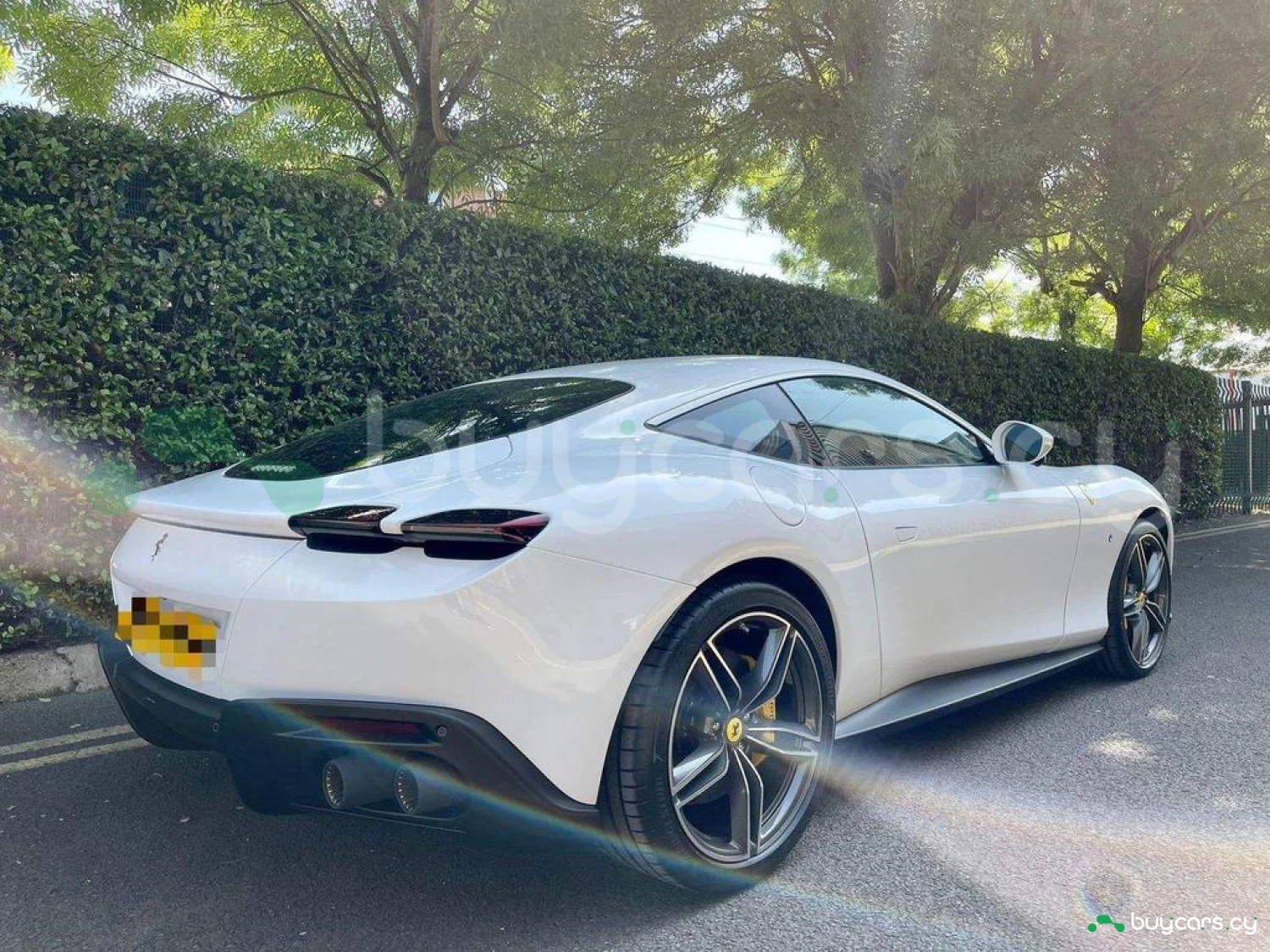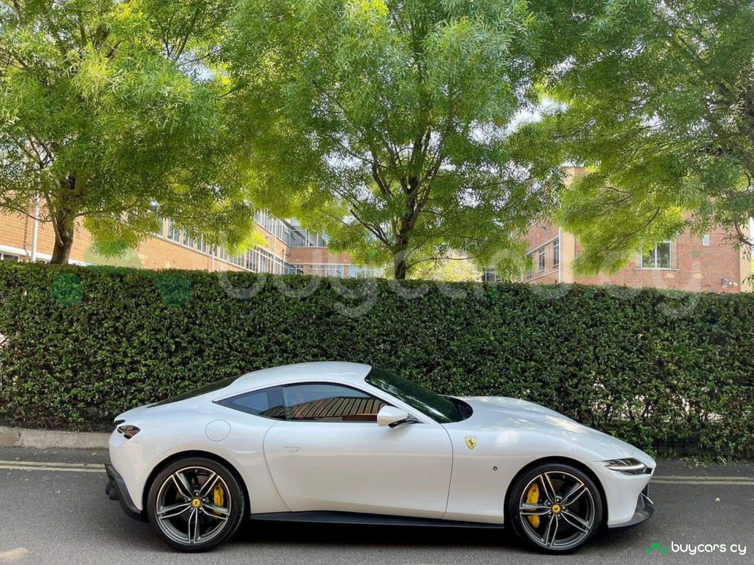 Exterior & Wheels: Bianco Cervino Pearlescent Paint, 20-inch Forged Diamond Alloy Wheels, Black Ceramic Exhaust Pipes, Giallo Modena Brake Calipers, Scuderia Ferrari Shields on Fenders, Active Matrix LED Headlights, Full LED Headlights, Electrochromic Heated Side Mirrors with Automatic Closure, Exterior Sill Kick in Carbon Fibre, Pirelli Tyres, Car Protection Cover.