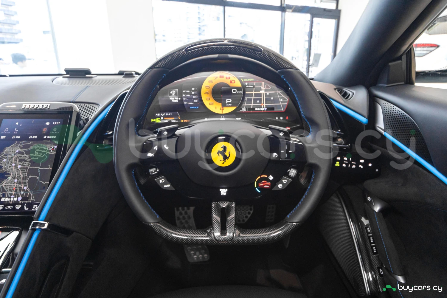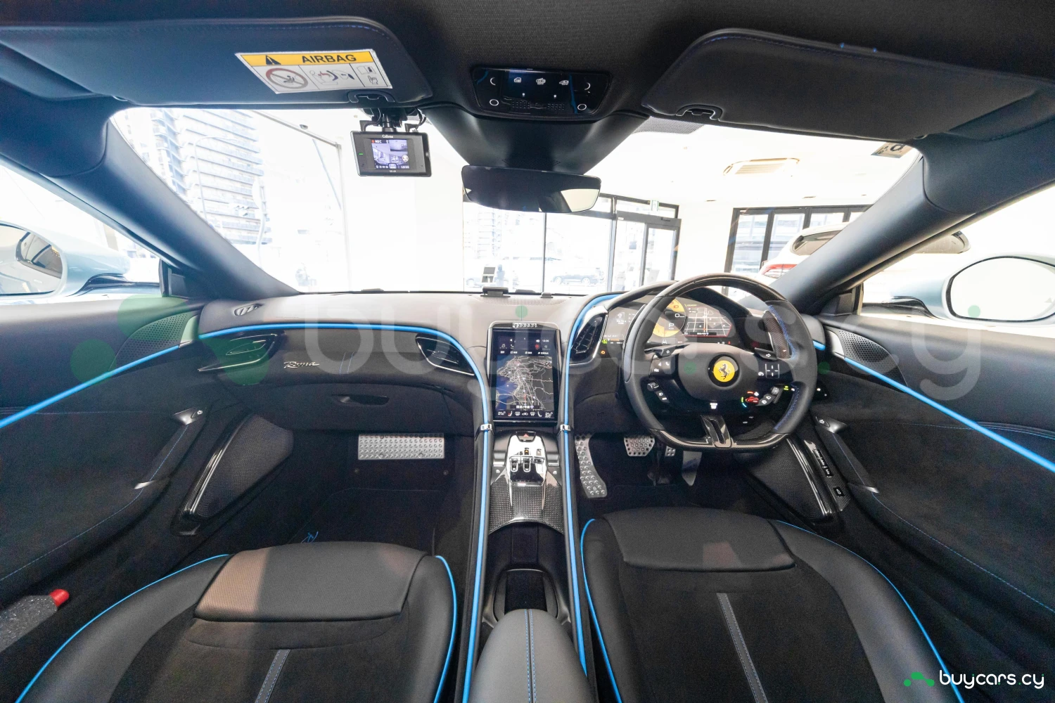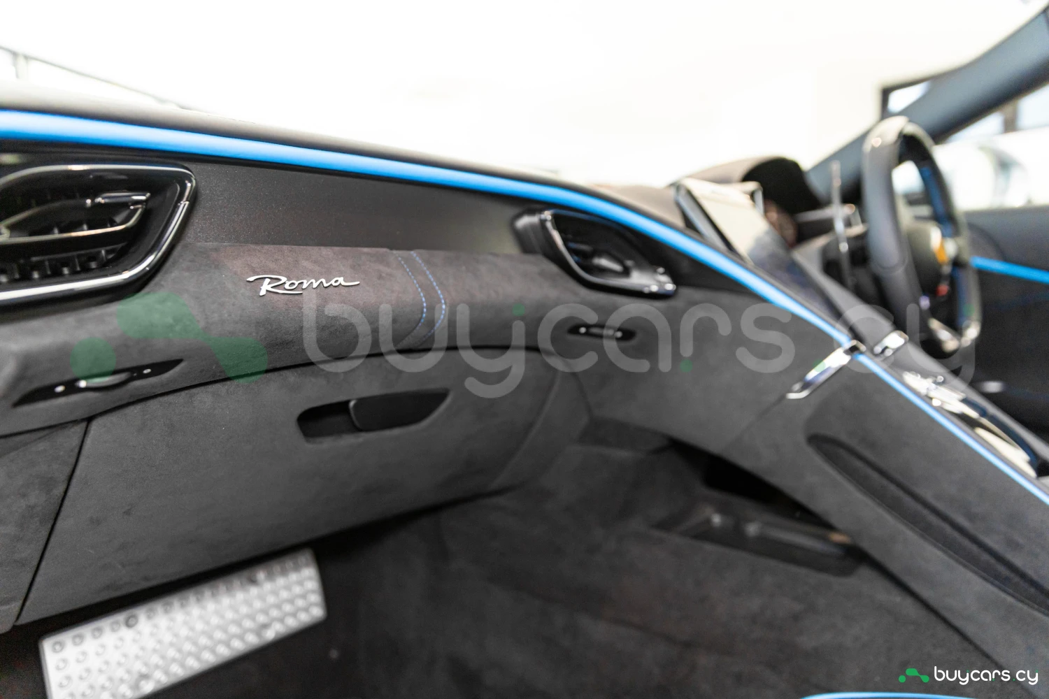 The Roma comes with a suite of driver aids, including adaptive cruise control, front and rear parking sensors, a reversing camera, and lane departure warning. These systems support everyday usability and safety while preserving the purity of the driving experience expected from a Ferrari.
