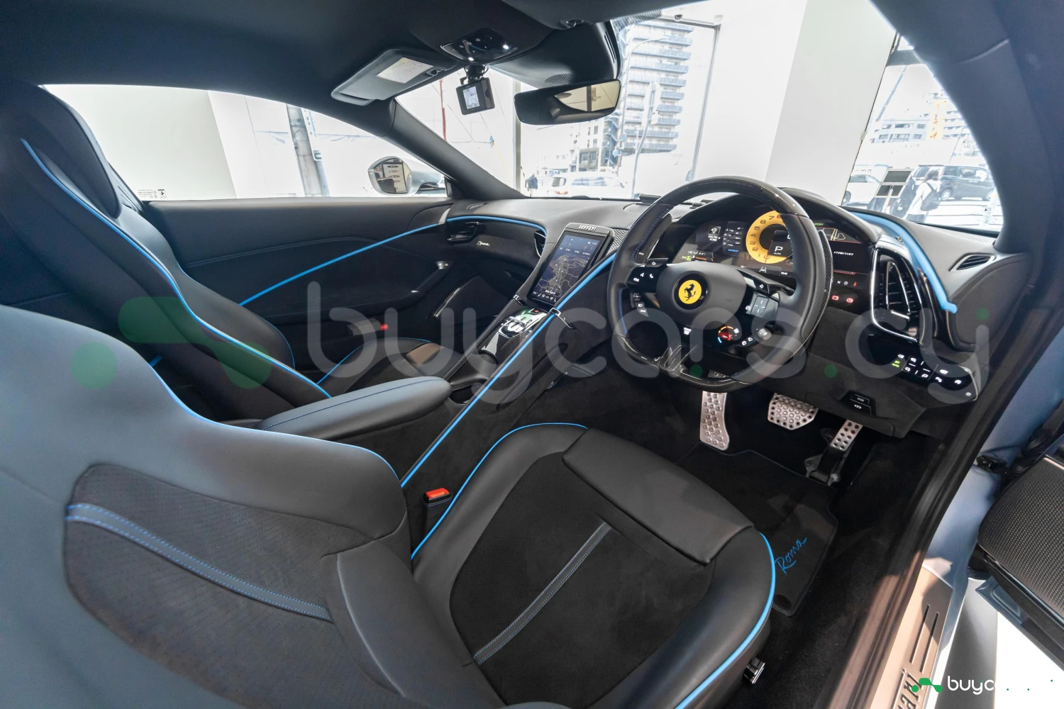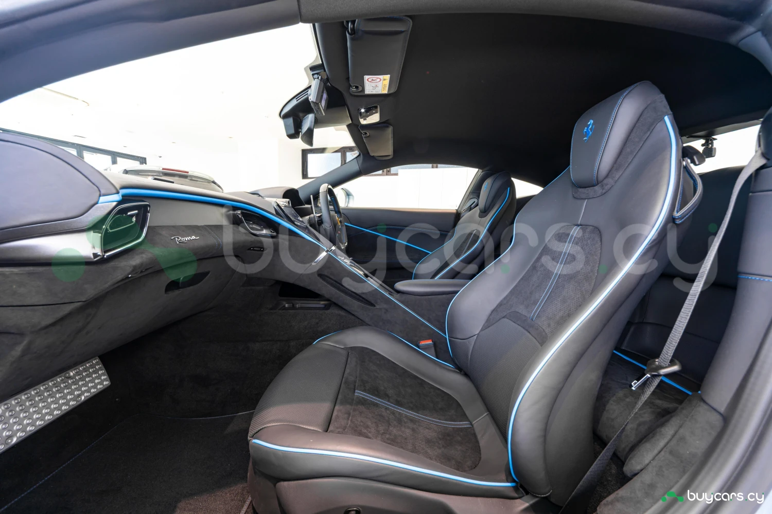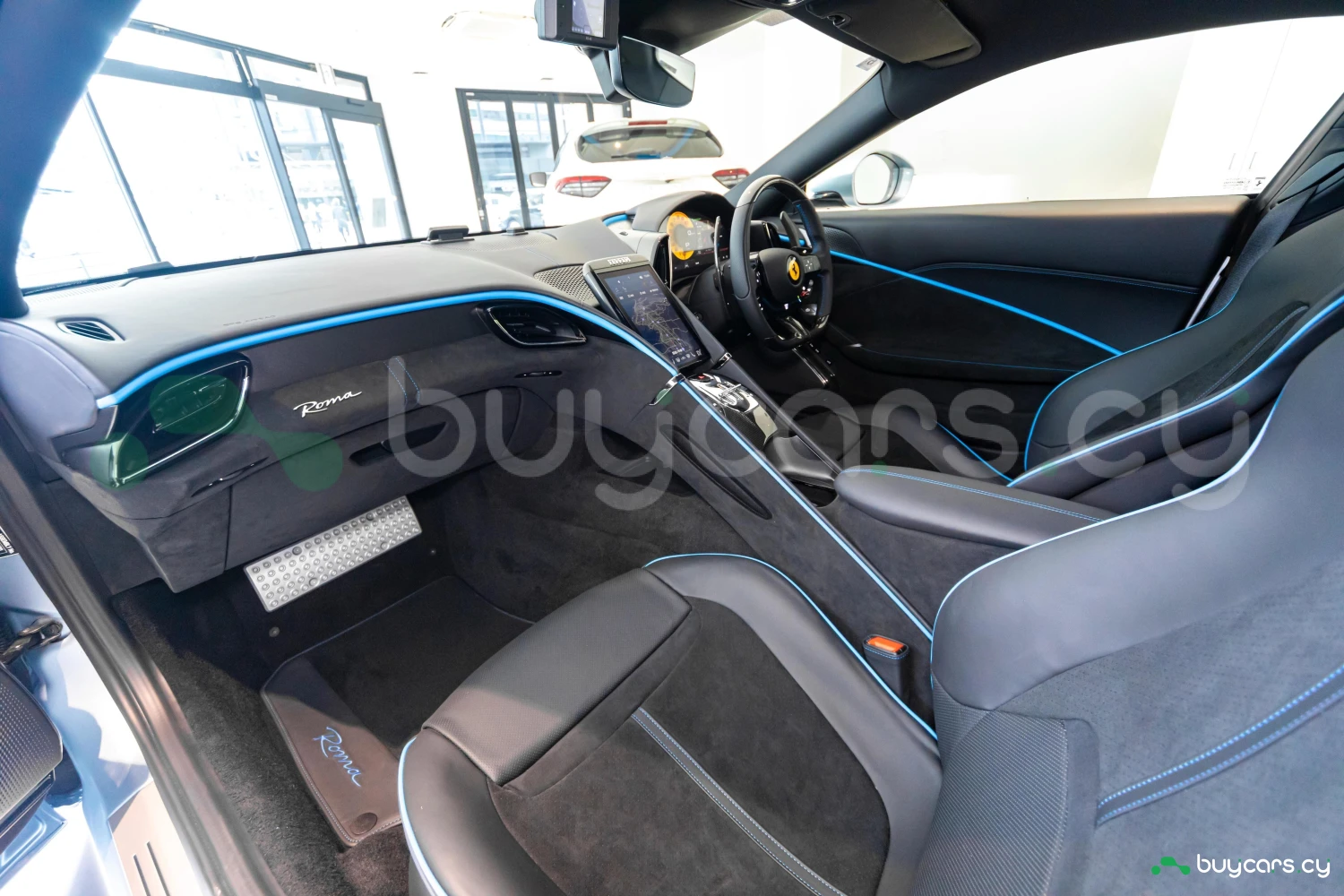 The Roma comes with a suite of driver aids, including adaptive cruise control, front and rear parking sensors, a reversing camera, and lane departure warning. These systems support everyday usability and safety while preserving the purity of the driving experience expected from a Ferrari.