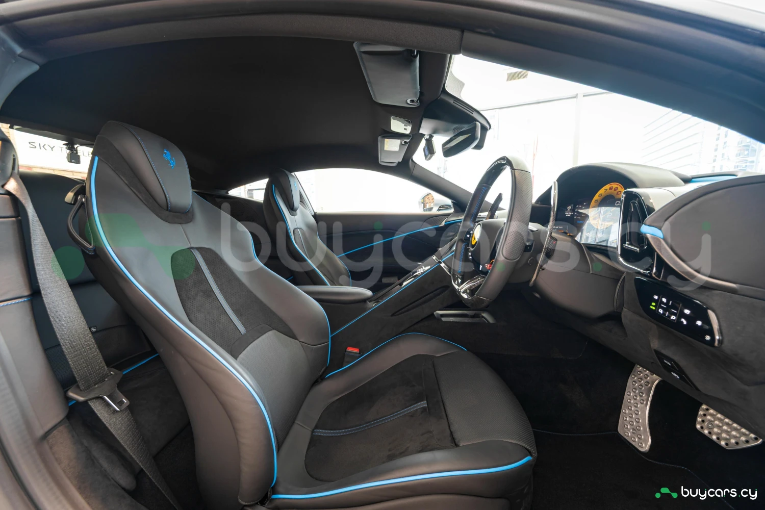 With its long, flowing proportions, flush door handles, and full-LED adaptive headlights, the Ferrari Roma captures attention without excessive aggression. The Grigio Alloy finish adds a sophisticated metallic sheen that enhances the sculpted bodywork. Active aerodynamics, including a deployable rear spoiler, help balance elegance with performance at speed.