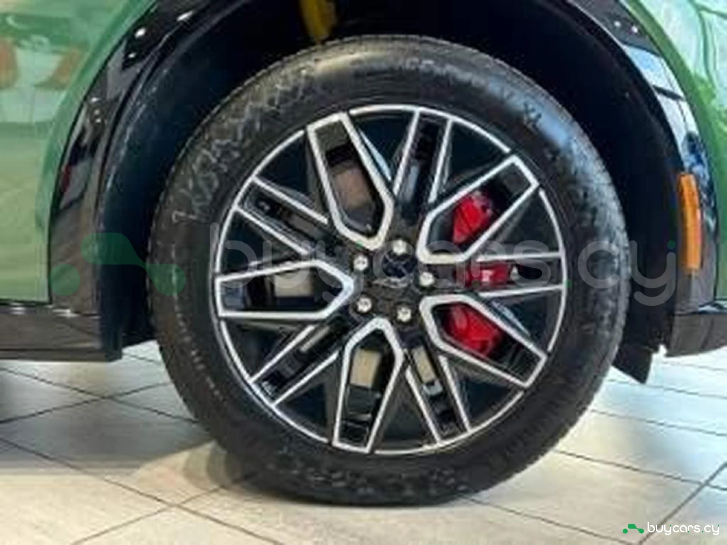 Exterior: Eruption Green metallic paint, 19" black machined alloy wheels, blade front grille design, adaptive LED Mustang signature headlamps, LED Mustang signature taillights, black power-fold heated mirrors with puddle light Mustang logo projection, rear privacy glass, red brake calipers, side cladding and wheel arches in piano black.
