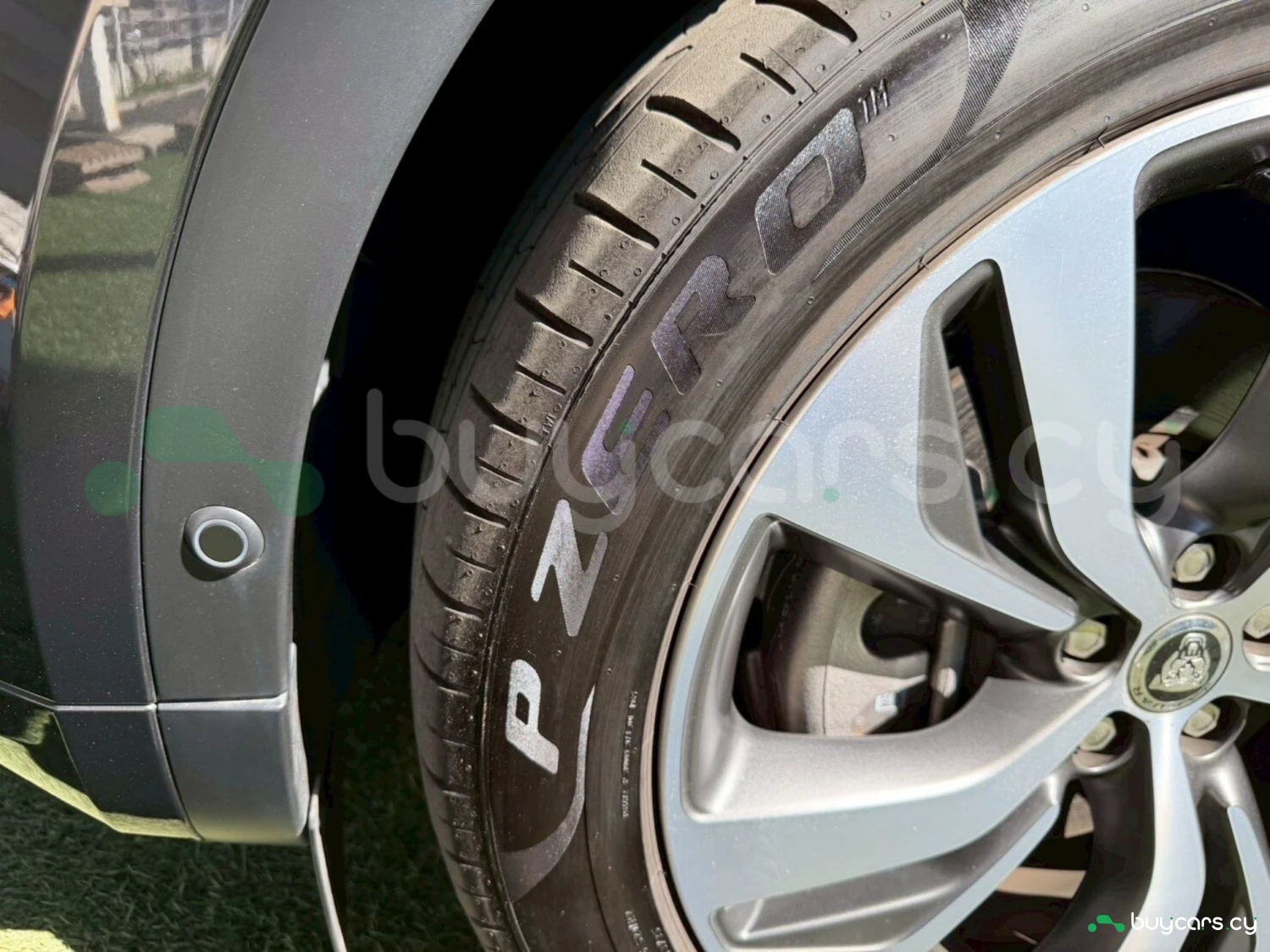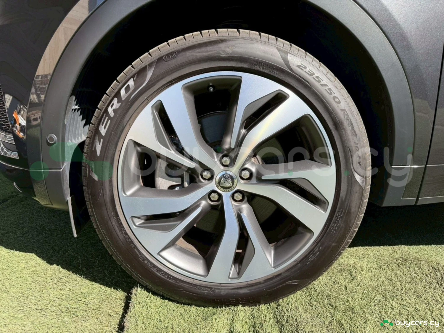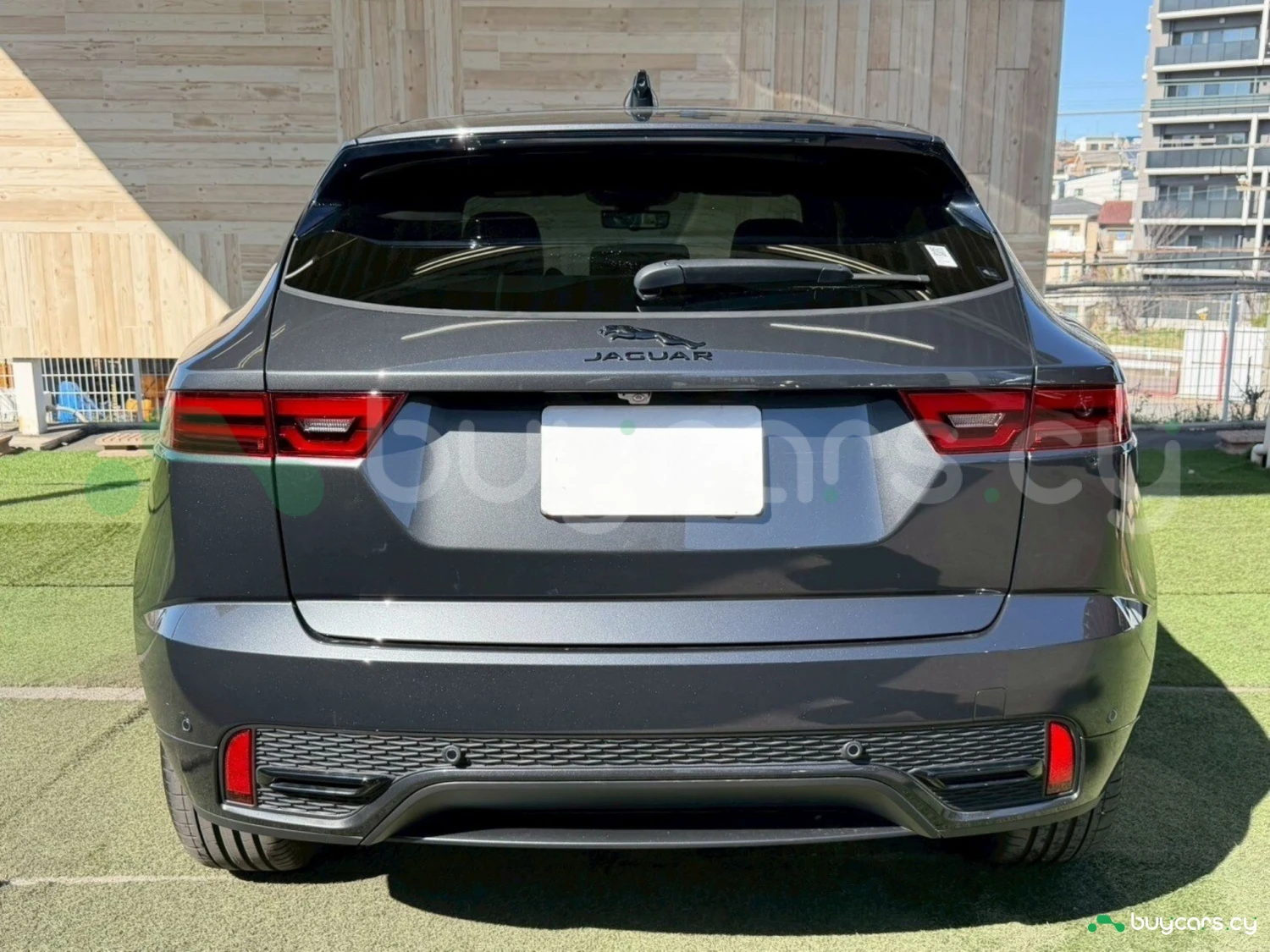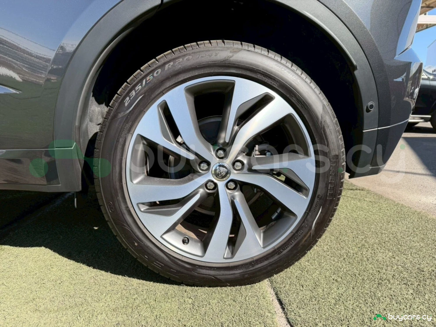 This Jaguar E-Pace in Cyprus is presented as an off-road SUV in Carpathian Grey Premium Metallic. The exterior keeps a clean and upright body profile.