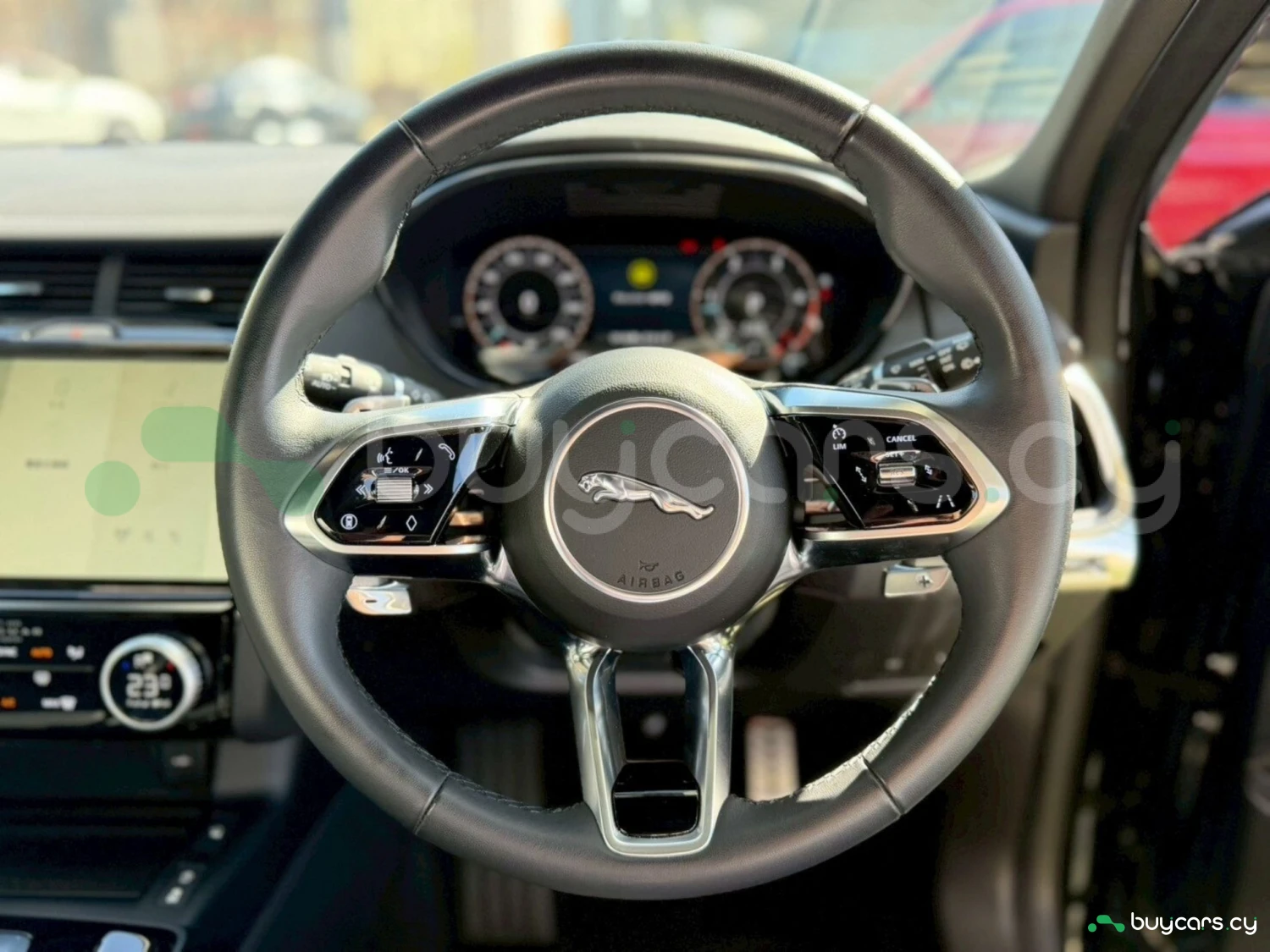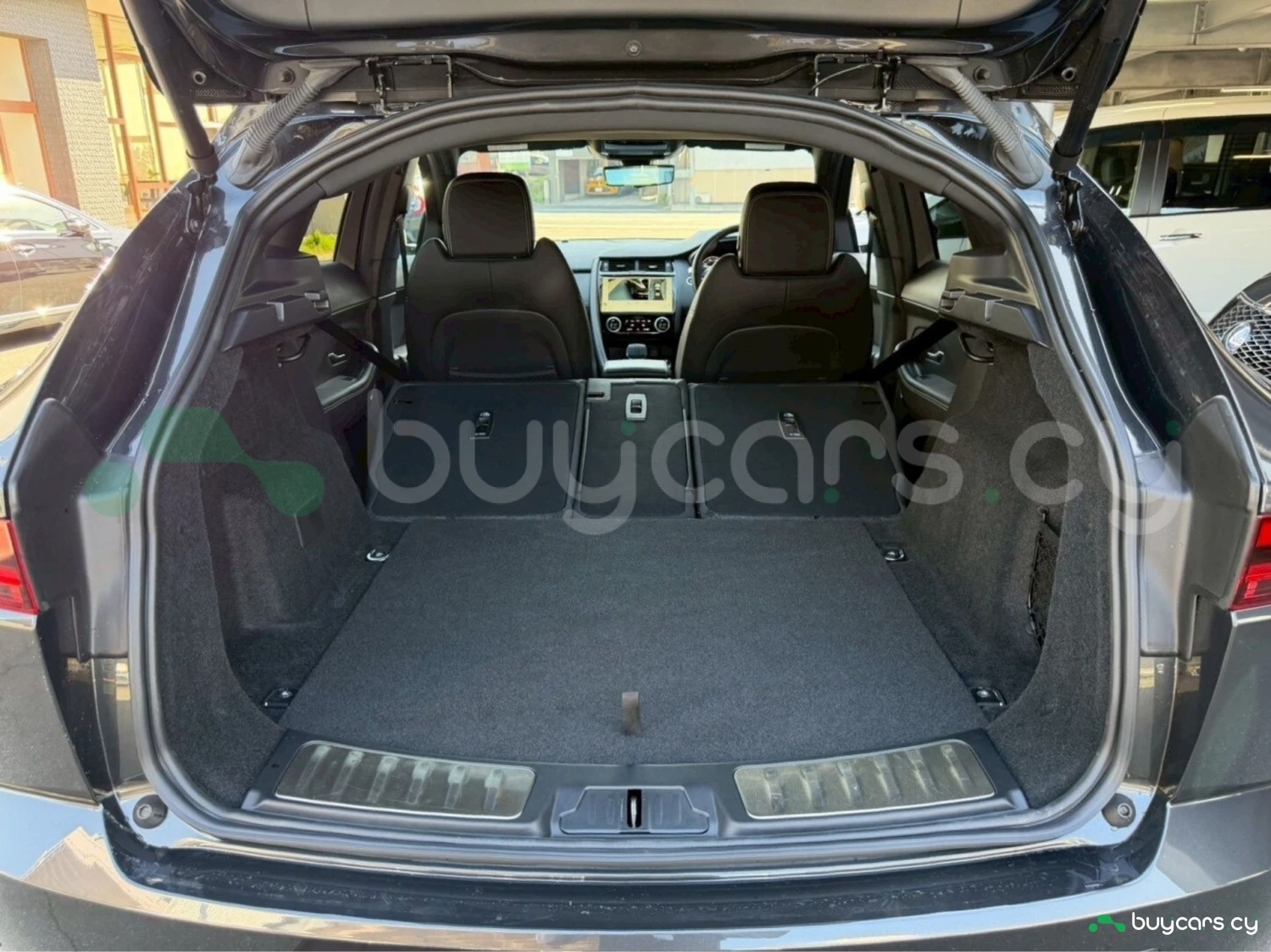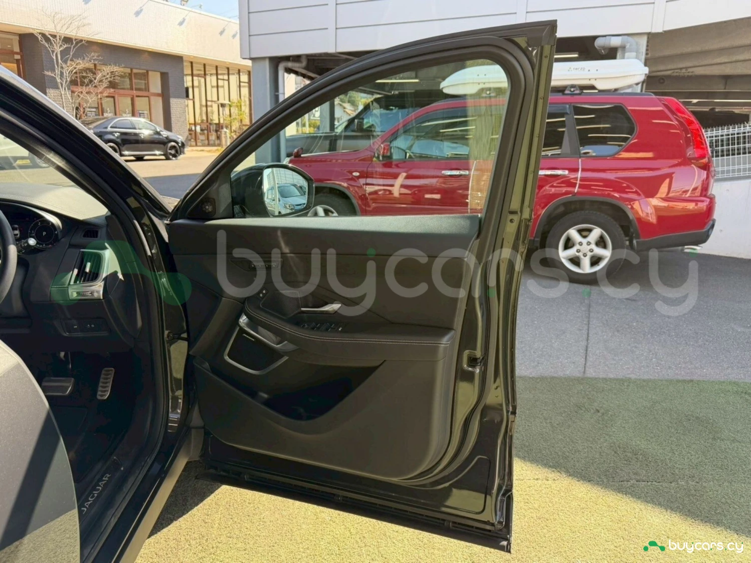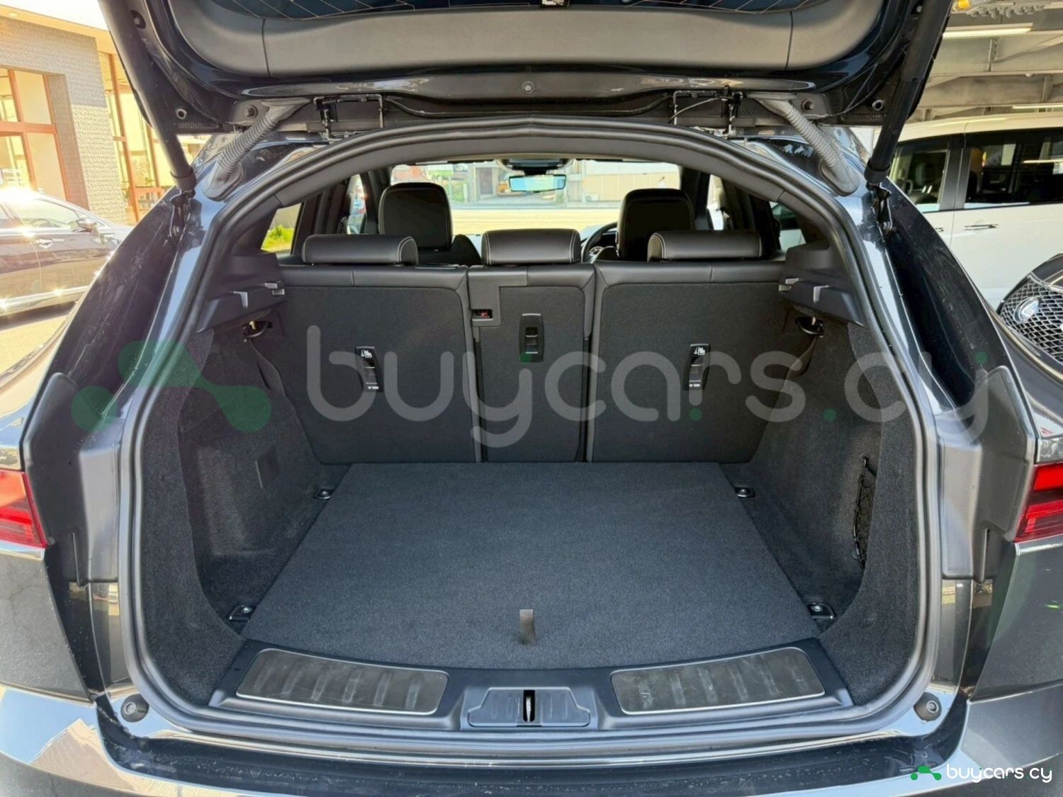 This Jaguar E-Pace in Cyprus is presented as an off-road SUV in Carpathian Grey Premium Metallic. The exterior keeps a clean and upright body profile.