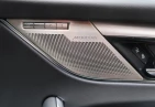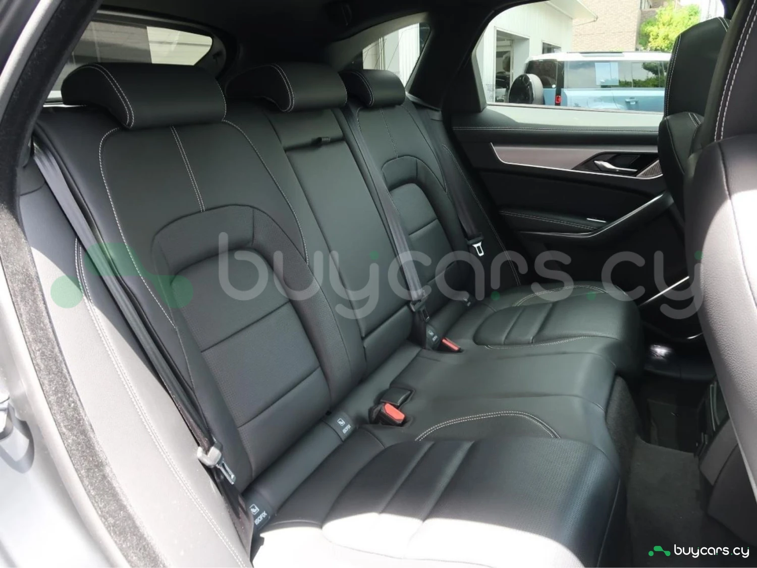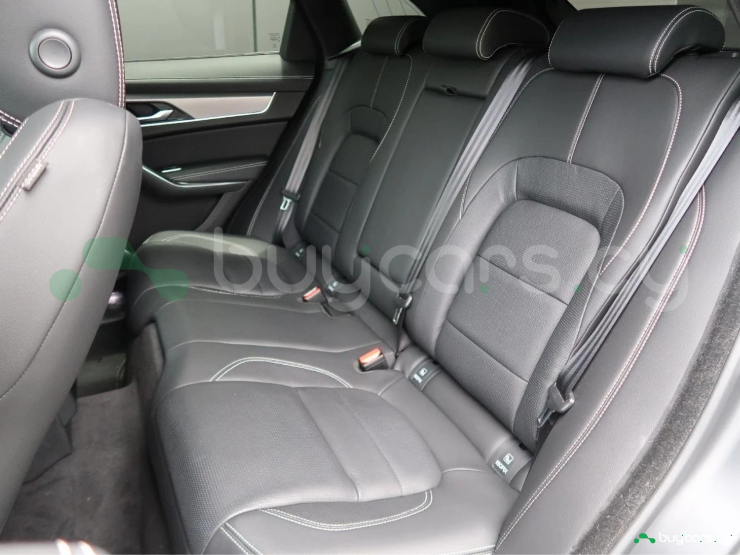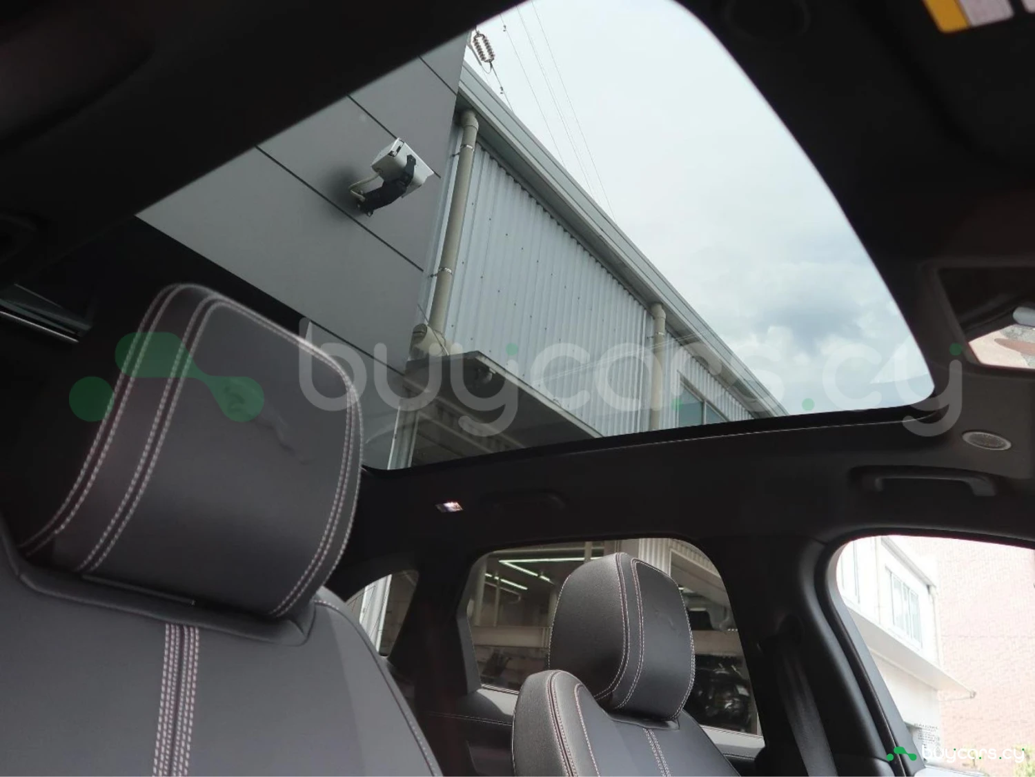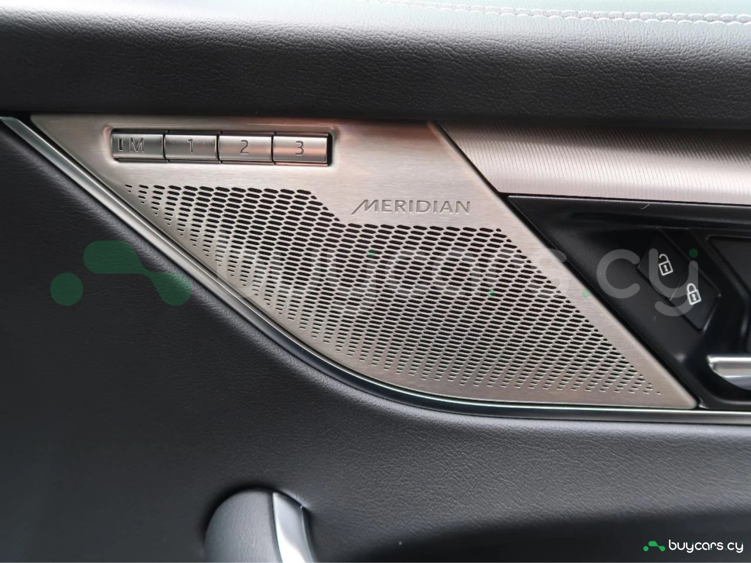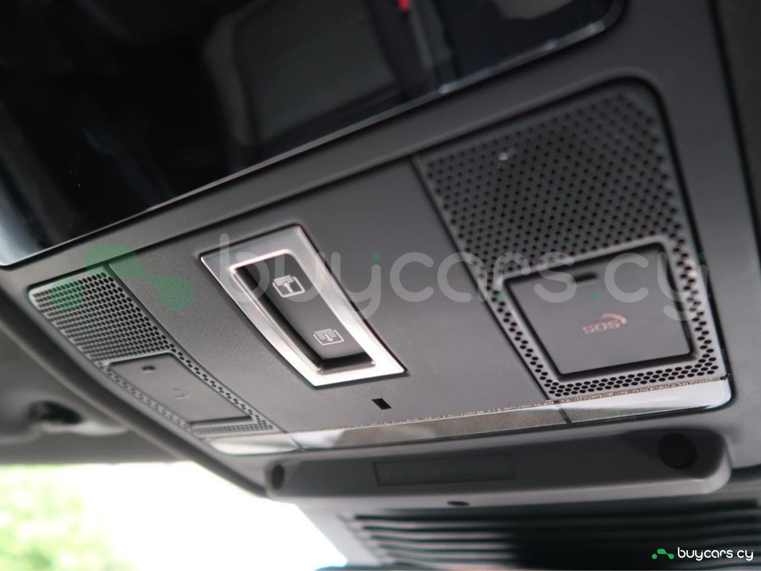 The cabin features high-quality leather upholstery with electric memory seats and heating function for enhanced comfort. The panoramic glass roof creates a spacious atmosphere, while the MERIDIAN sound system provides exceptional audio clarity.