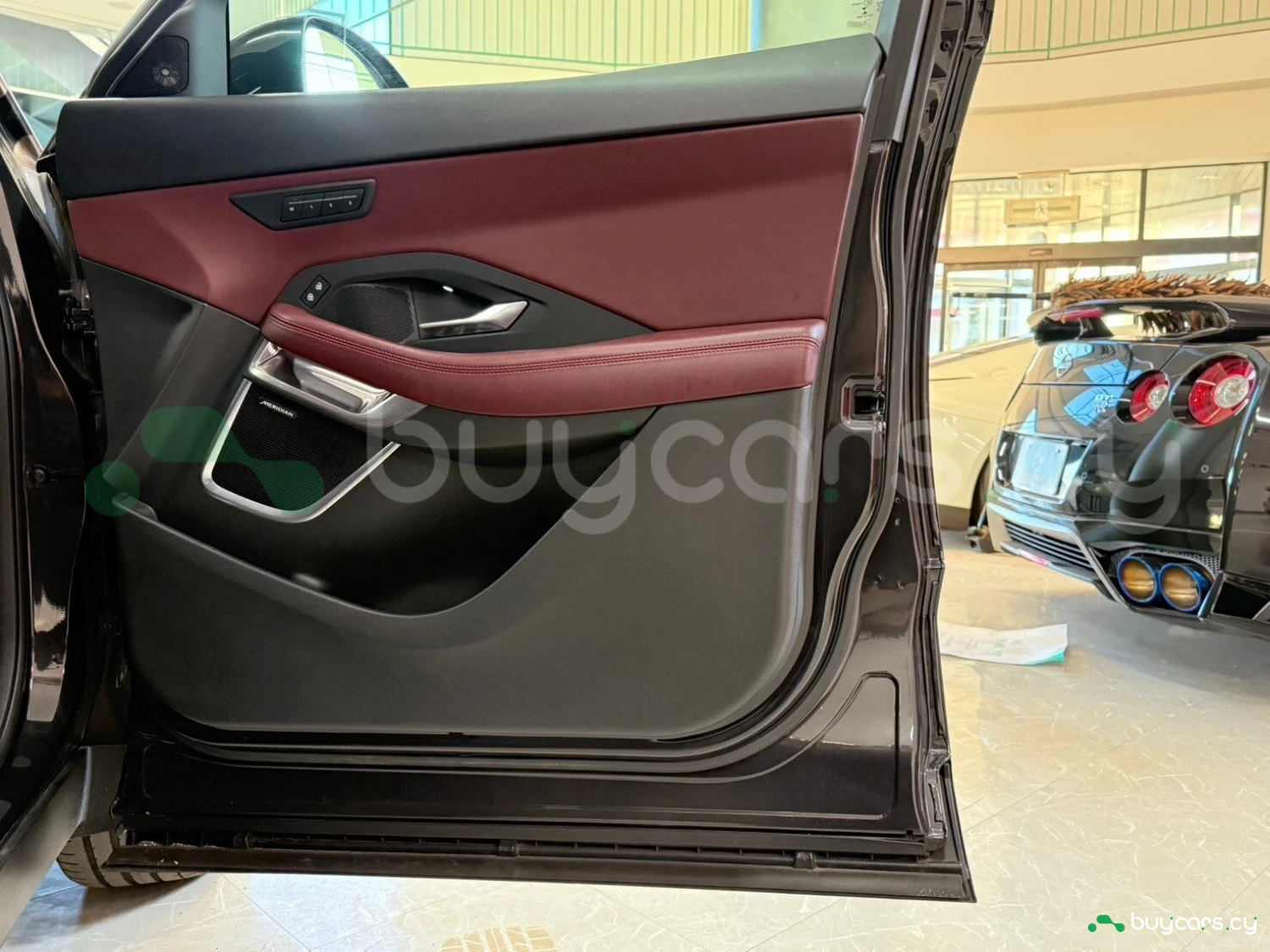 Inside, the E-Pace R-Dynamic Black showcases premium materials, including Ebony leather seats with contrast stitching and gloss black trim accents. The cabin features a fully digital 12.3-inch interactive driver display and a centrally mounted 11.4-inch Pivi Pro touchscreen infotainment system with integrated navigation, wireless Apple CarPlay, and Android Auto. Additional comfort features include dual-zone climate control, heated front seats, a Meridian sound system, and a panoramic roof that fills the cabin with natural light.