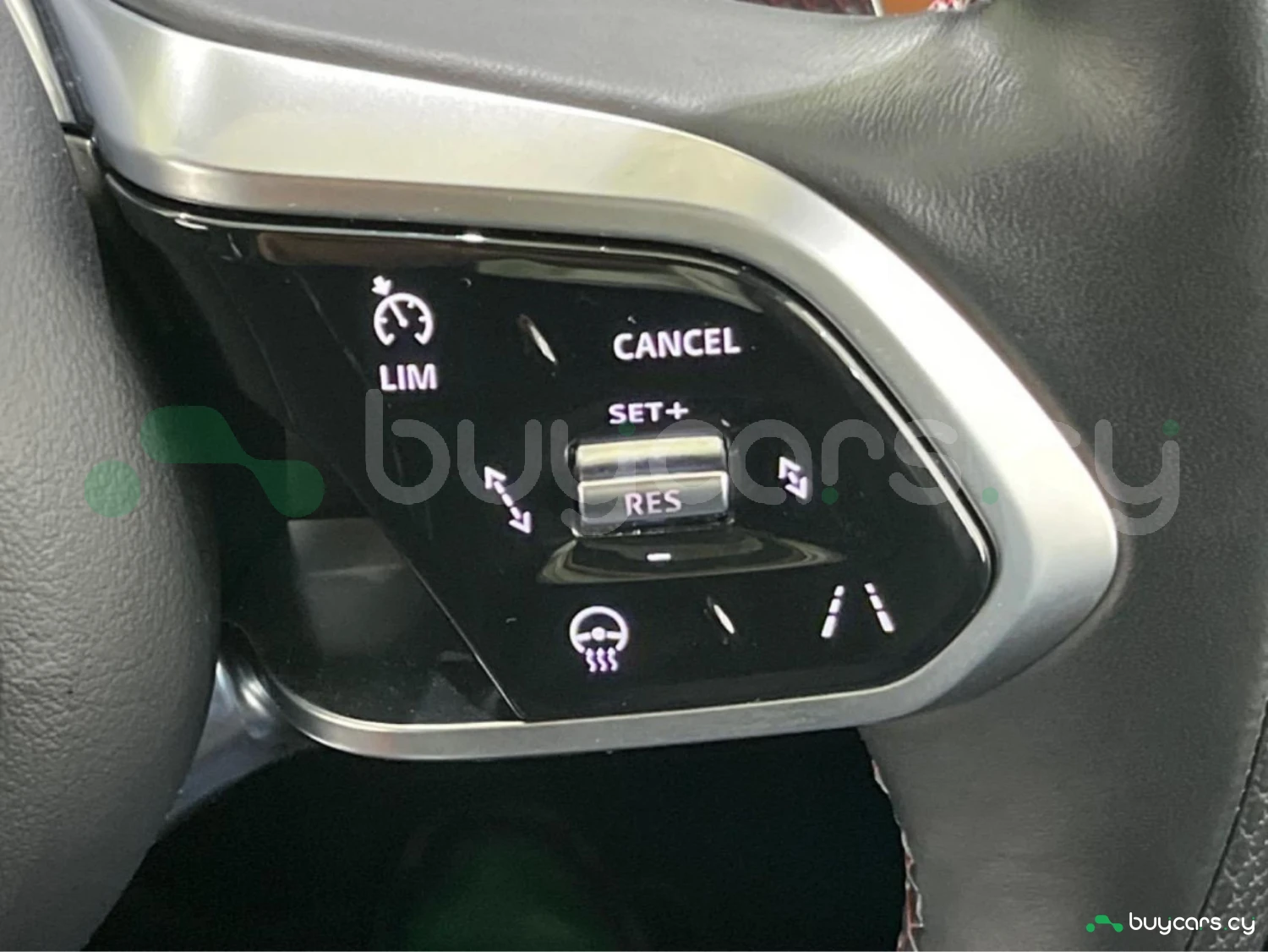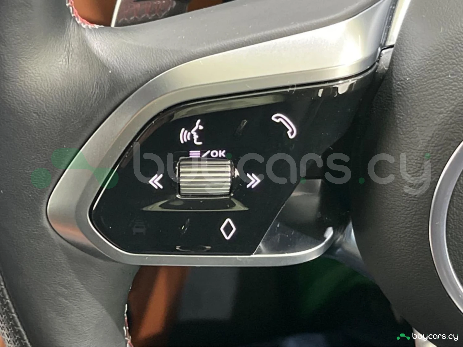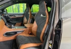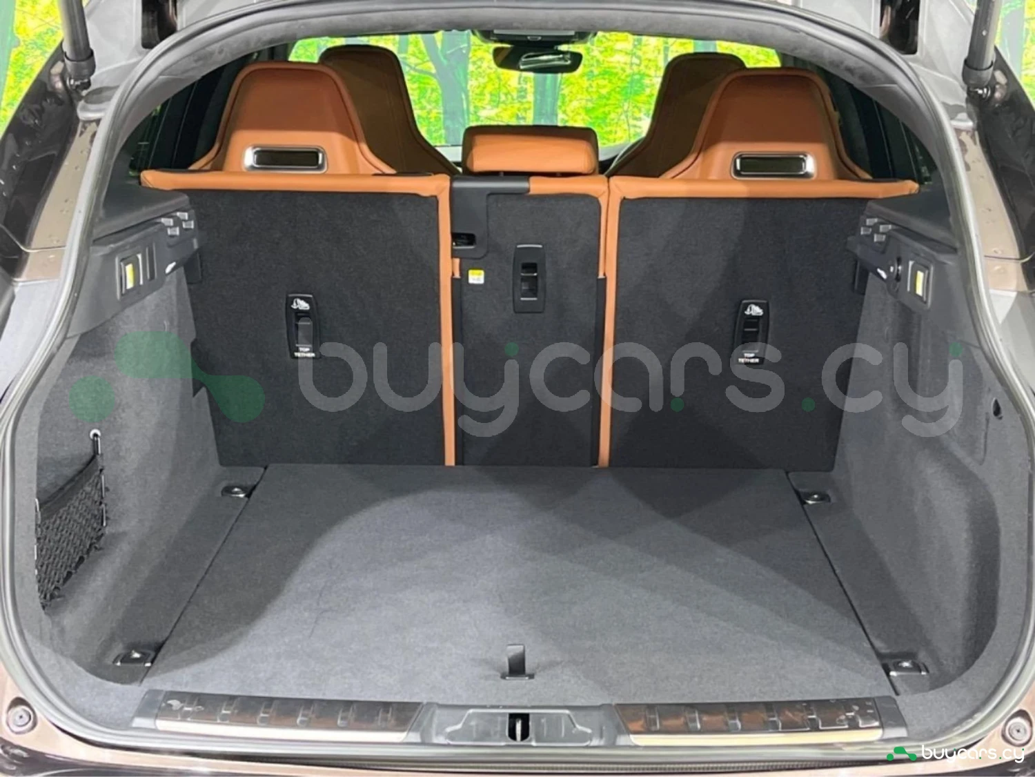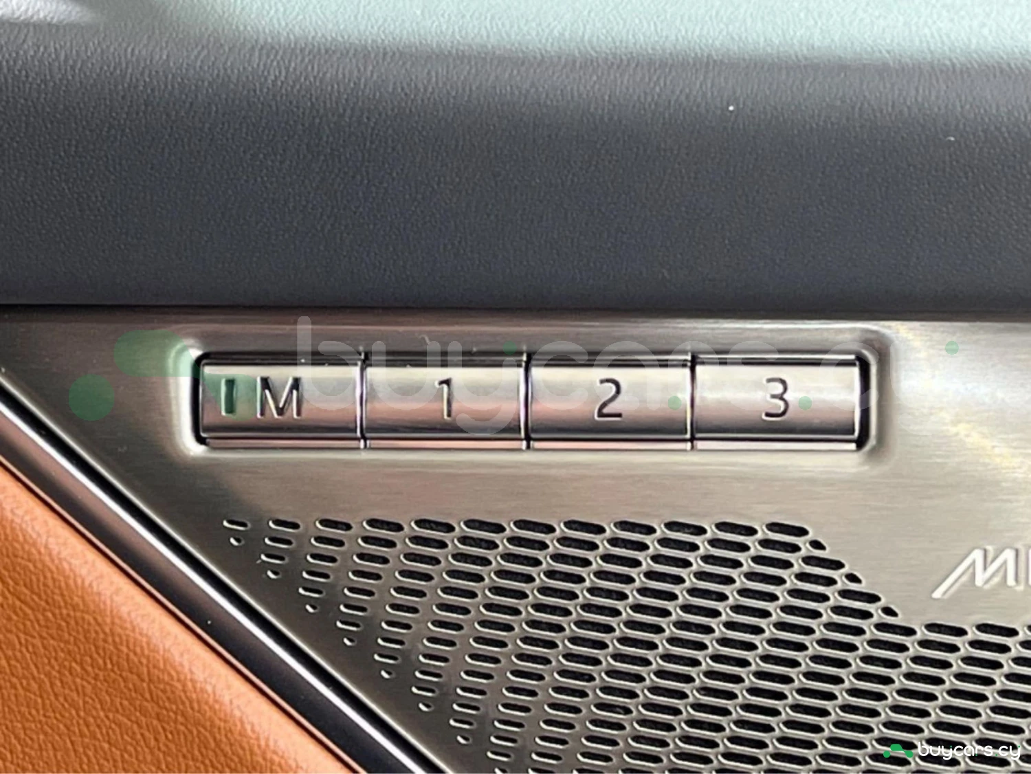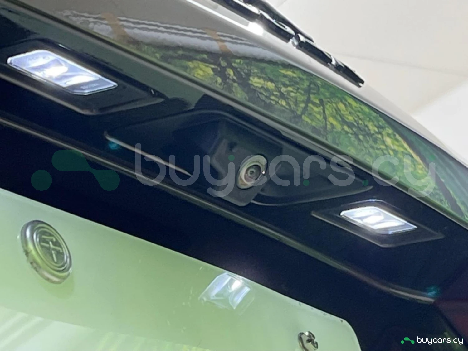 The cabin accommodates 5 passengers, featuring leather sports seats with heating and a panoramic glass roof. Comfort functions include a smart key system, navigation, and ergonomic seating.