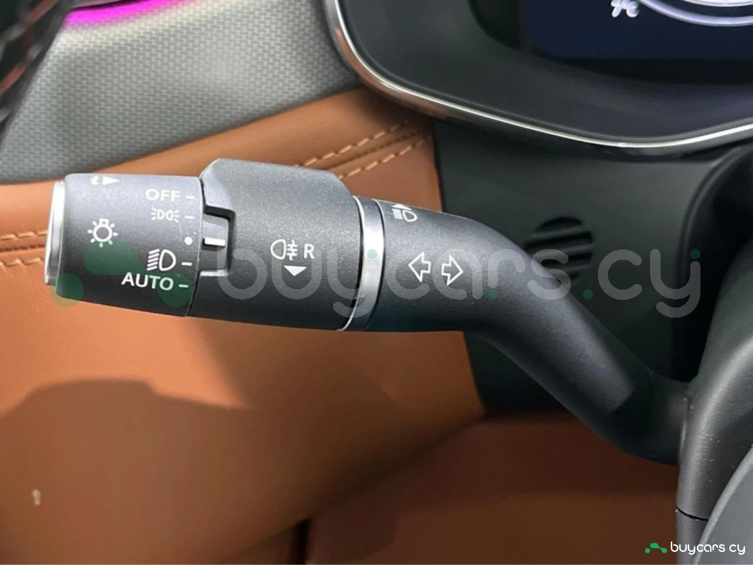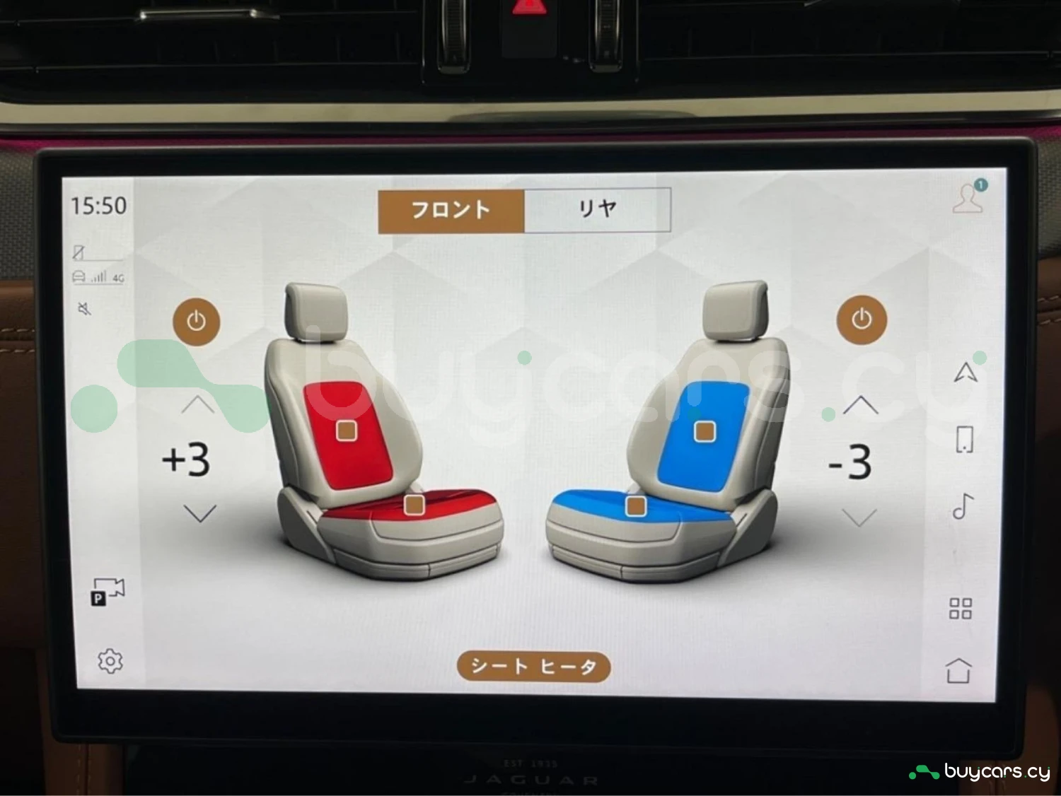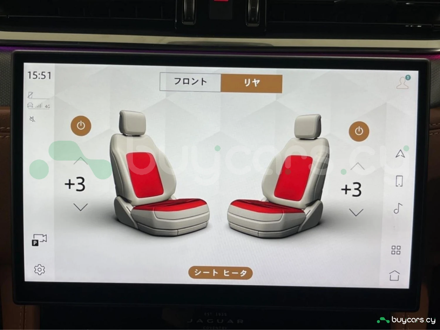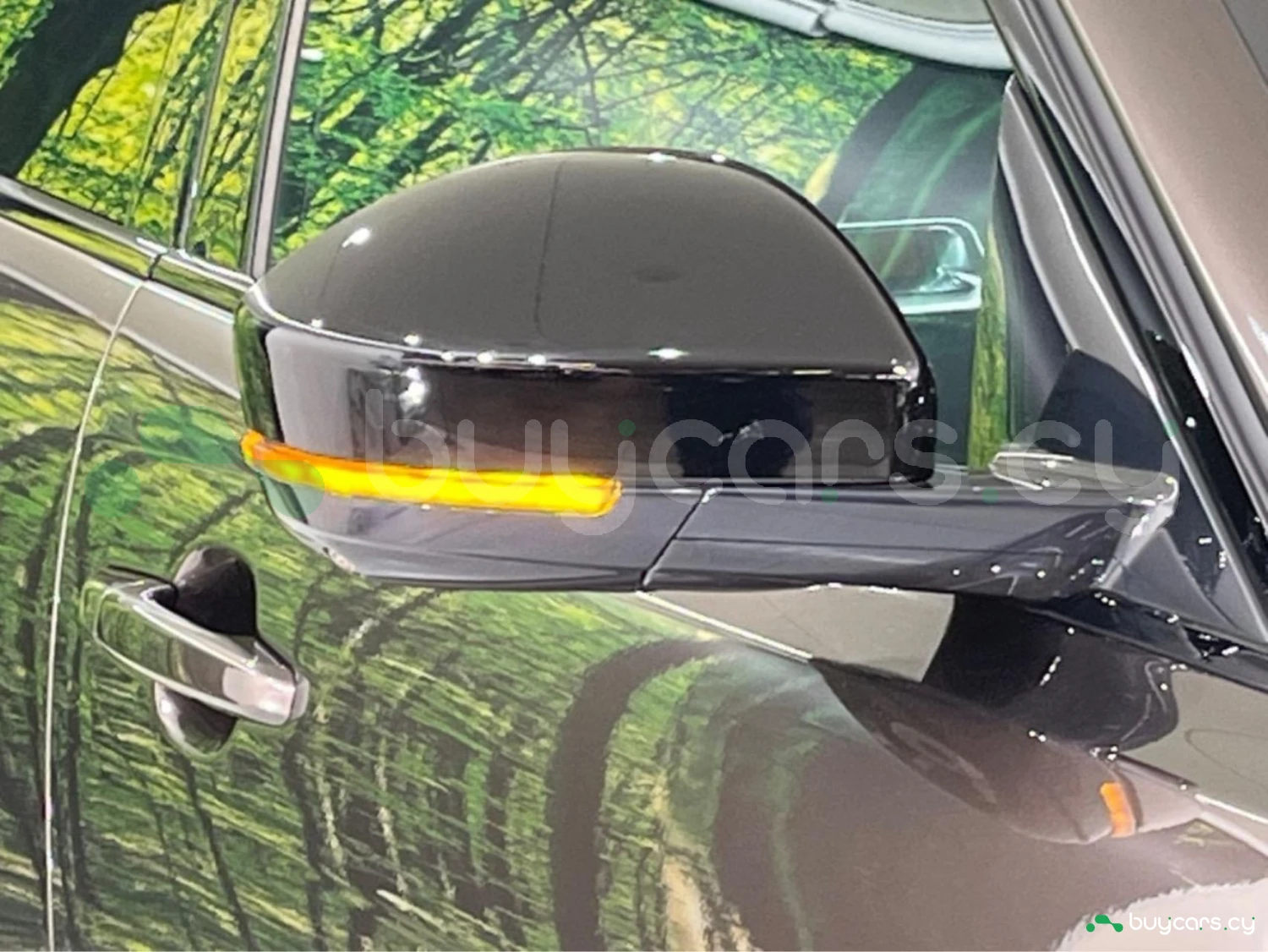 The cabin accommodates 5 passengers, featuring leather sports seats with heating and a panoramic glass roof. Comfort functions include a smart key system, navigation, and ergonomic seating.