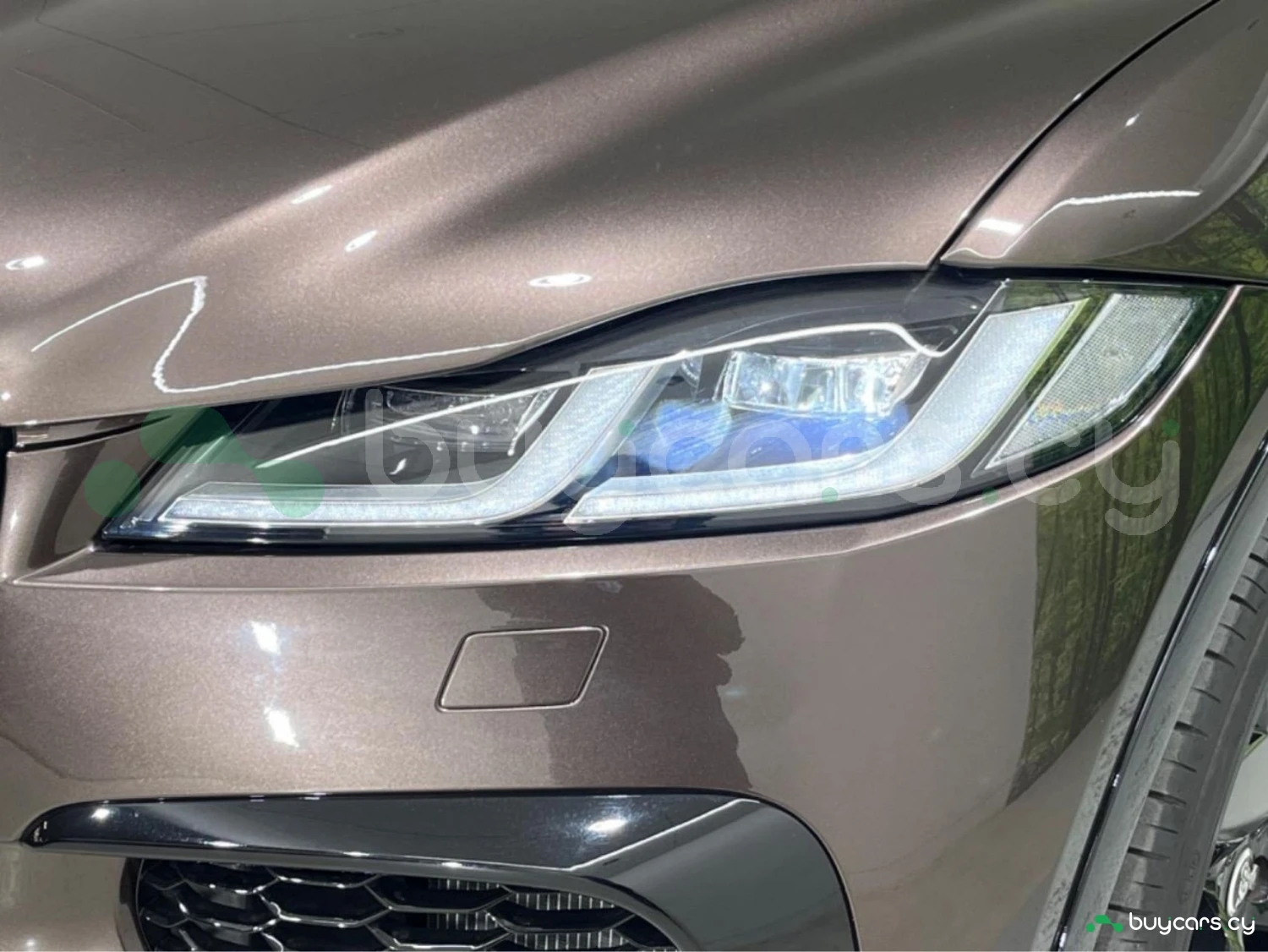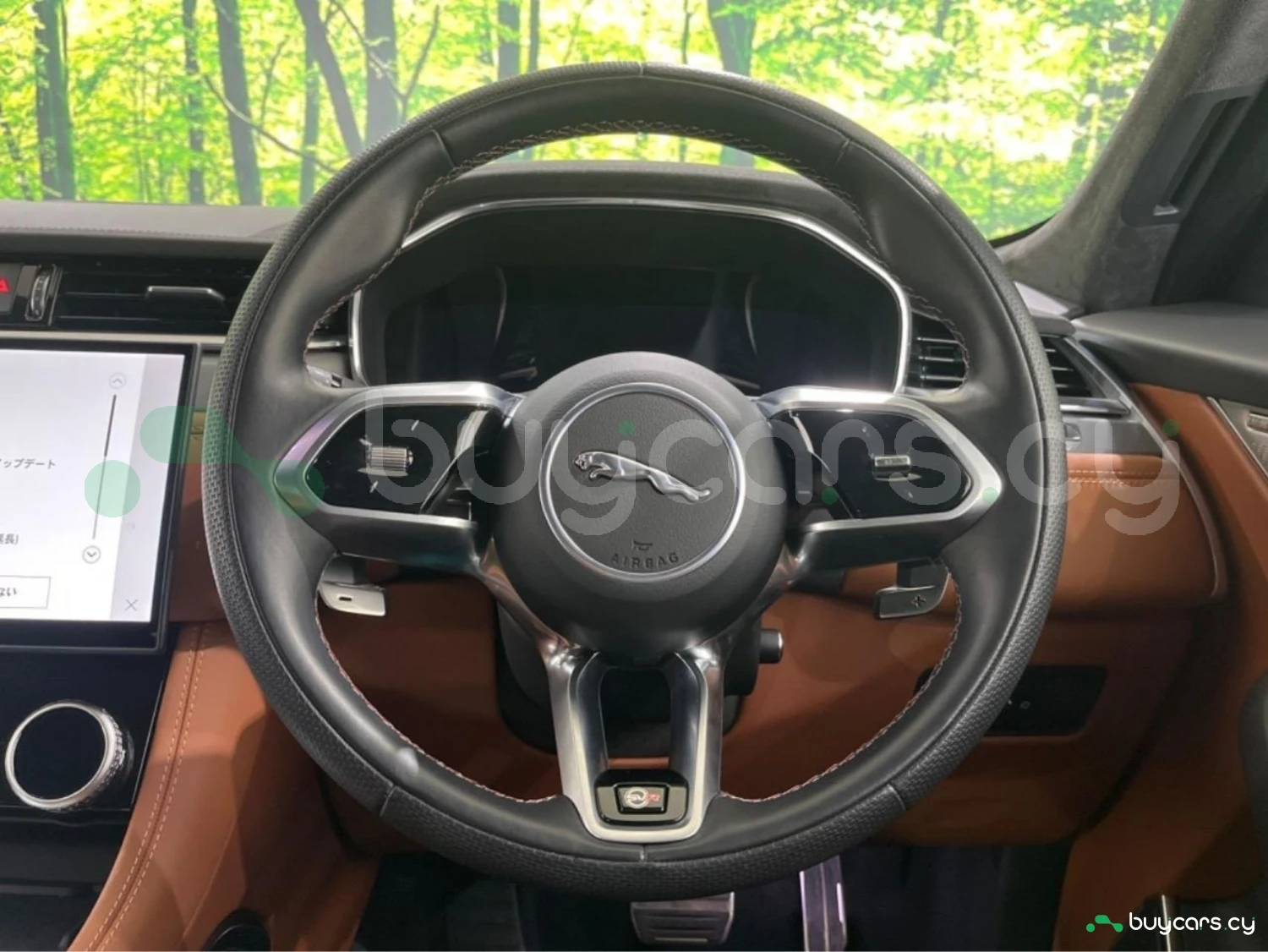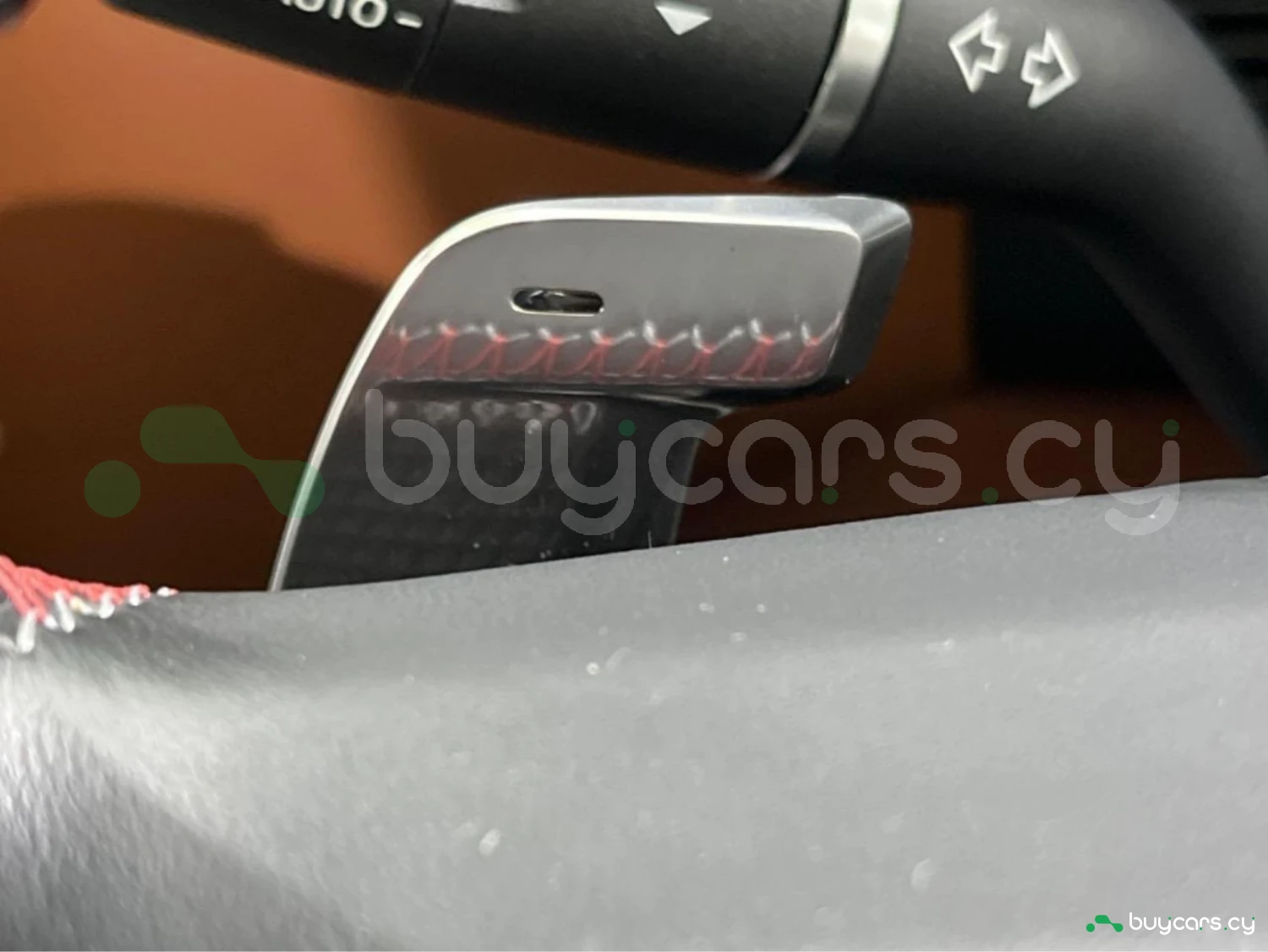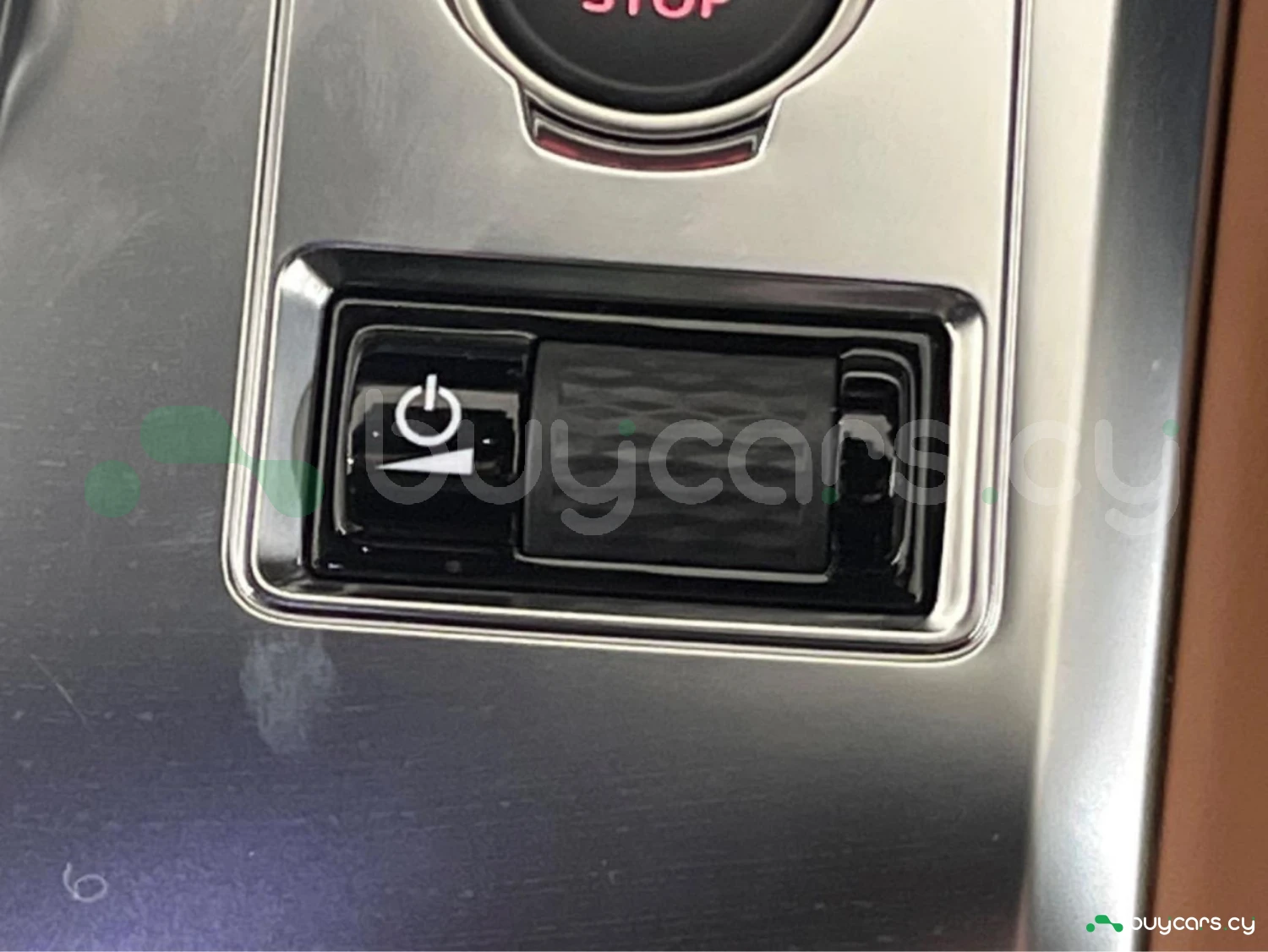 The cabin accommodates 5 passengers, featuring leather sports seats with heating and a panoramic glass roof. Comfort functions include a smart key system, navigation, and ergonomic seating.