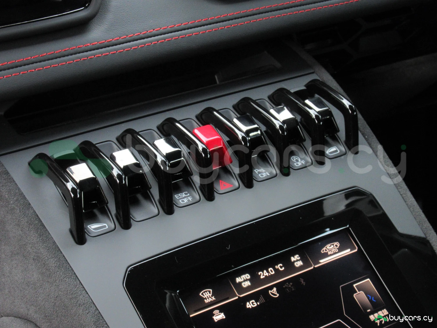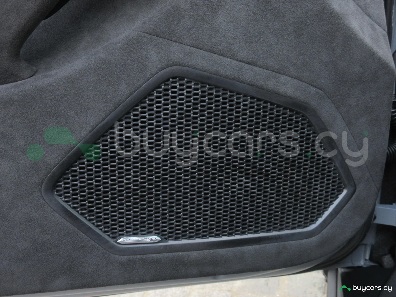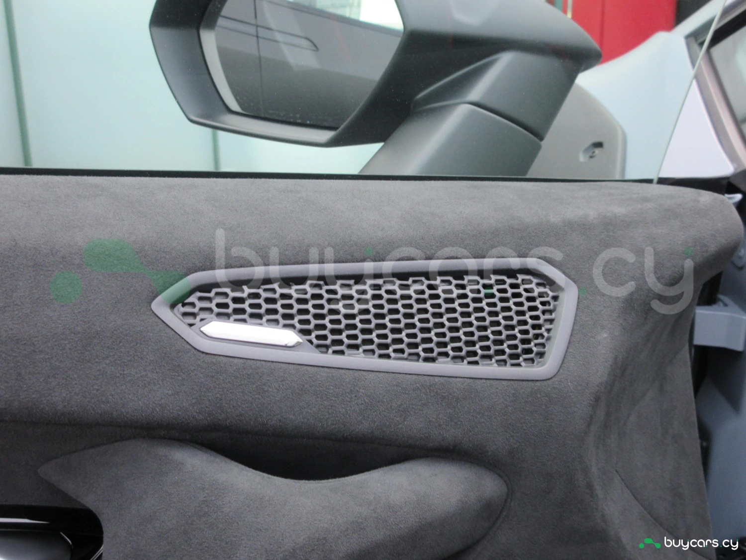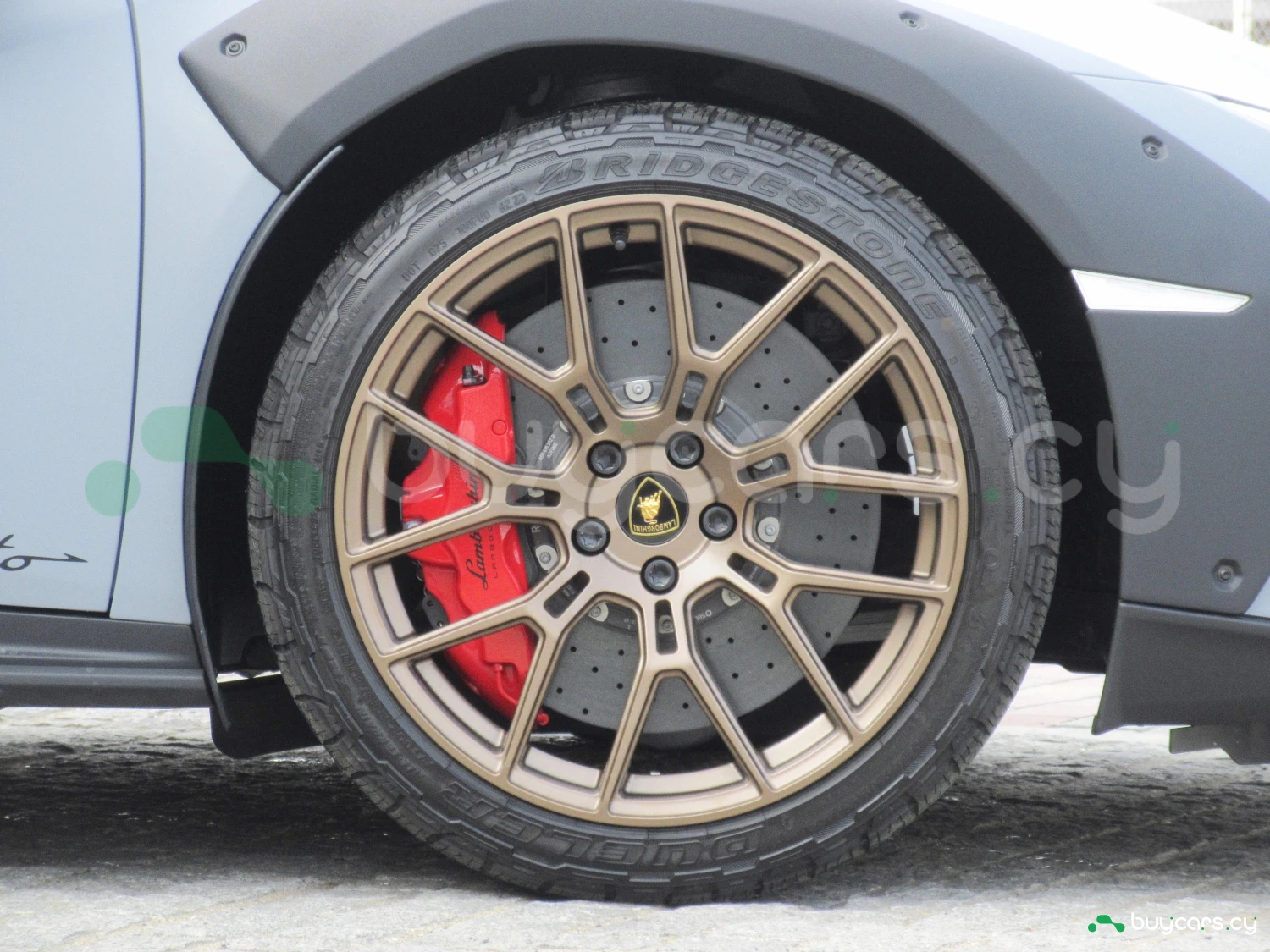 The exterior of the Huracán Sterrato is immediately striking with its raised stance, widened track, robust cladding, roof-mounted air intake, and front LED auxiliary lights. The bold Grigio Acheso finish underlines its off-road ambitions while maintaining unmistakable Lamborghini lines. 19-inch wheels wrapped in bespoke Bridgestone Dueler tires complete the aggressive and functional styling, ensuring it looks as potent as it drives.