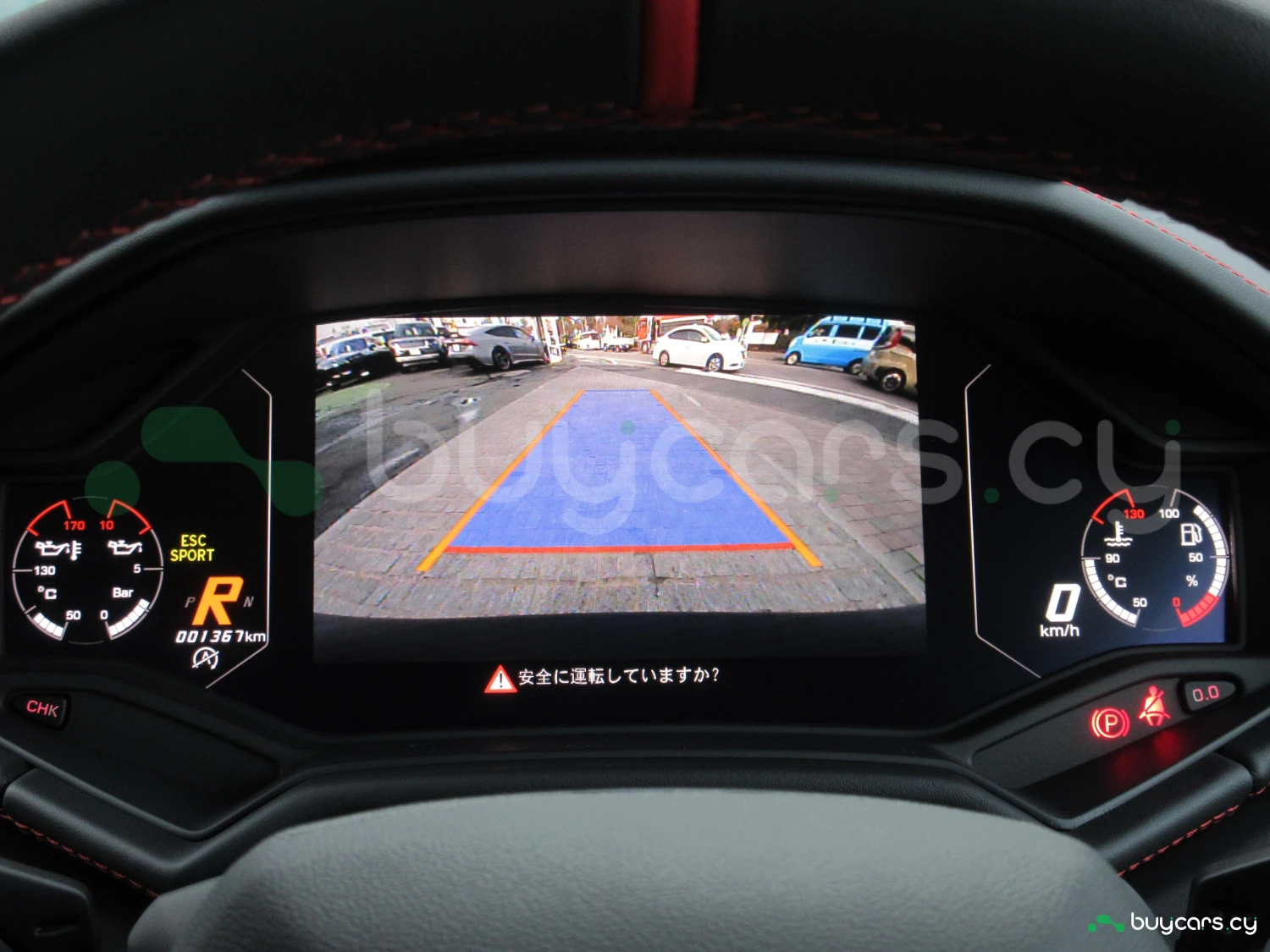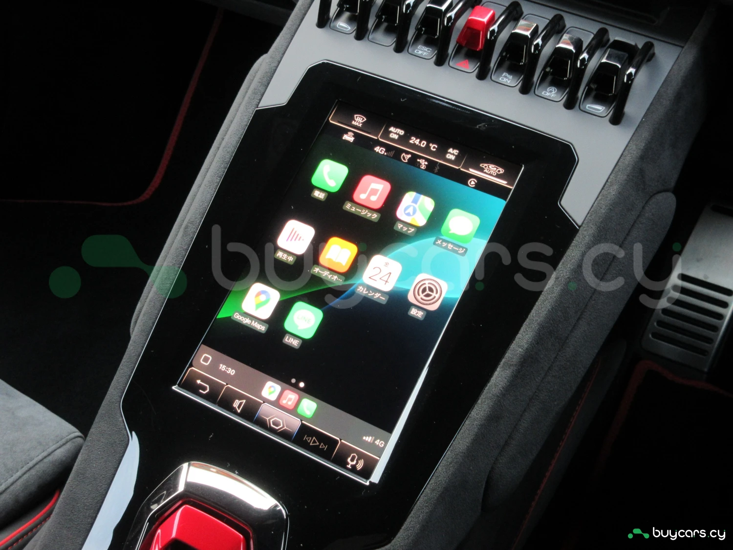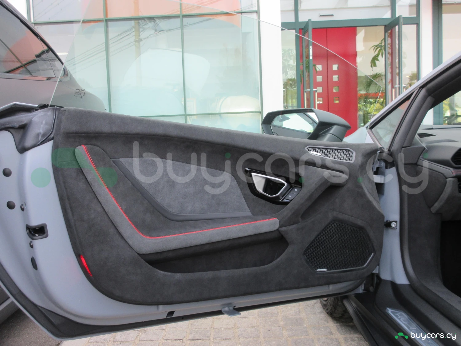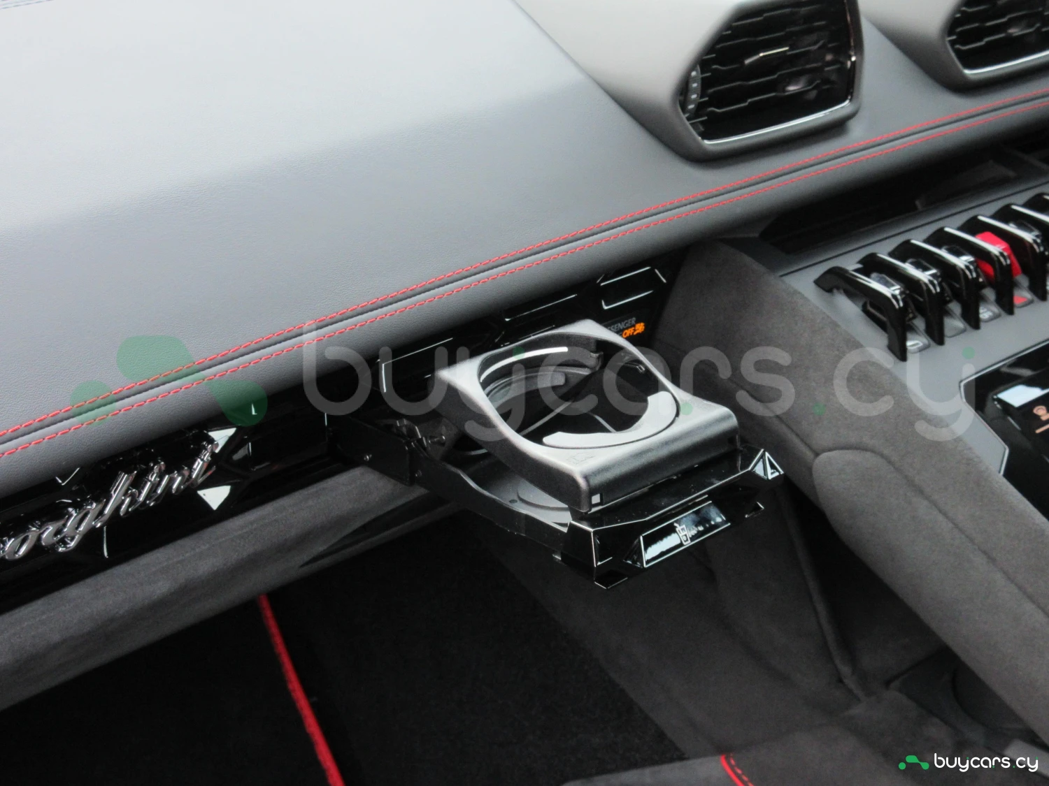 The exterior of the Huracán Sterrato is immediately striking with its raised stance, widened track, robust cladding, roof-mounted air intake, and front LED auxiliary lights. The bold Grigio Acheso finish underlines its off-road ambitions while maintaining unmistakable Lamborghini lines. 19-inch wheels wrapped in bespoke Bridgestone Dueler tires complete the aggressive and functional styling, ensuring it looks as potent as it drives.