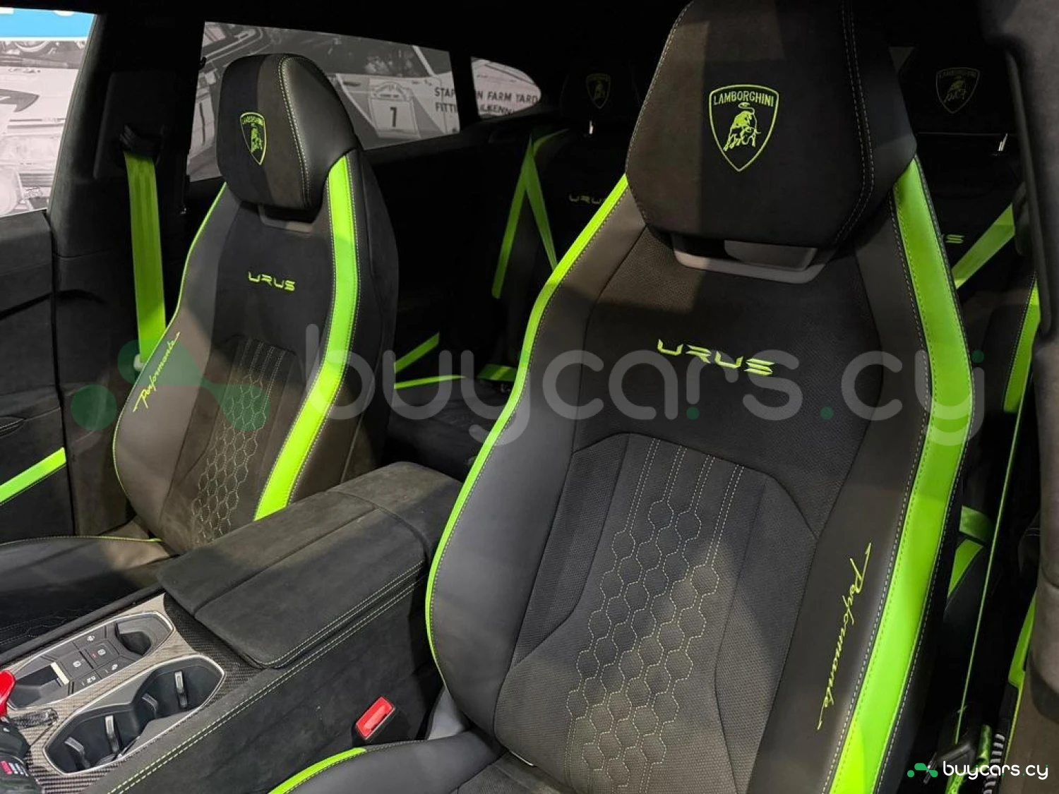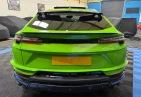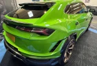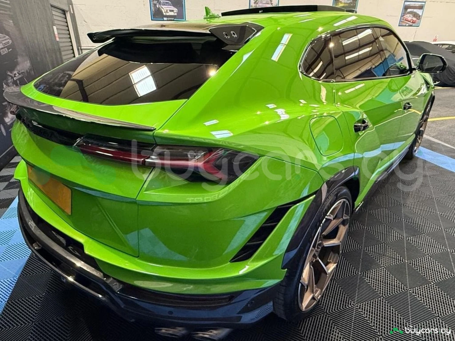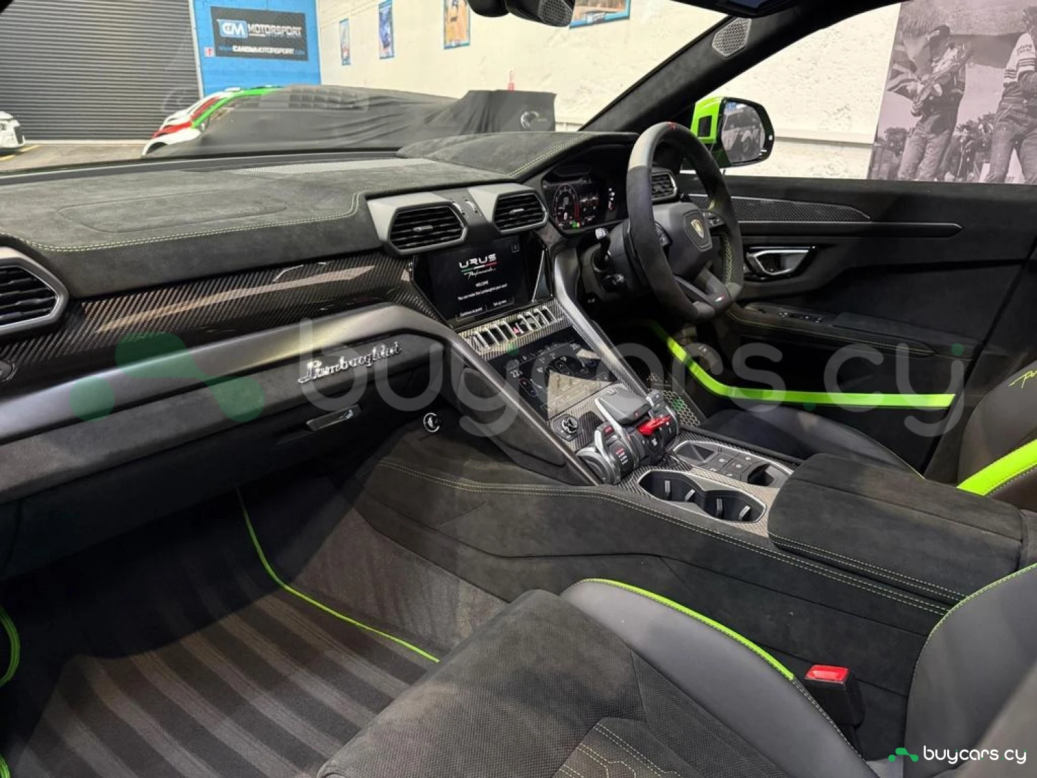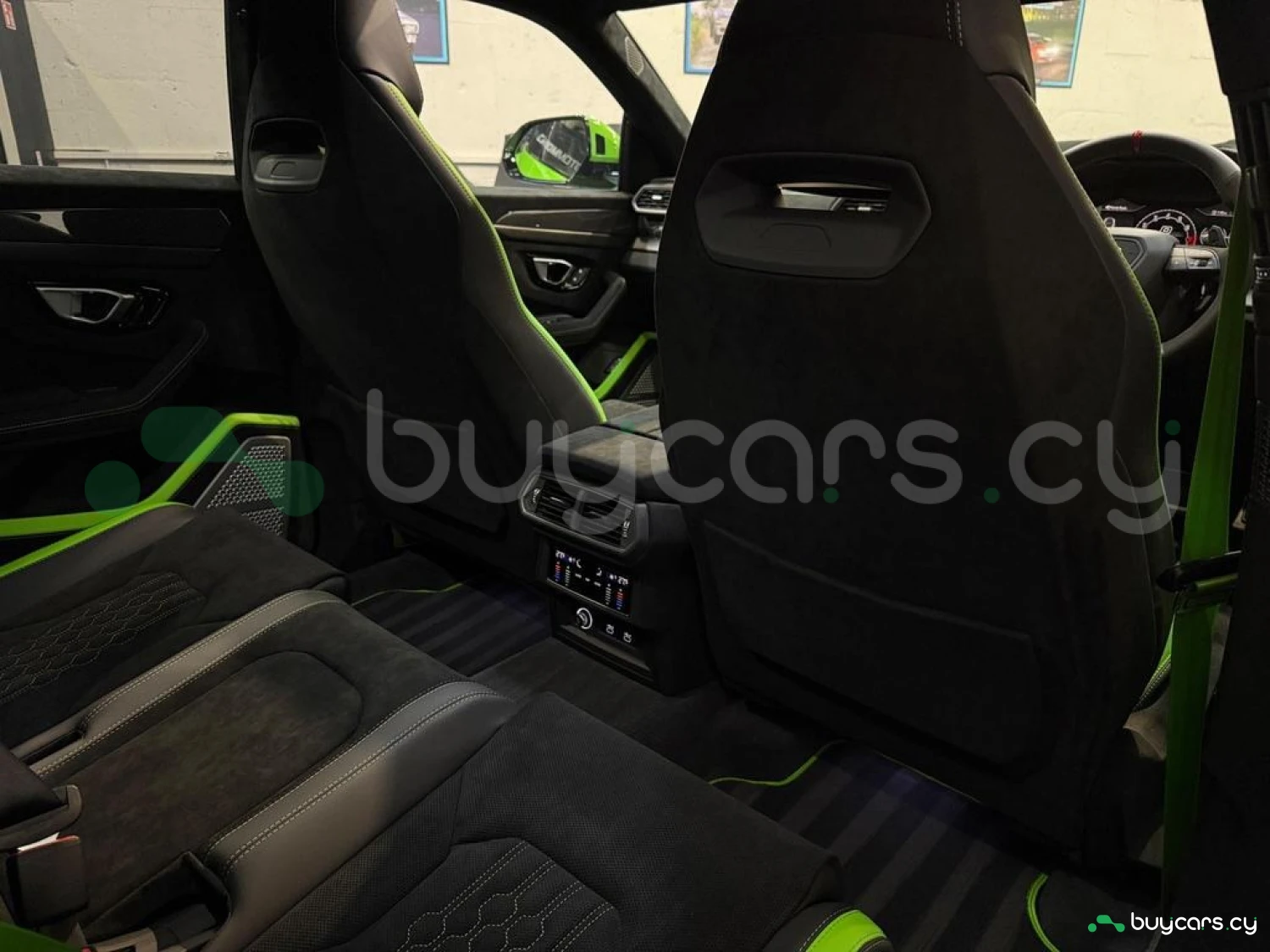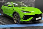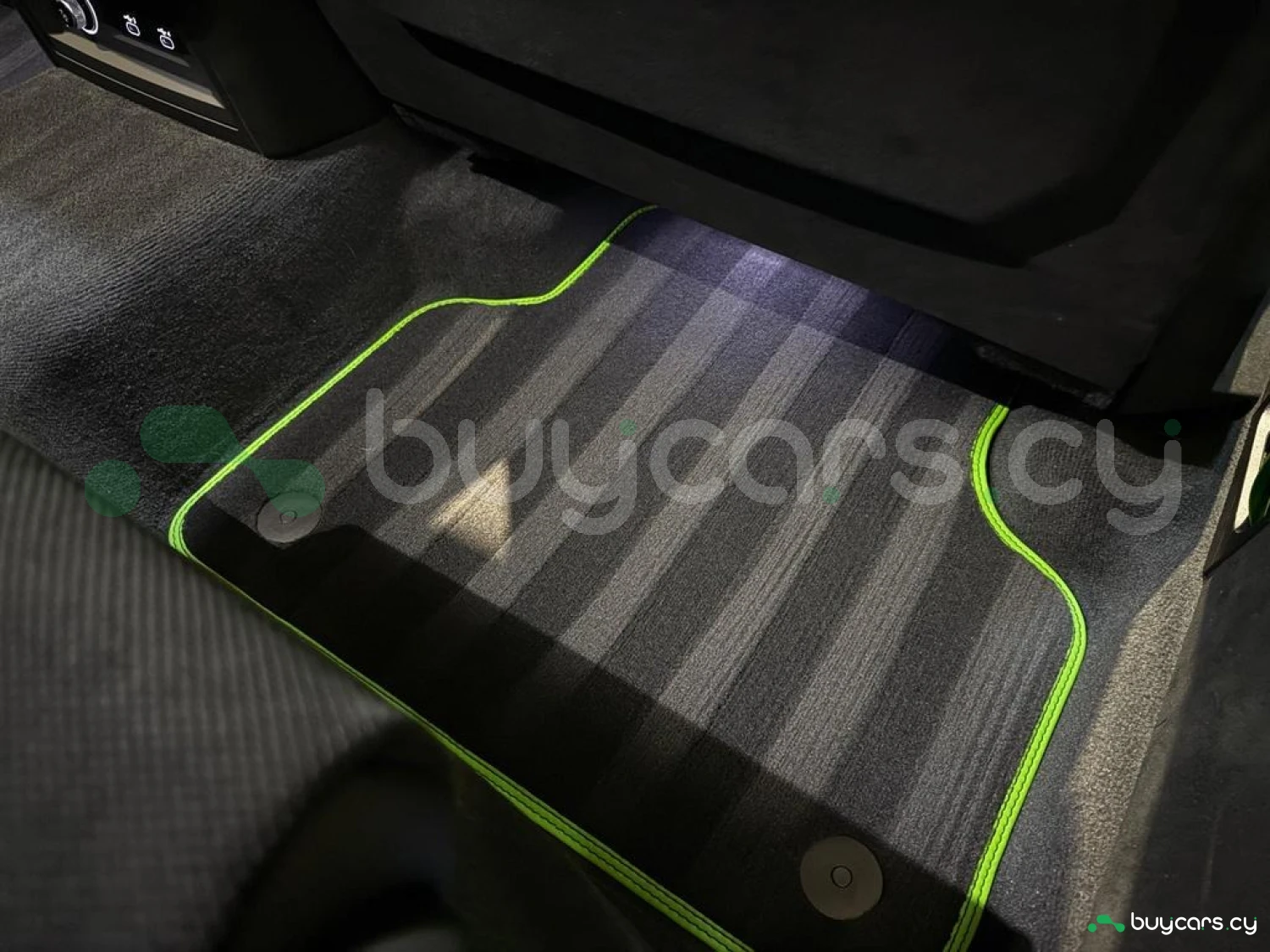 Exterior: Finished in Green, this Urus boasts an aggressive yet elegant look. It rides on 23-inch Pelope rims with titanium bolts, diamond-finished in shiny black for a striking presence. The front and rear bumpers, wheel arches, and upper spoiler are crafted from carbon fibre, as is the Lamborghini frame (Matt, Ad Personam). Privacy glass with acoustic and double glazing enhances cabin comfort, while the rear Lamborghini logo in high-gloss black (Ad Personam) adds a finishing touch.