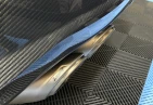 Performance: The carbon fibre bonnet air vents and rear spoiler not only improve aerodynamics but also contribute to the car's aggressive styling.