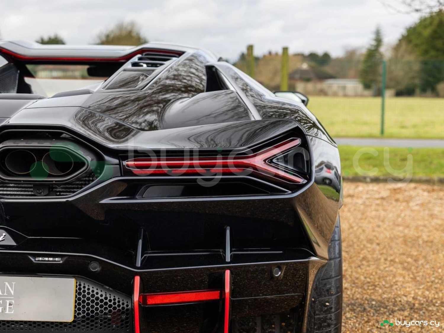 Exterior: Nero Helene metallic paint, 21/22" Altanero Forged Alloy Wheels, wheels painted in gloss black, brake calipers in Rosso, style package in high gloss black, tailpipes in matte black, windscreen frame in high gloss black, paint protection film (PPF) applied to whole car, livery with stripes on rear diffuser in Rosso Mars & Rosso Mimir, headlamp package.