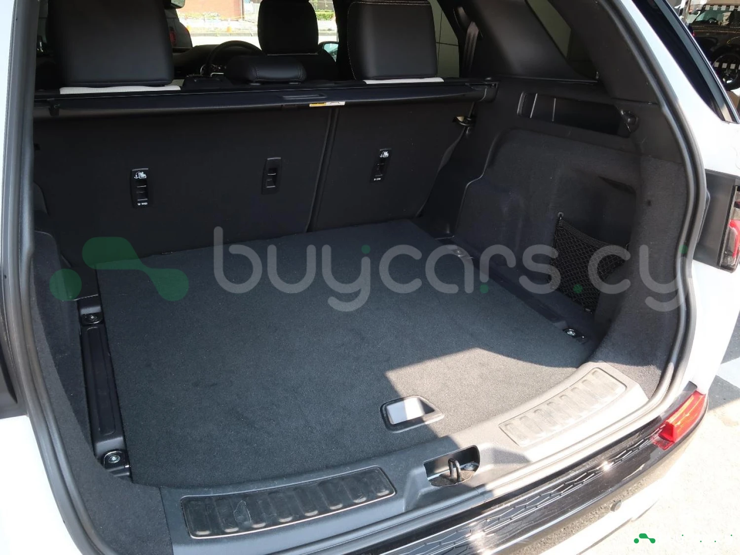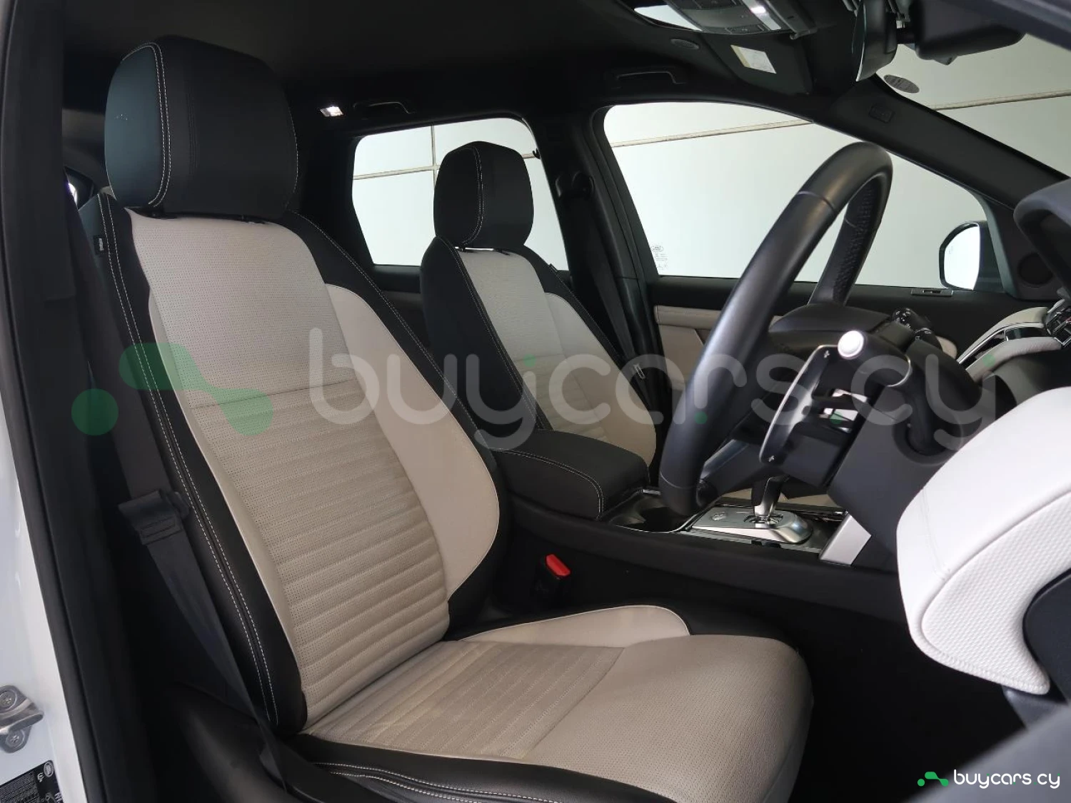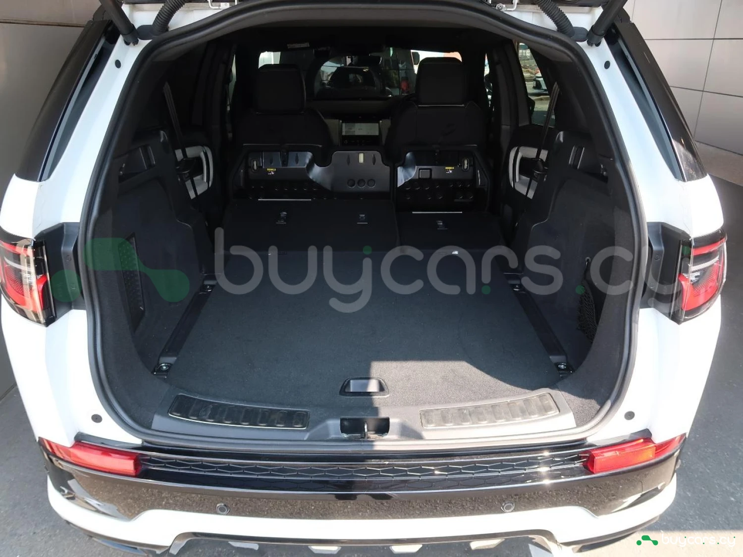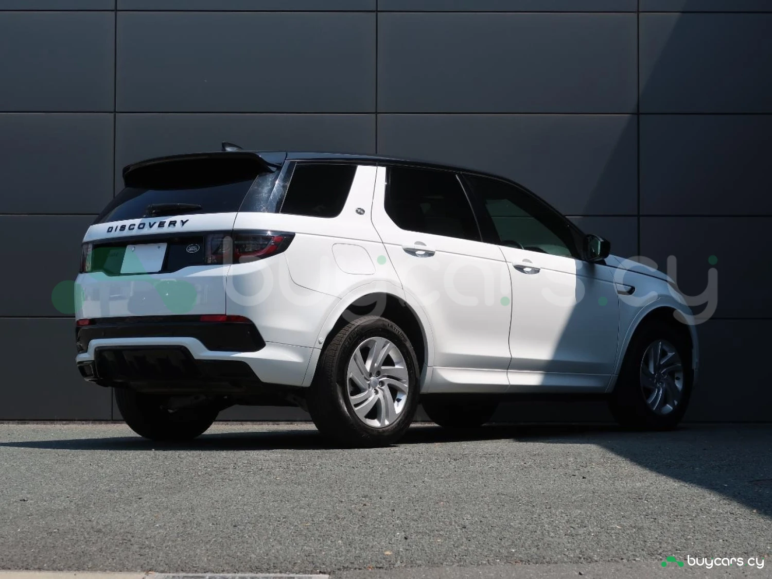 The sleek White exterior is complemented by the R-Dynamic package, which adds sport-inspired styling details. Distinctive 18-inch alloy wheels, LED headlights, and the bold Discovery silhouette emphasize its premium SUV character and commanding road presence.