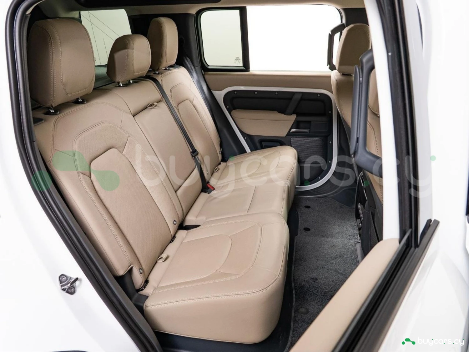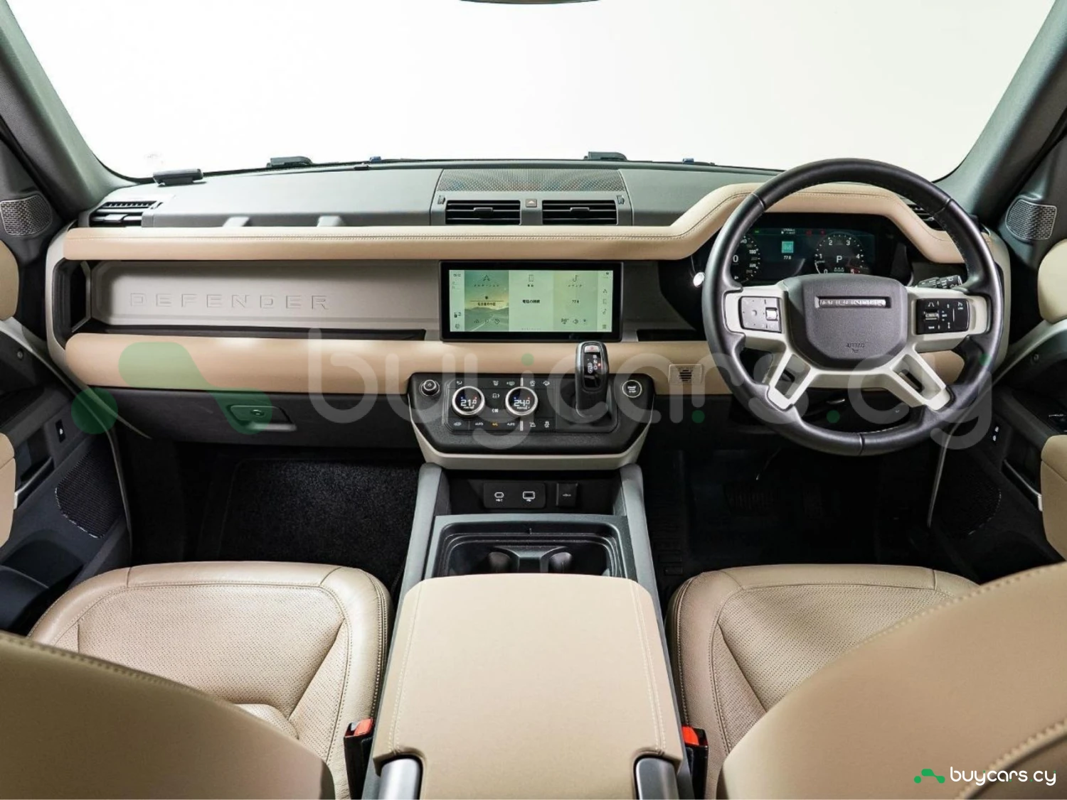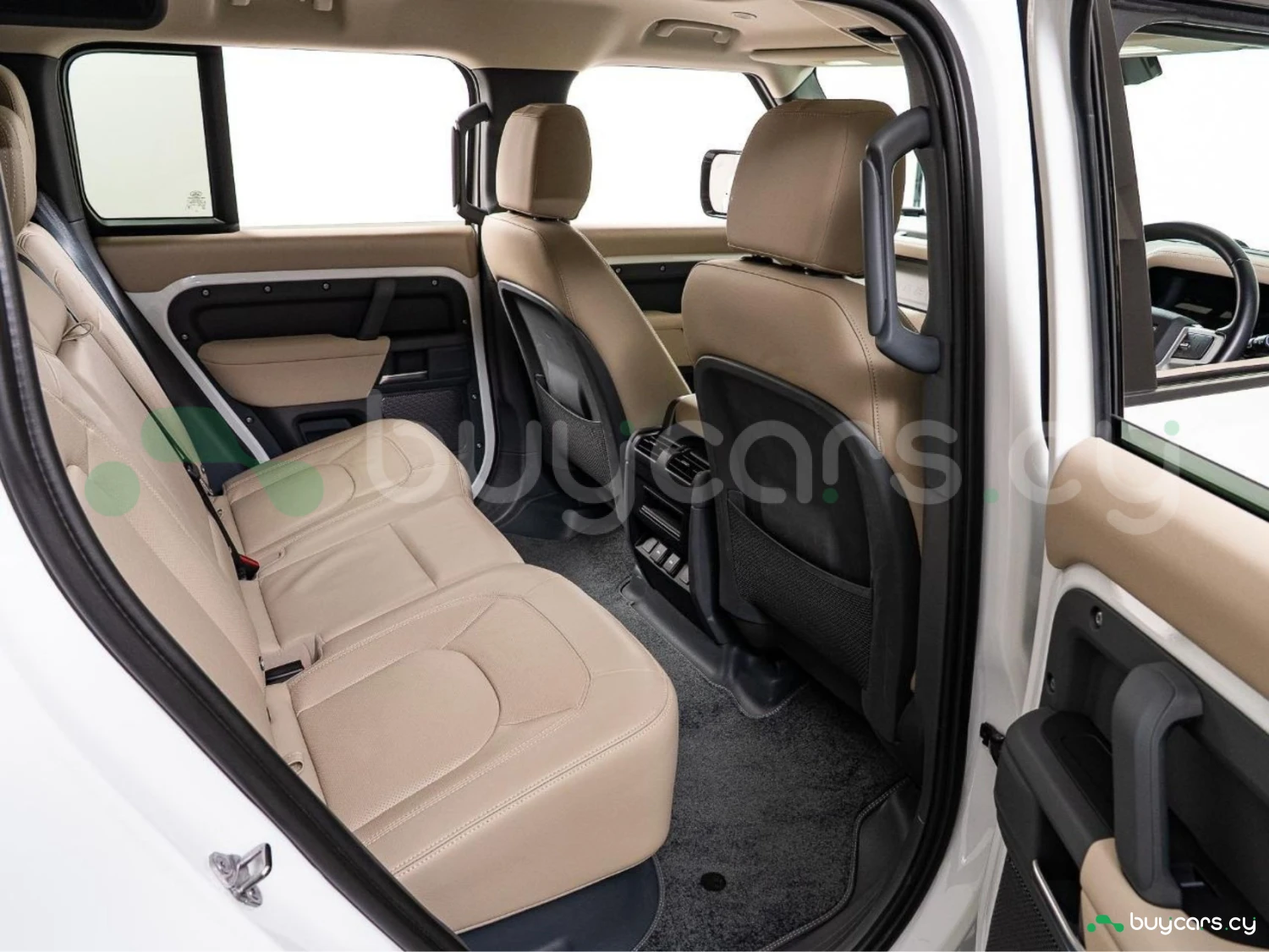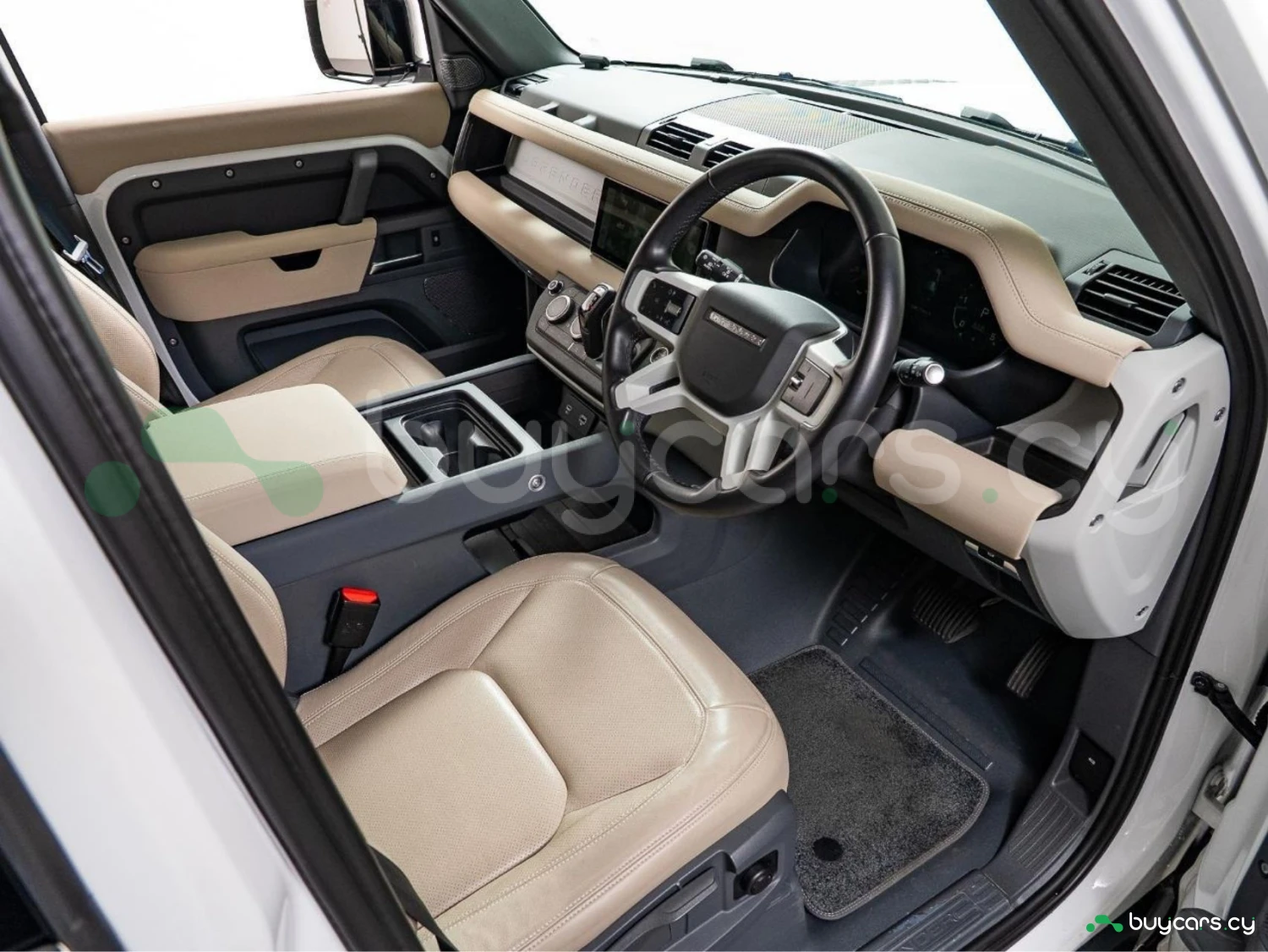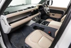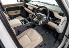 With its unmistakable silhouette and bold proportions, the Defender remains a symbol of adventure and strength. The Fuji White exterior is complemented by genuine 19-inch black alloy wheels, fixed side steps, LED headlights, and roof rails, emphasizing its rugged yet sophisticated character.