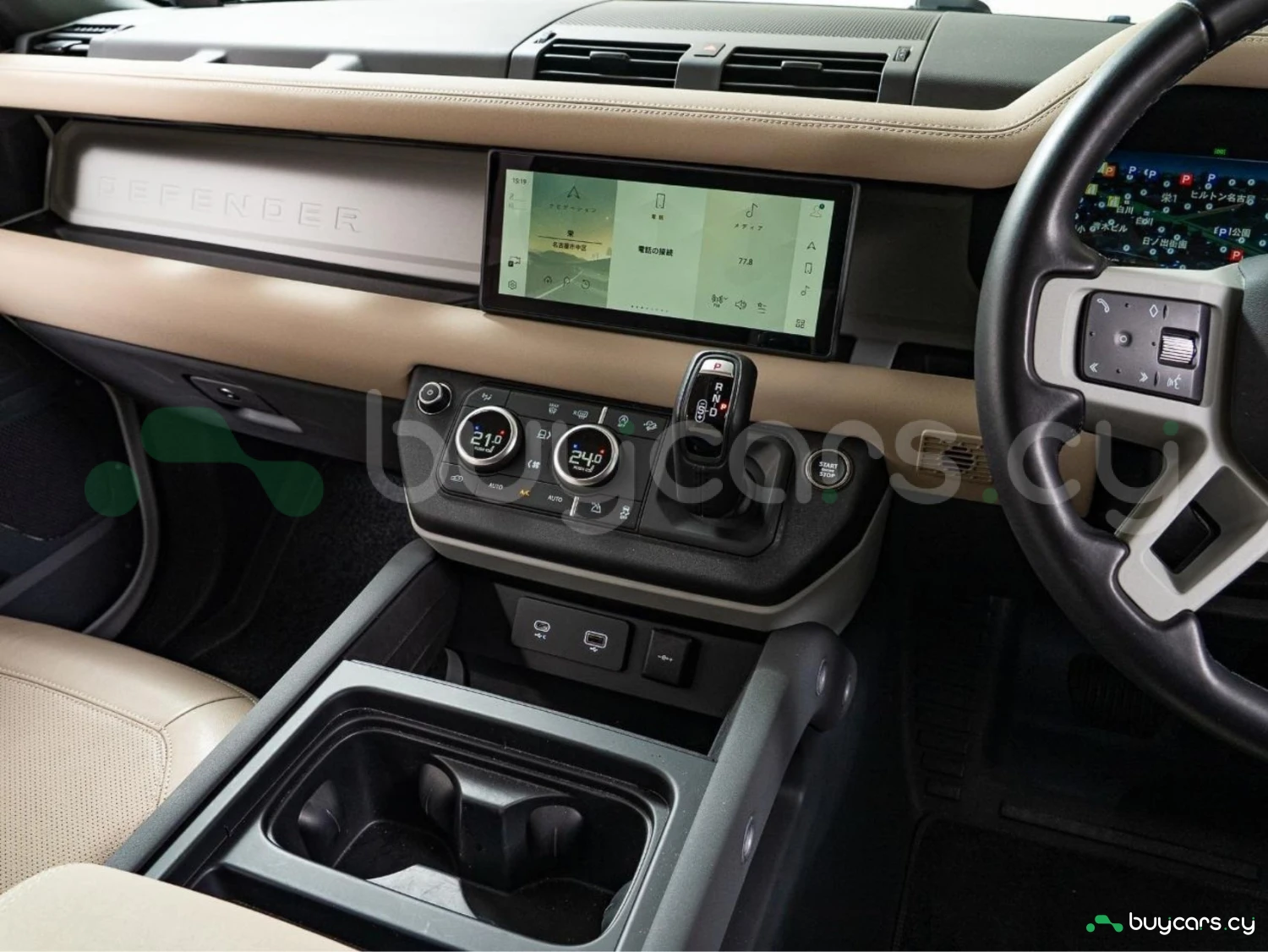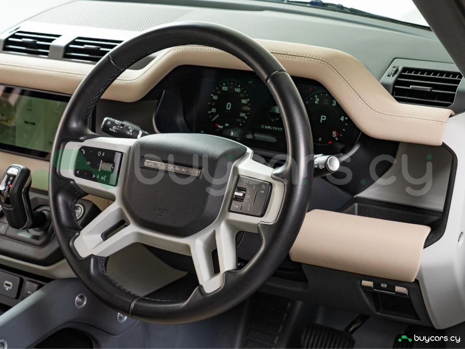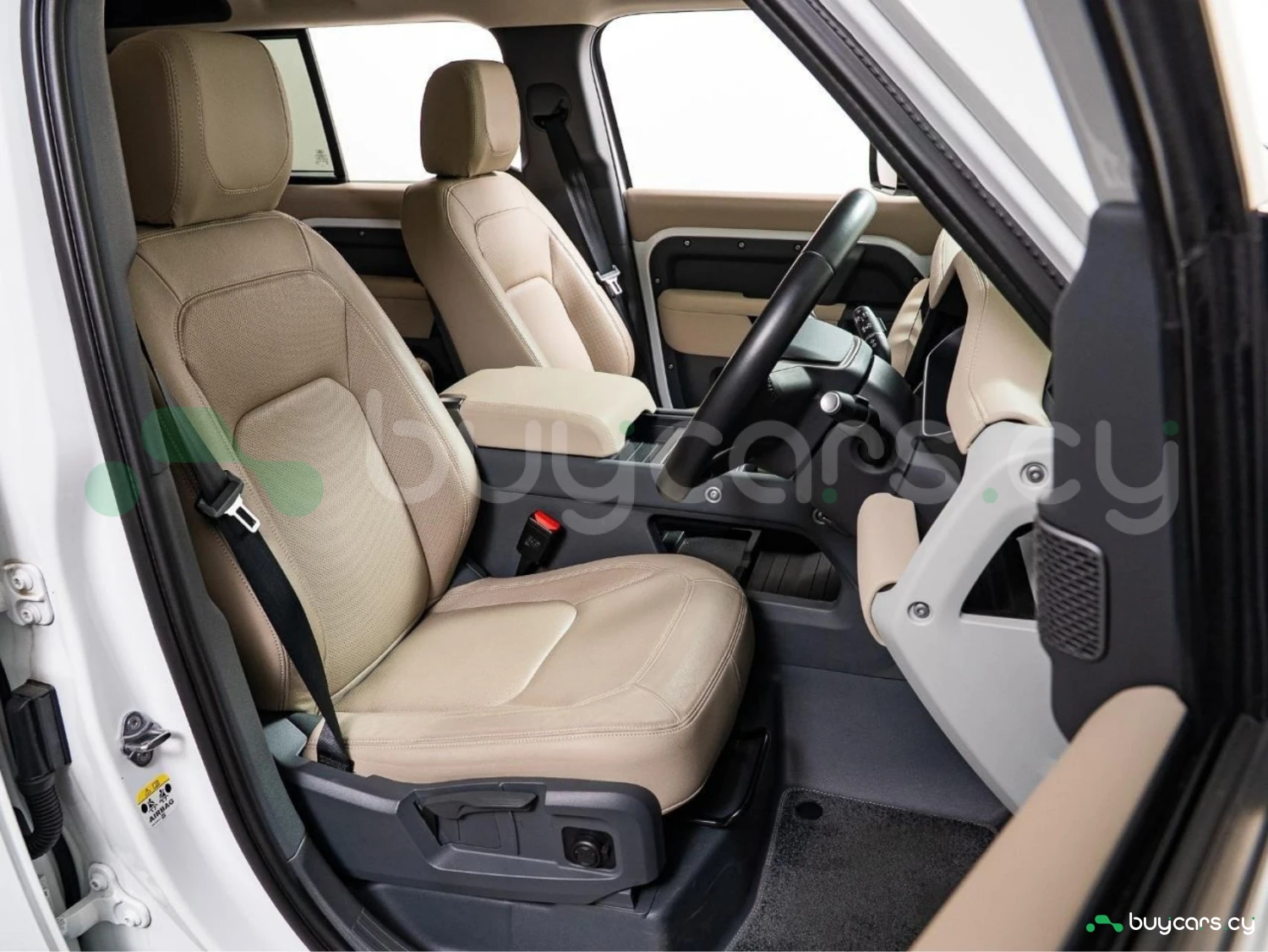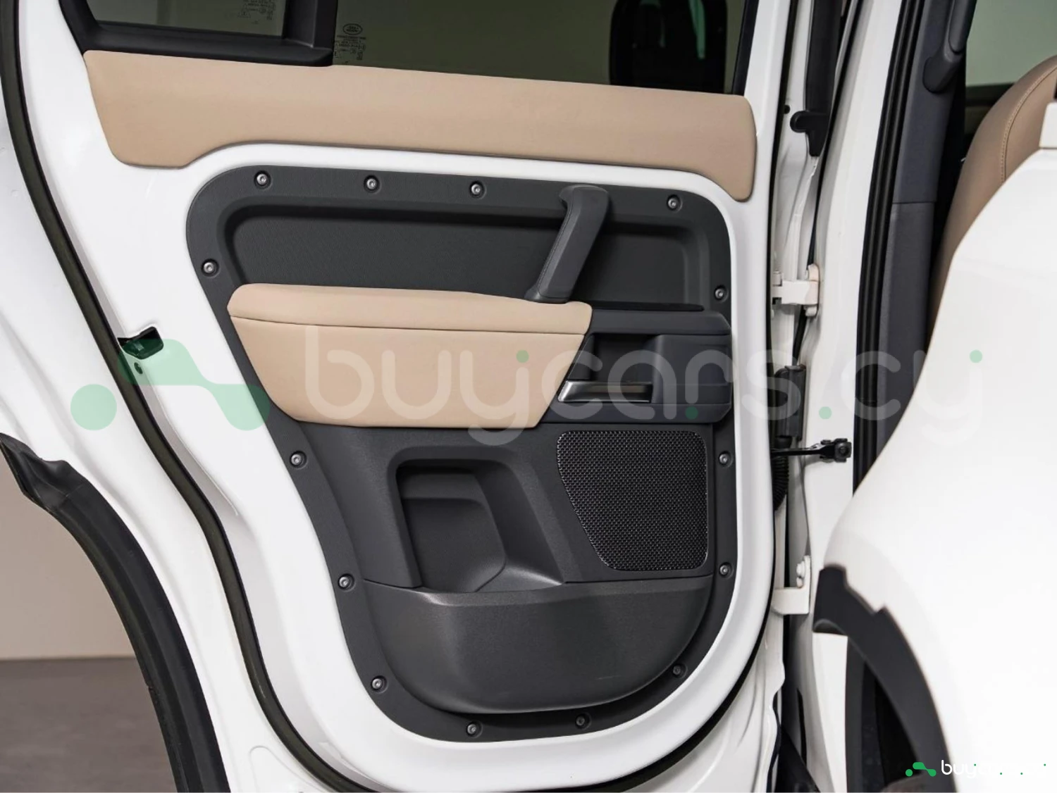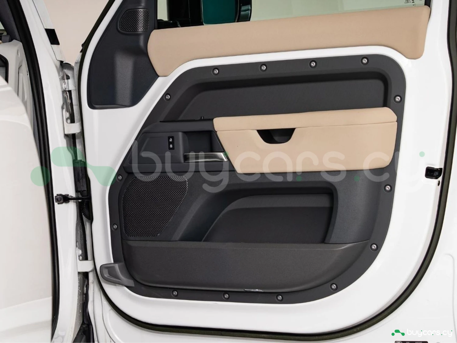 With its unmistakable silhouette and bold proportions, the Defender remains a symbol of adventure and strength. The Fuji White exterior is complemented by genuine 19-inch black alloy wheels, fixed side steps, LED headlights, and roof rails, emphasizing its rugged yet sophisticated character.