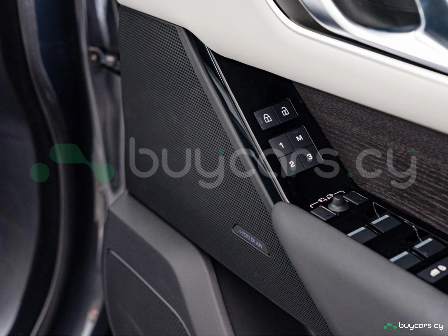 The cabin offers premium comfort with genuine leather seats, heating and ventilation functions, and a panoramic glass roof that enhances the sense of space. Electric seat adjustment, dual-zone climate control, and the Meridian sound system create a high-end driving atmosphere.